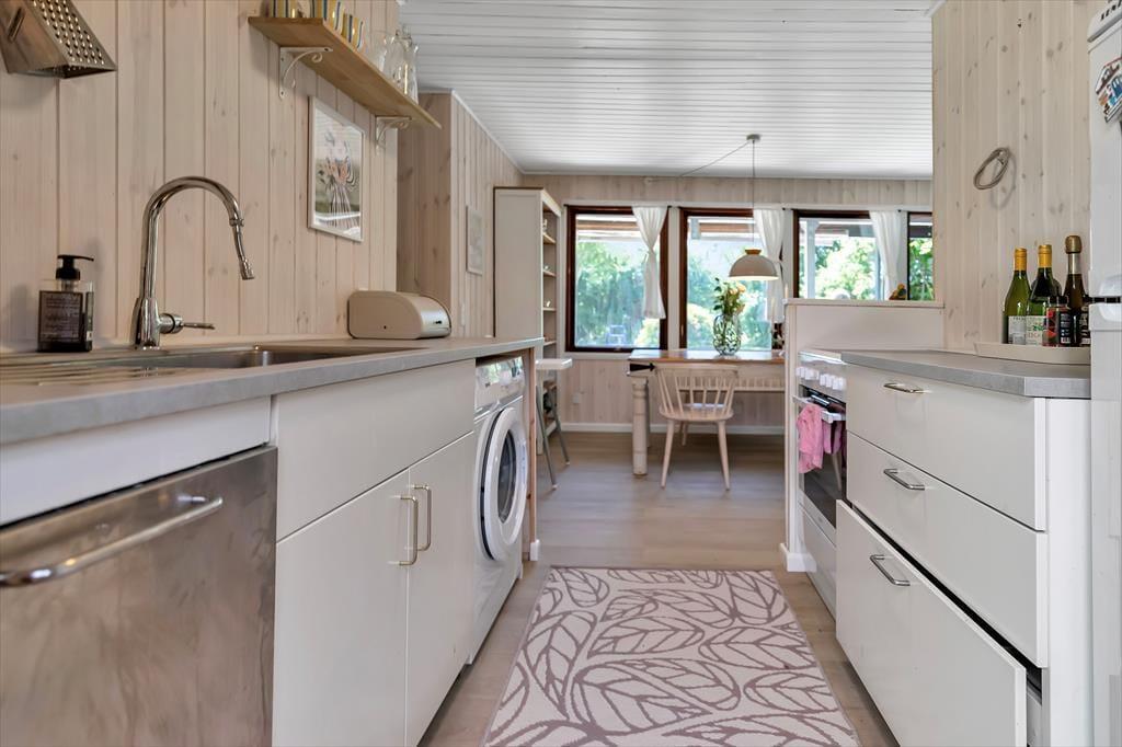Dein Ferienhaus begrüßt dich mit einer offenen Kombination aus Küche, Wohn- und Essbereich. Während du in der Küche die täglichen Mahlzeiten zubereitest, genießt du dank der offenen Wohnlösung die Nähe und Gesellschaft deiner Lieben, die beispielsweise am Esstisch spielen oder es sich auf dem Sofa gemütlich gemacht haben.