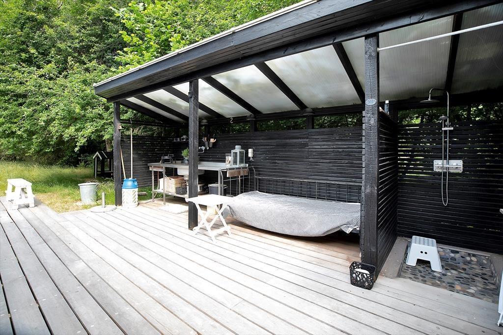 Das Ferienhaus ist mit einem schönen Wohnraum ausgestattet, wo Sie sich in einem guten Buch vertiefen können und einen Kaffee genießen. In Verbindung mit dem Wohnraum haben Sie eine gemütliche Küche, und hier können Sie sich alle damit helfen, einen leckeren Lunch zu vorbereiten. Es gibt ein tolles Badezimmer mit Dusche und drei Schlafzimmer plus ein Nebengebäude mit zwei Schlafplätzen. Die Terrasse ist wirklich fantastisch; die ist in mehreren überdeckten und offenen Sektionen aufgeteilt, und hier können Sie grillen oder ganz einfach die Sonne ab Morgen bis Abend genießen. Es gibt auch eine Außenküche und Außendusche. Möglichkeit die Bluetooth Lautsprecher und Chromecast durch Ihr eigenes Abonnement zu benutzen.