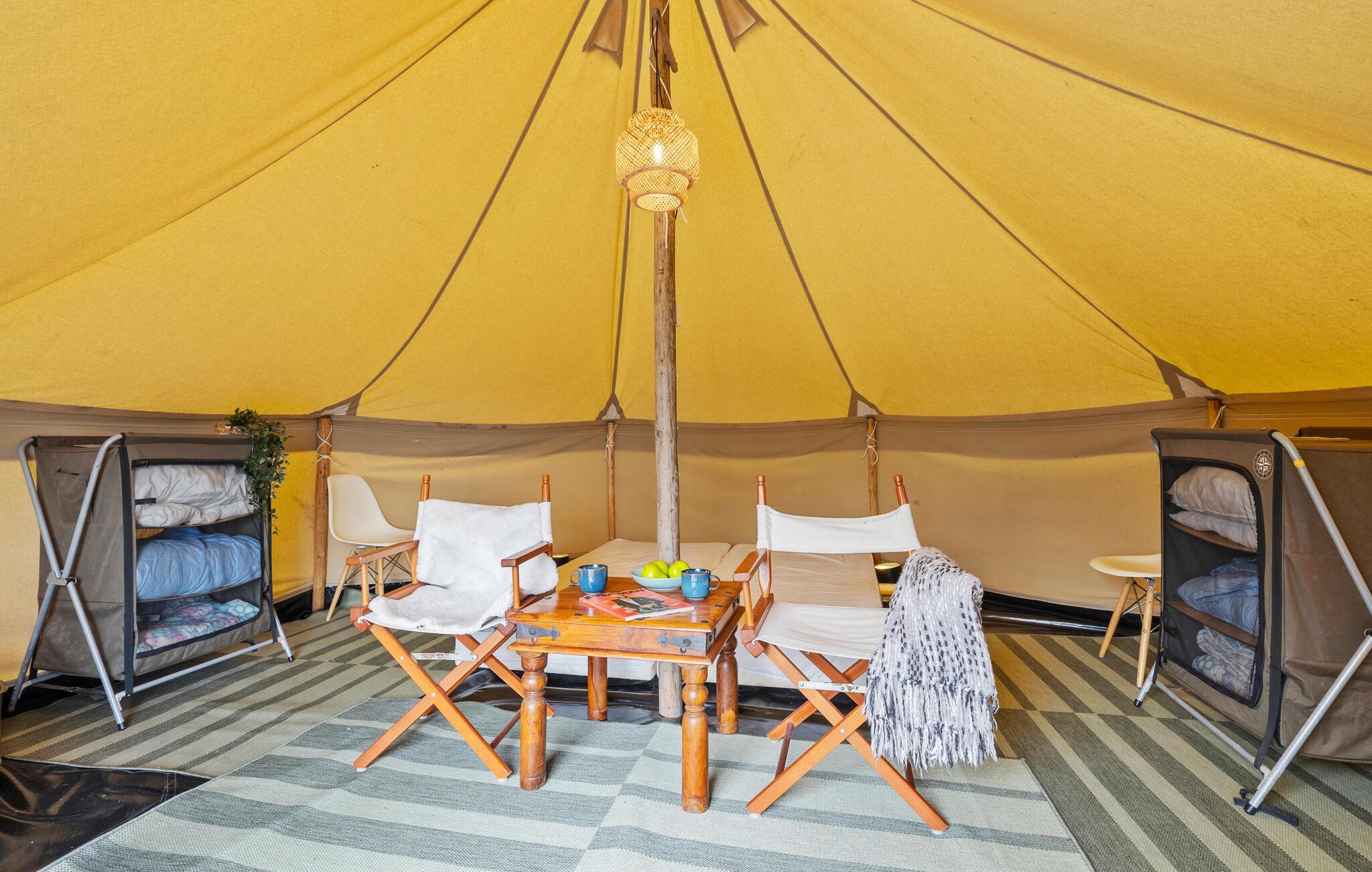 Wenn Sie einen Urlaub nahe dem Meer planen, in dem auch Erlebnisse in der Natur nicht zu kurz kommen, ist dieses idyllisch gelegene Glamping Zelt die richtige Wahl. Es empfängt Sie am Waldrand mit atemberaubendem Blick auf Felder, Meer und Sonnenuntergang und bietet mit seinem gemütlich gestalteten Inneren einen schönen Rahmen für Ihre Auszeit. Machen Sie es sich nach einem aktiven Tag am Kaminofen gemütlich und genießen Sie die Nähe der Natur.