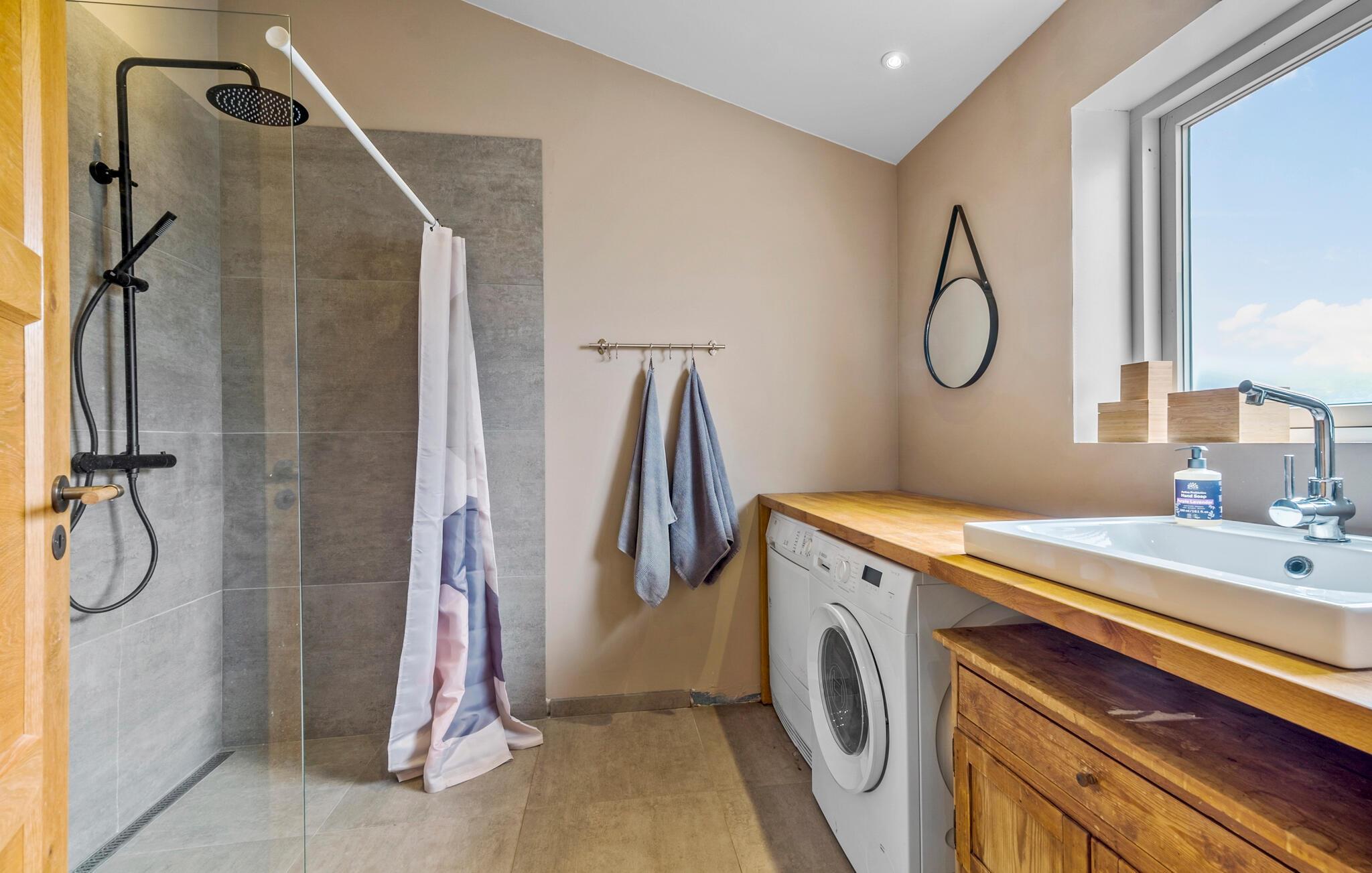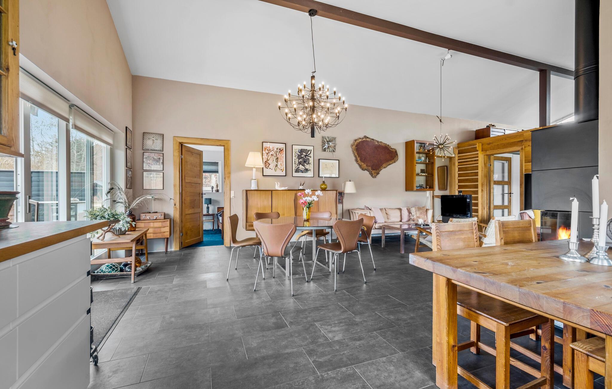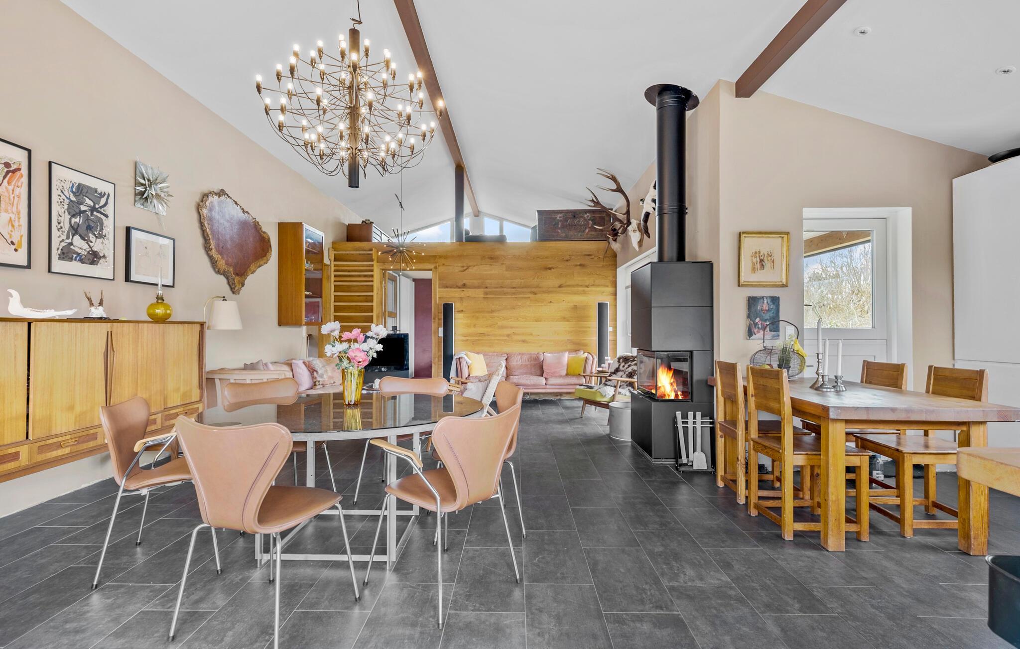 Freuen Sie sich auf eine wunderbare Auszeit mit der Familie oder Freunden in diesem gemütlichen Ferienhaus auf einer idyllischen Insel. Im Inneren des Hauses erwartet Sie ein Wohnbereich, der stilvoll eingerichtet ist. Machen Sie es sich vor dem knisternden Kaminofen bequem oder genießen Sie Ihre Mahlzeiten in der geräumigen Küche mit Essbereich, die zum gemeinsamen Kochen einlädt. Das großzügige Wohnzimmer bietet mit seinen bequemen Sitzgelegenheiten viel Platz, um mit der ganzen Familie Spiele zu spielen oder in Ruhe zu lesen.