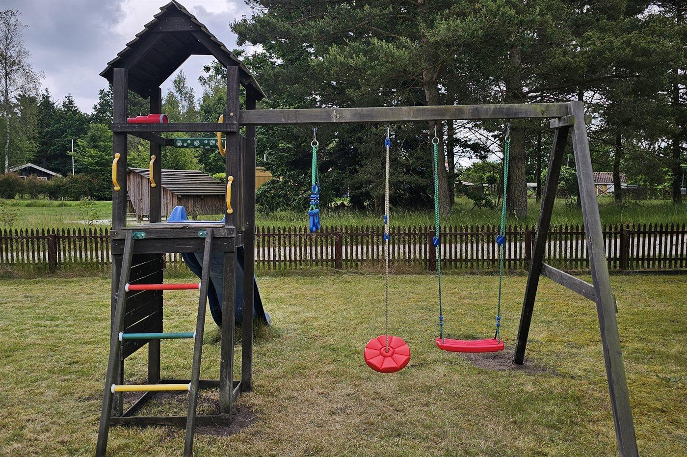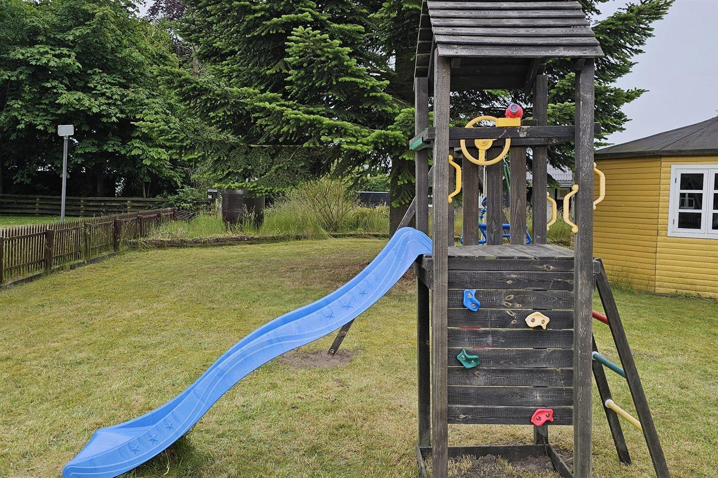 The holiday home is situated on a 1200 m² natural site. Situated 6500 m from the sea. Nearest shop is 3000 m away. A terrace belong to the holiday home. Furthermore the house has a covered terrace. Equally, you have access to a sunroom. Play tower. Barbecue at your disposal. Parking place by the holiday home.