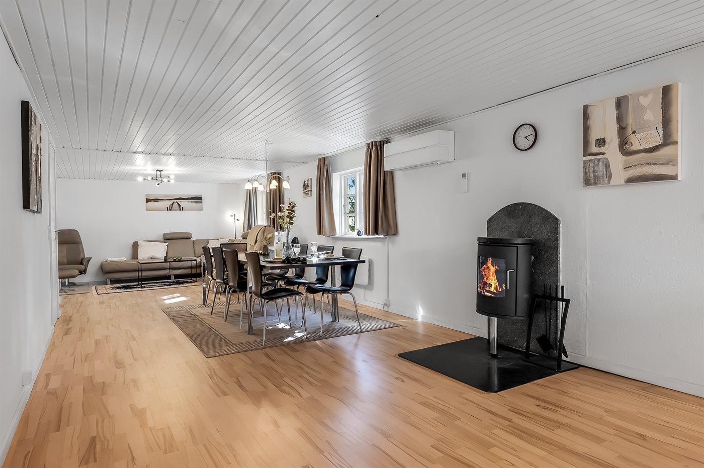 Holiday home suitable for 9 persons . The holiday home is 128 m² and is build in 1973. In 1999 the holiday home was renovated. In 2022 the holiday home was partial renovated. No pets allowed. The holiday home is equipped with 1 energy-friendly air-to-air heat pump. The holiday home has washing machine. Freezer capacity of 60 litres. Further more there is 1 wood-burning stove.