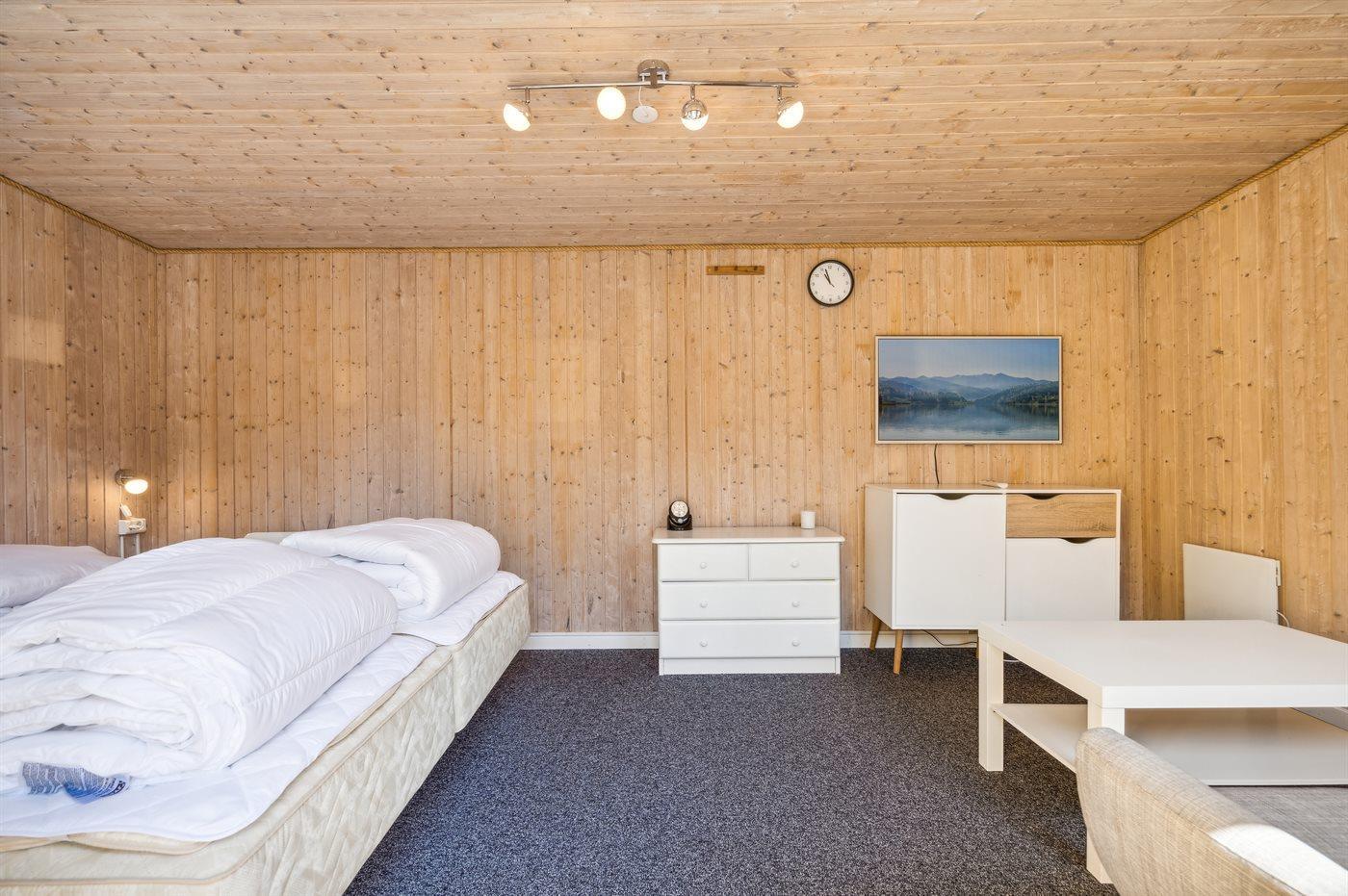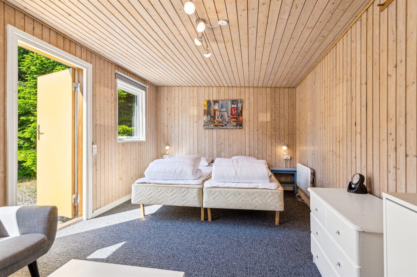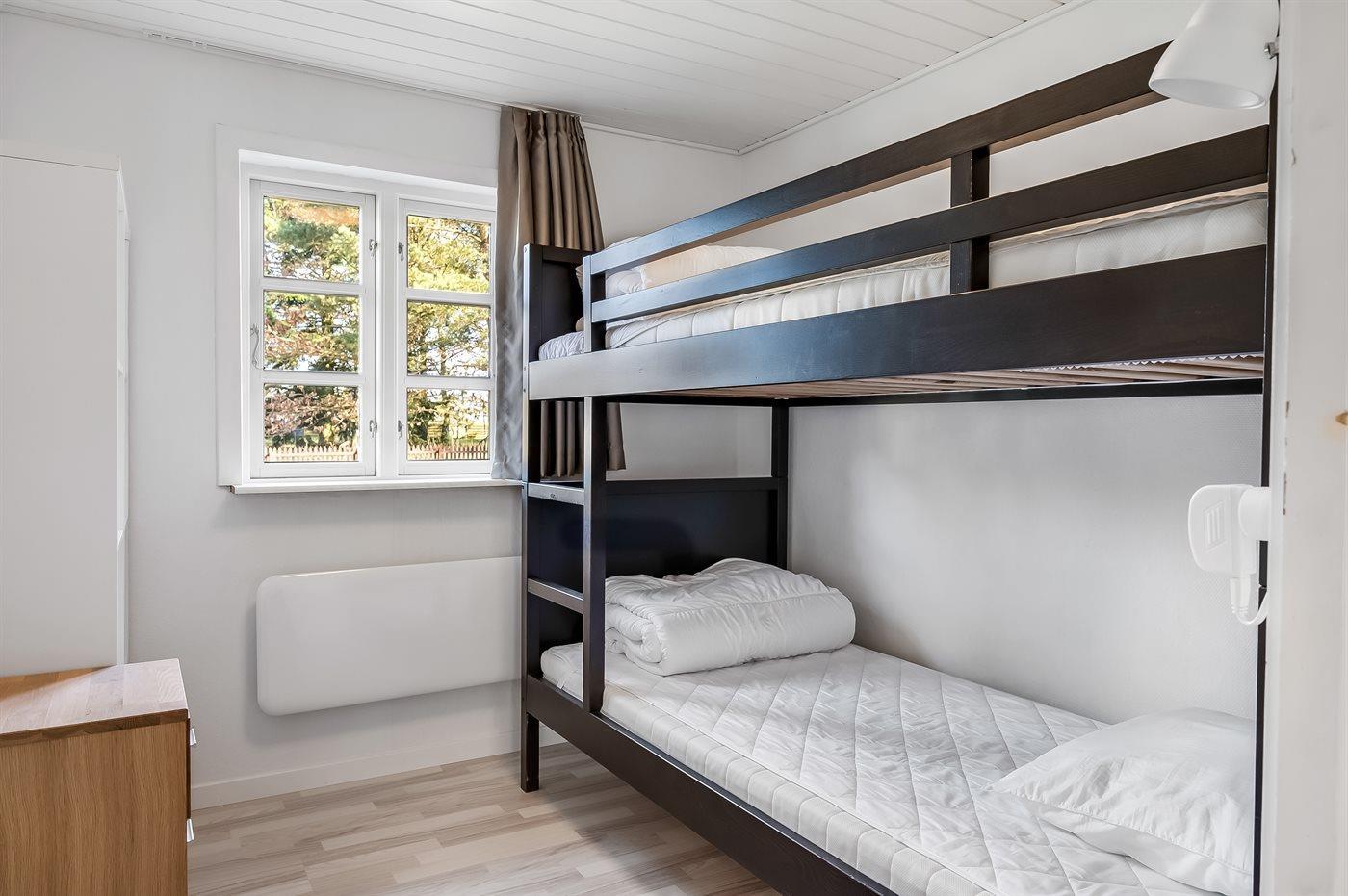 All together there are 4 bedrooms. The beds are divided on: 6 sleeping places in double beds. 1 sleeping place in single bed. 2 sleeping places in bunk bed. 2 of these sleeping accommmodations are located in the annex.