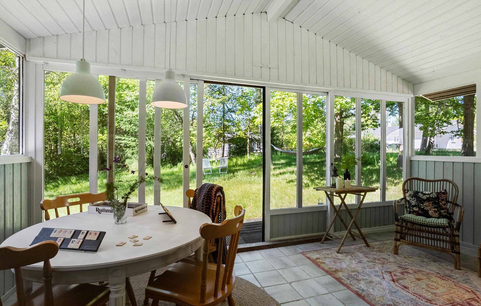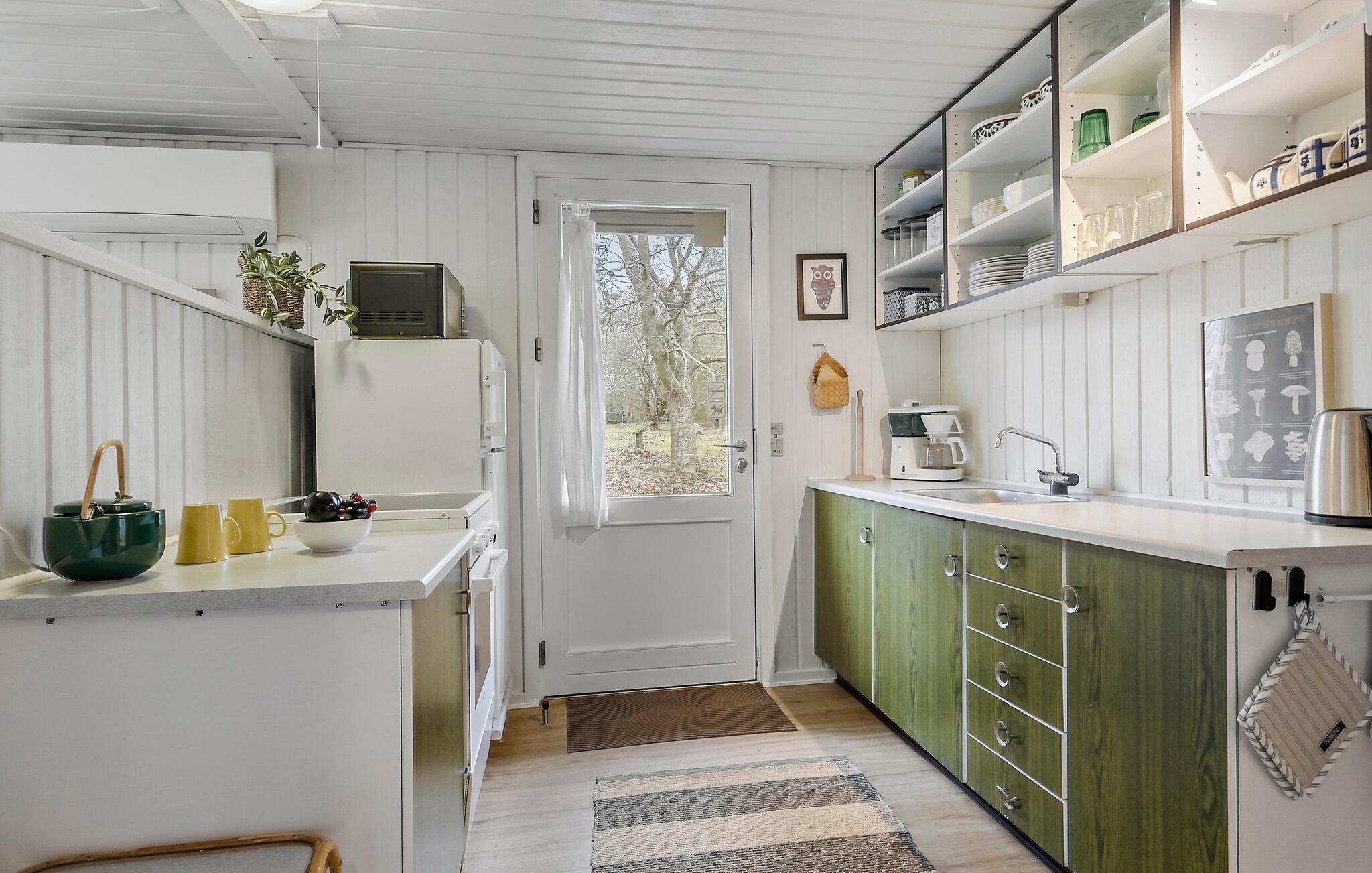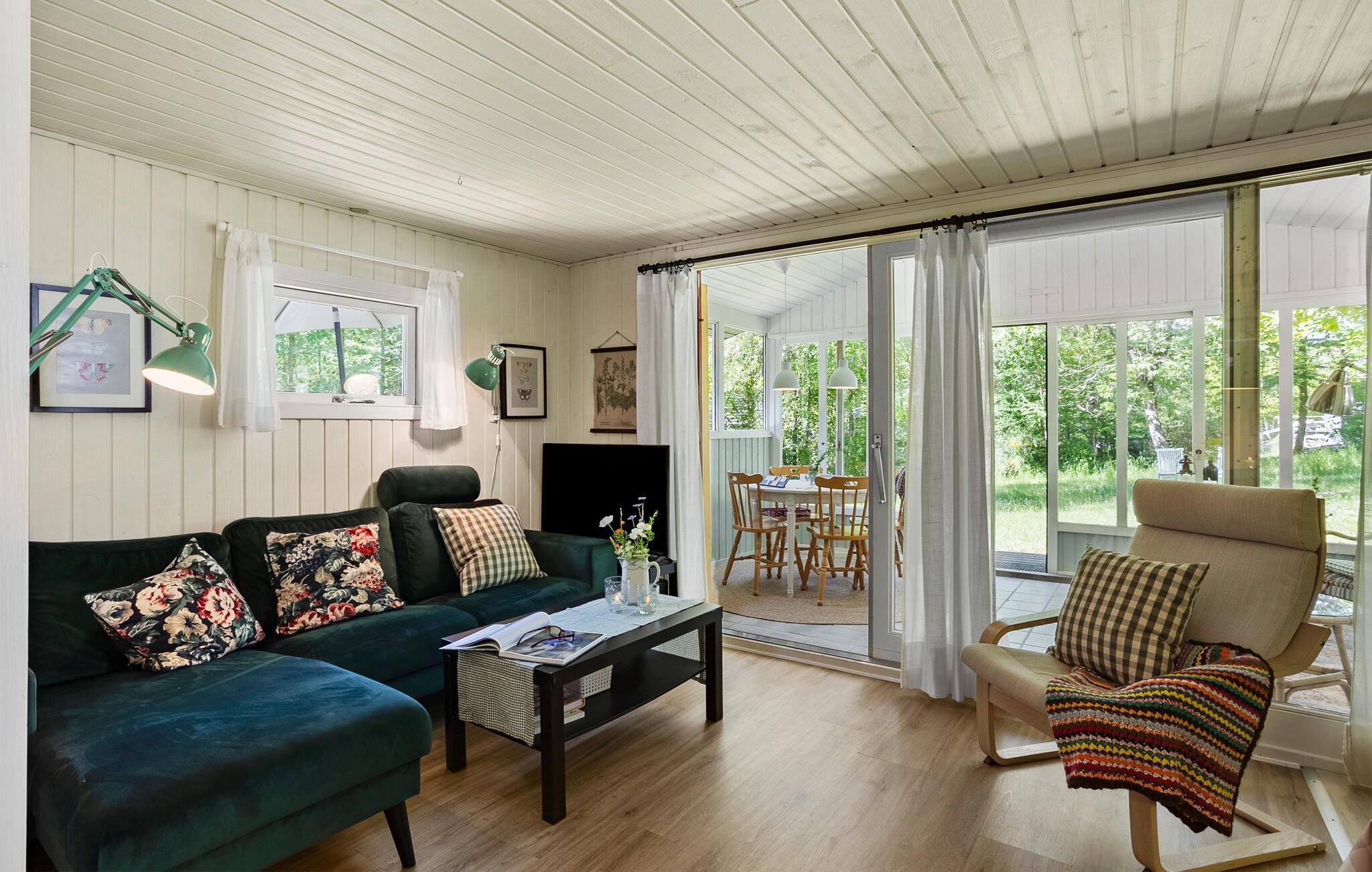 Lassen Sie den Alltag hinter sich und genießen Sie entspannte Tage in diesem charmanten Ferienhaus. Die ruhige Lage inmitten eines natürlichen Waldgrundstücks lädt zum Abschalten ein, während die stilvolle Einrichtung und die gemütliche Atmosphäre für einen gelungenen Aufenthalt sorgen. Der Wohnbereich und der Wintergarten mit großen Fenstern bieten eine herrliche Aussicht ins Grüne und laden zum Verweilen ein. Machen Sie es sich auf dem Sofa bequem, lesen Sie ein gutes Buch oder genießen Sie entspannte Abende mit einem Film. Der Kaminofen sorgt für wohlige Wärme an kühleren Tagen. Bereiten Sie in der schönen Küche mit ihrer nostalgischen Einrichtung köstliche Mahlzeiten zu.