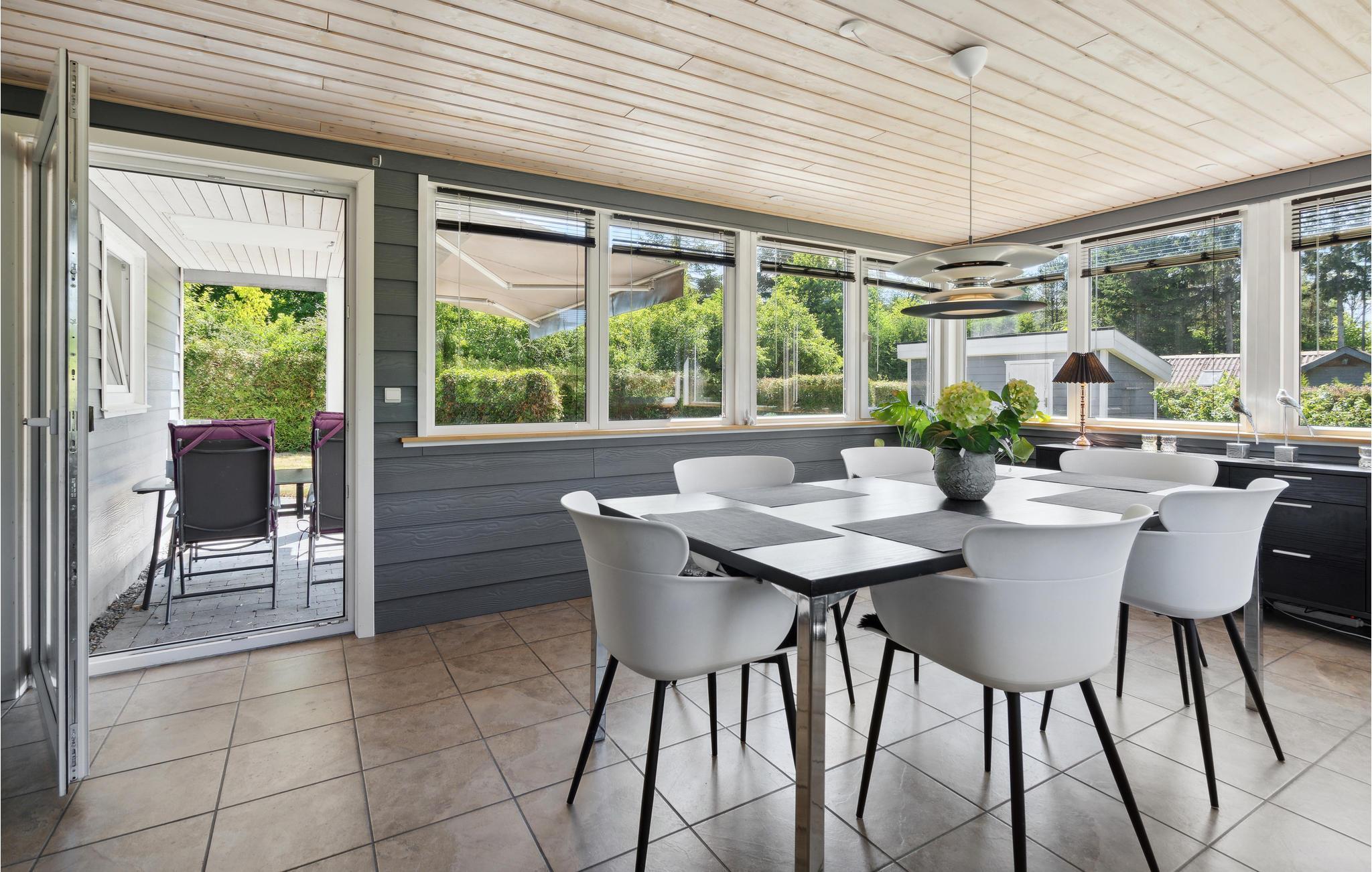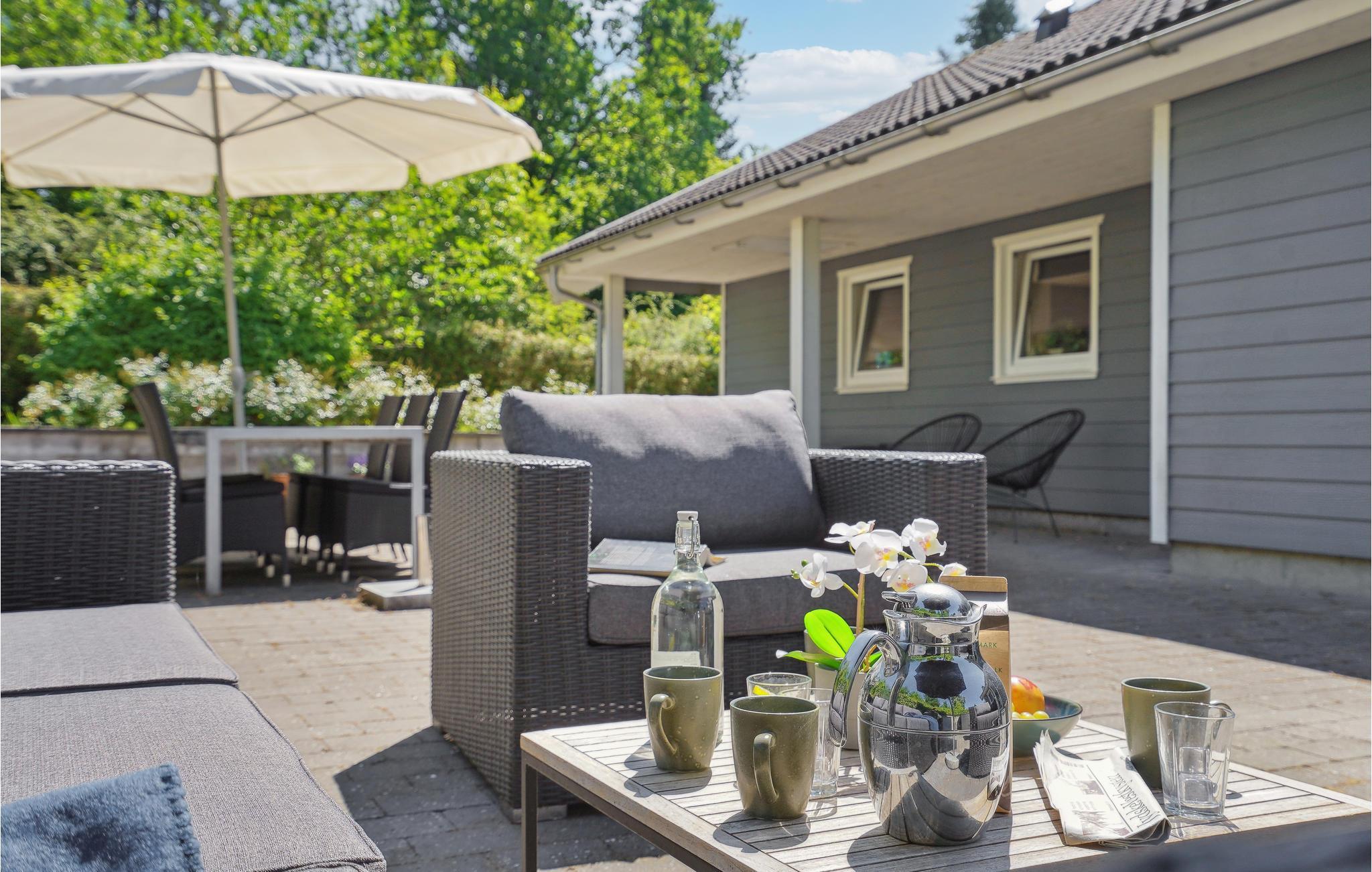 In schöner, ruhiger Lage umgeben von Bäumen erwartet Sie dieses komfortable Ferienhaus. Die wohnlich gestalteten Räume laden zum Entspannen ein, die stilvolle Einrichtung und zahlreiche Fenster sorgen dafür, dass Sie sich hier gleich wohlfühlen. Machen Sie es sich abends auf dem Sofa bequem, feuern Sie im Kaminofen an, der eine behagliche Wärme verströmt, und plaudern Sie noch lange.