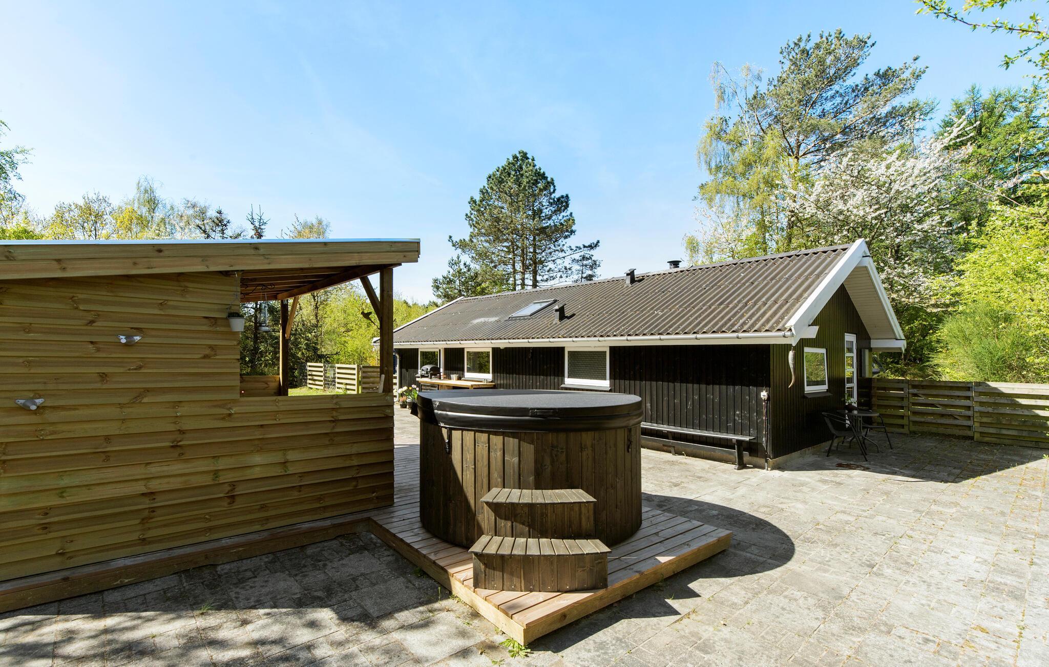 Dieses angenehme Ferienhaus in Selkær Mølle empfängt Sie mit heller und liebevoll gestalteter Einrichtung, die sofort ein Wohlfühlklima schafft. Der Wohnbereich bietet Ihnen genügend Platz für entspannte Stunden vor dem Kamin, während die gut ausgestattete Küche zu gemeinsamen Kochabenden einlädt. Die große Terrasse lädt Sie dazu ein, die frische Luft zu genießen, sei es beim Sonnenbaden, Lesen oder einem Grillabend mit der Familie. Der Garten bietet Platz für Spiel und Spaß für die Kleinen und Erholung für die Großen.