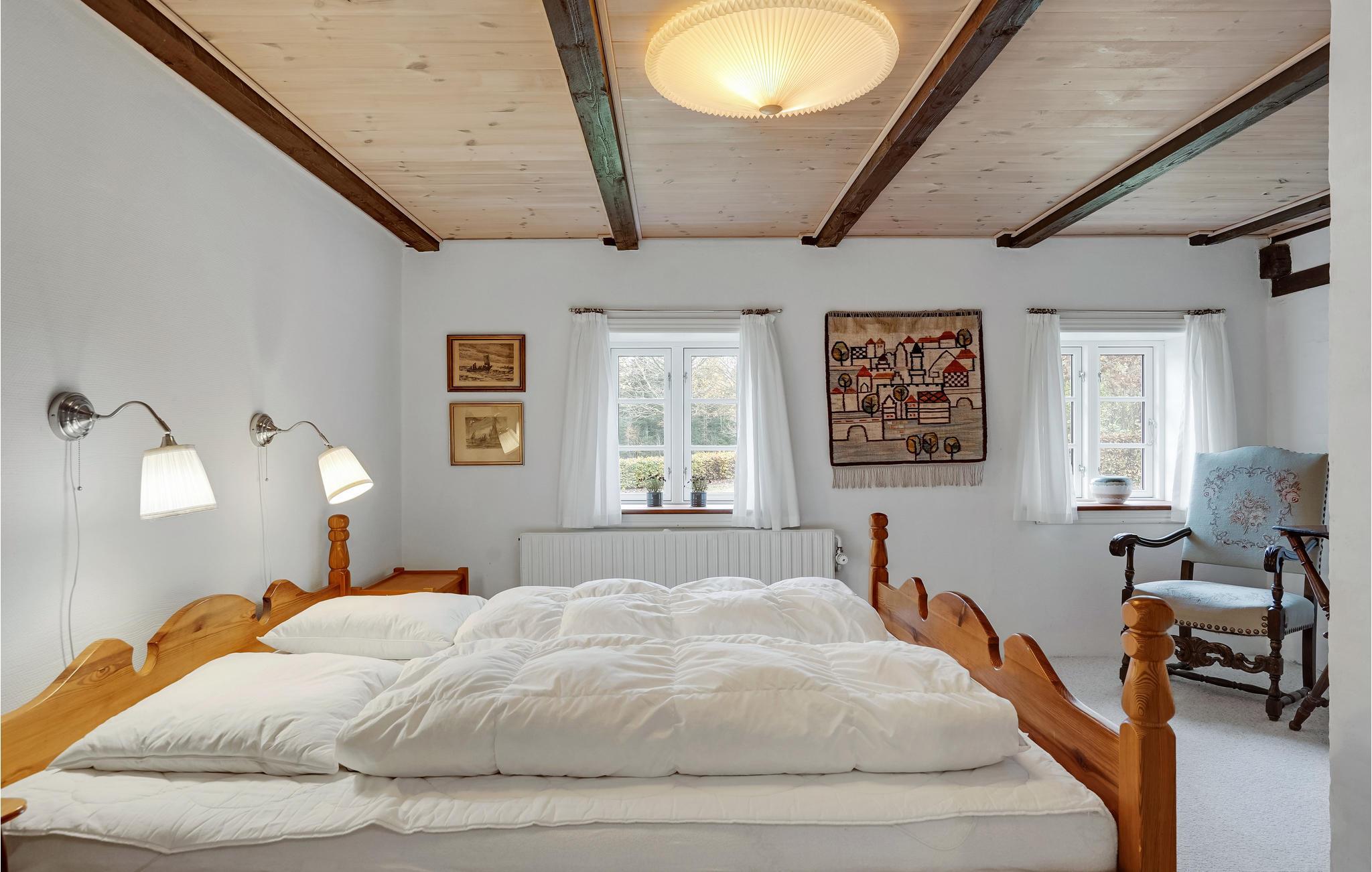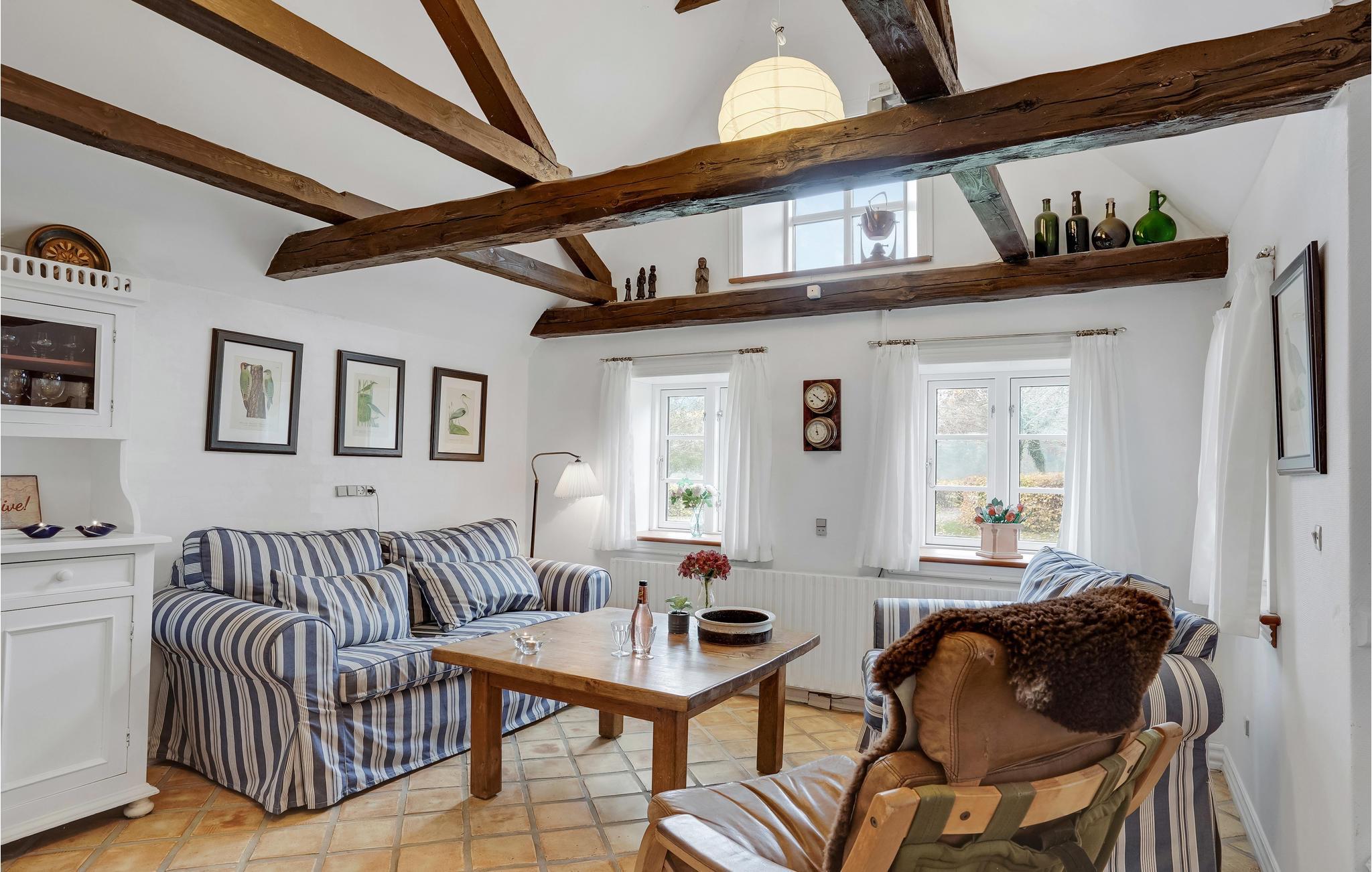 In ruhiger, ländlicher Umgebung nur 250 m vom Limfjord entfernt finden Sie dieses gemütliche Ferienhaus mit Reetdach. Das alte Bauernhaus wurde liebevoll renoviert und bietet somit eine geschmackvolle, komfortabel ausgestattete Einrichtung mit schönen Details wie Fliesenböden und sichtbaren Deckenbalken. Die authentische Atmosphäre des Hauses lädt zu gemütlichen Urlaubstagen beim Brettspielen, geselligen Mahlzeiten und stimmungsvollen Abenden vorm Kaminofen ein. Draußen findet die ganze Familie Platz zum Austoben oder für einen frisch gebrühten Kaffee in den Gartenmöbeln beim Sonnenschein und Blick auf die schöne, windförmige Bäume.