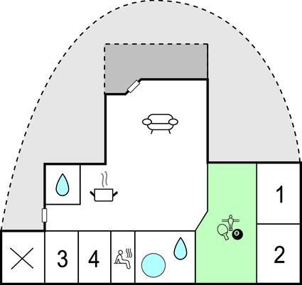 Das Ferienhaus verfügt über einen 30 m² großen Aktivitätsraum für Kinder und Erwachsene mit Spielen wie Billard, Tischtennis und Darts. Außerdem 2 wunderschöne Badezimmer; das eine ist mit einen 3-4 Personen Whirlpool und Sauna eingerichtet und hier können Sie schöne Wellness-Stunden verbringen. Das exklusive Wohnzimmer ist geschmackvoll möbliert und hat einen Kaminofen. Von hier gibt einen Ausgang zur schönen Terrasse, von wo Sie die Sonne vom Morgen bis Abend genießen können.