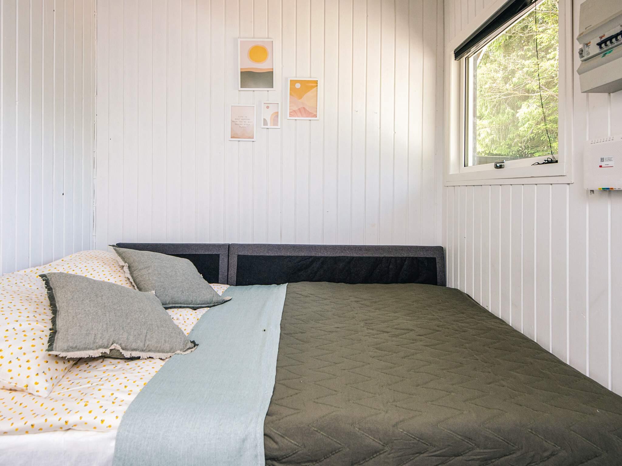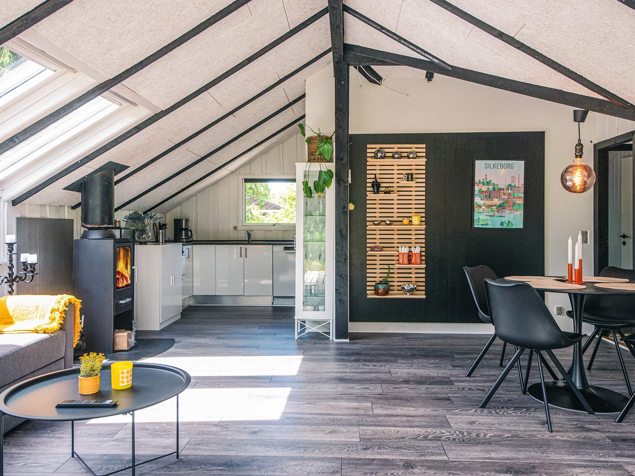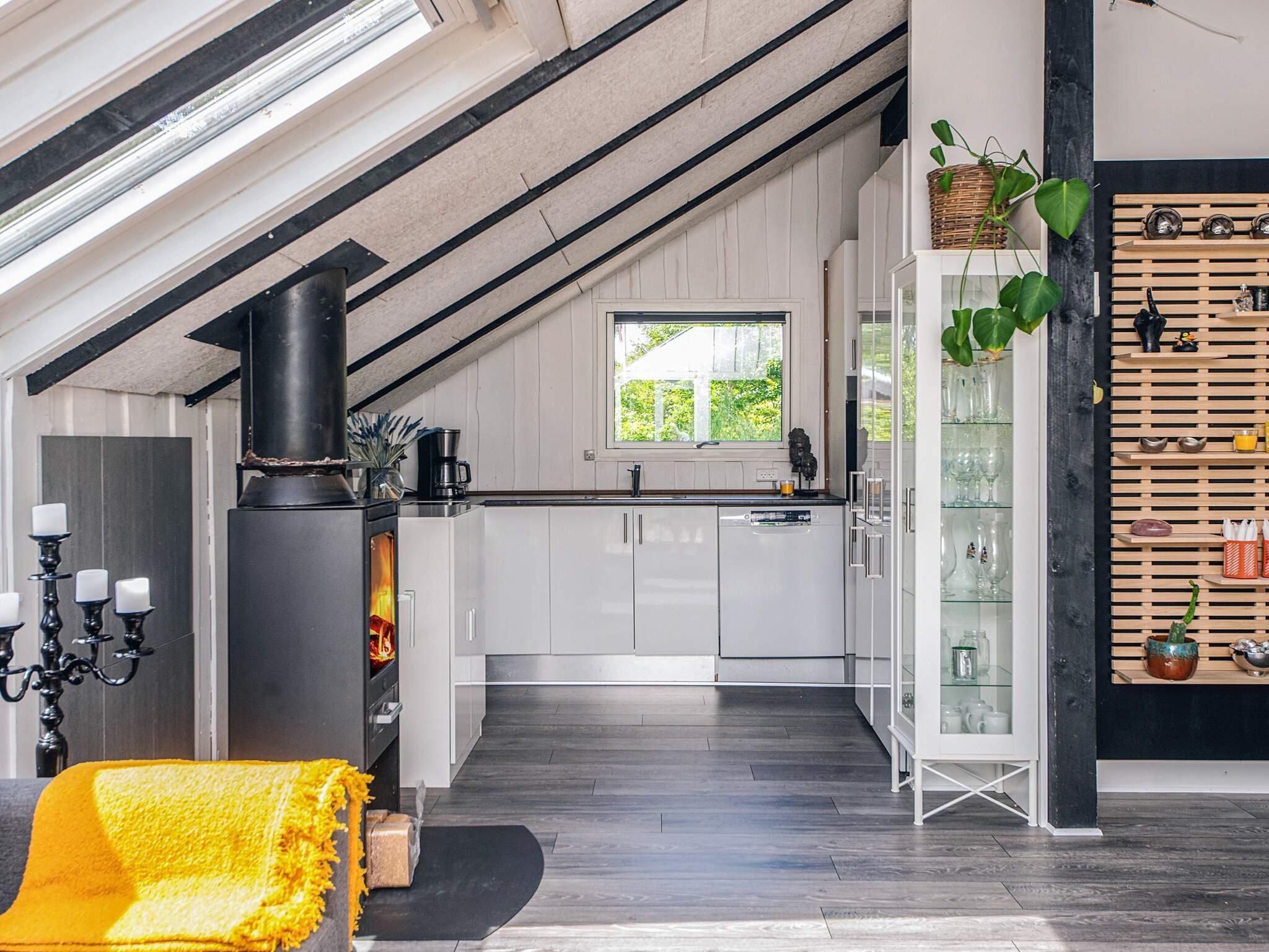Das Ferienhaus verfügt über zwei Schlafzimmer, eine offene Wohnküche, ein gemütliches Wohnzimmer mit Holzofen und direkten Zugang zu einer großen, teilweise überdachten Terrasse mit Gartenmöbeln und Grill. Neues Badezimmer mit schönen Details. Ruhige, grüne Lage – ideal für Entspannung und Familienzeit.