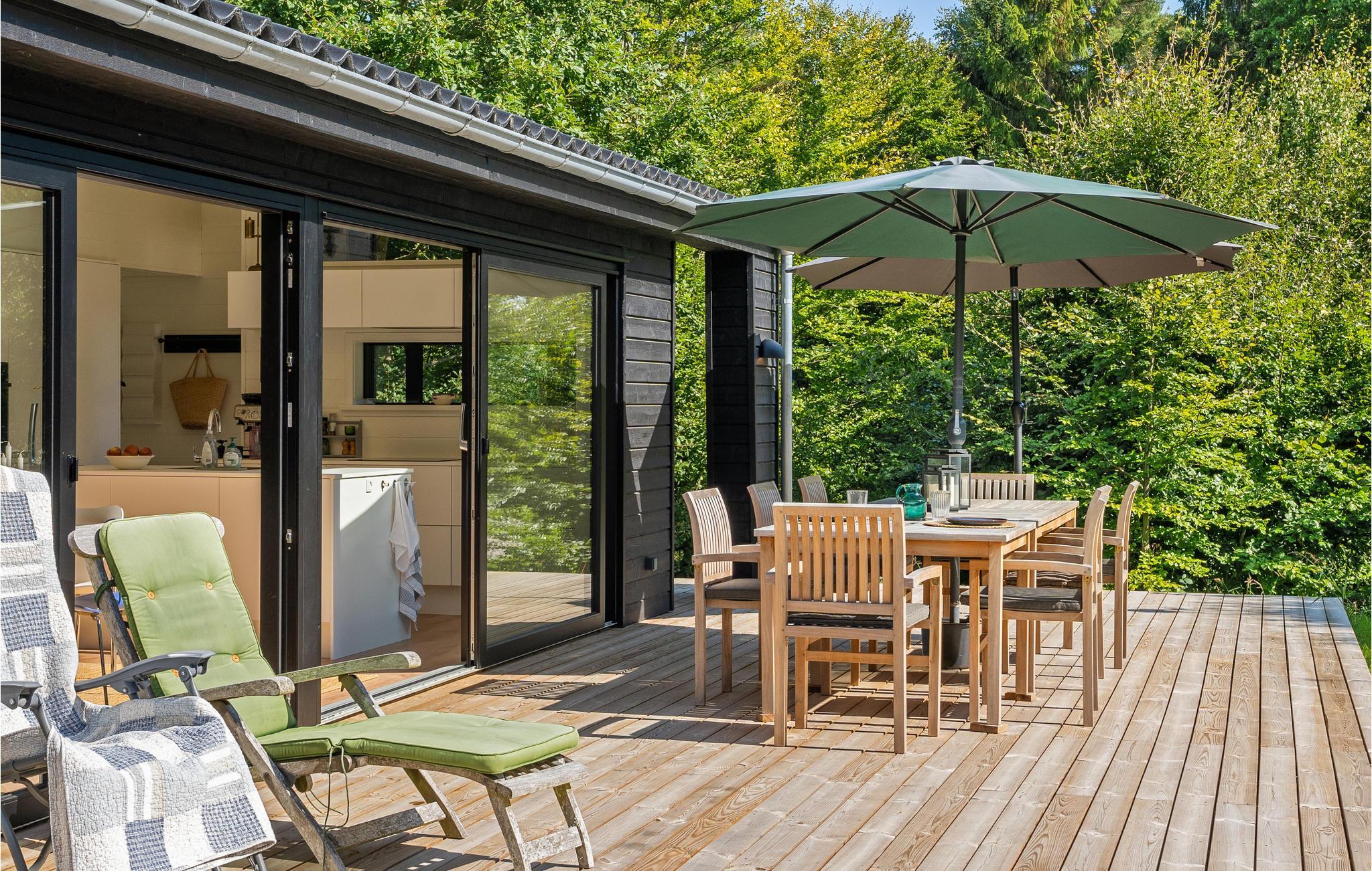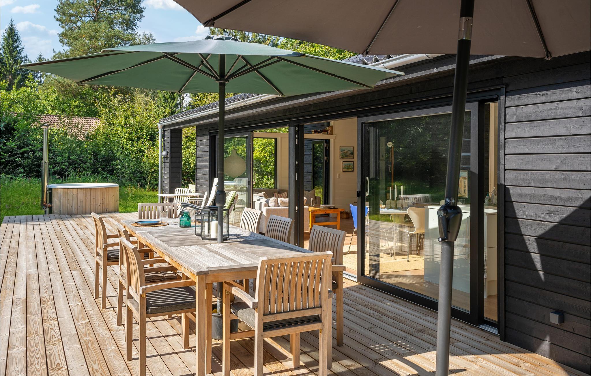 Verbringen Sie einen herrlichen Familienurlaub in diesem modernen und einladenden Ferienhaus. Kommen Sie an und fühlen sich wie zuhause und genießen im großen Wohnraum viele Stunden zusammen. Von hier aus haben Sie durch die Panoramafenster nicht nur einen tollen Blick in den Garten, sondern können in der offenen Küche leckere Gerichte zaubern oder am Abend einen Filmabend veranstalten. Zu Ihrem zweiten Wohnzimmer wird die großzügige Holzterrasse, die zu Sonnenbädern, Grillabenden oder einen Umtrunk auf den Gartenmöbeln einladen. Lauschen Sie beim Baden im Finnischen Holzbad dem Vogelgezwitscher aus den Baumkronen und beobachten Ihre Kinder wie Sie Garten Verstecken spielen.