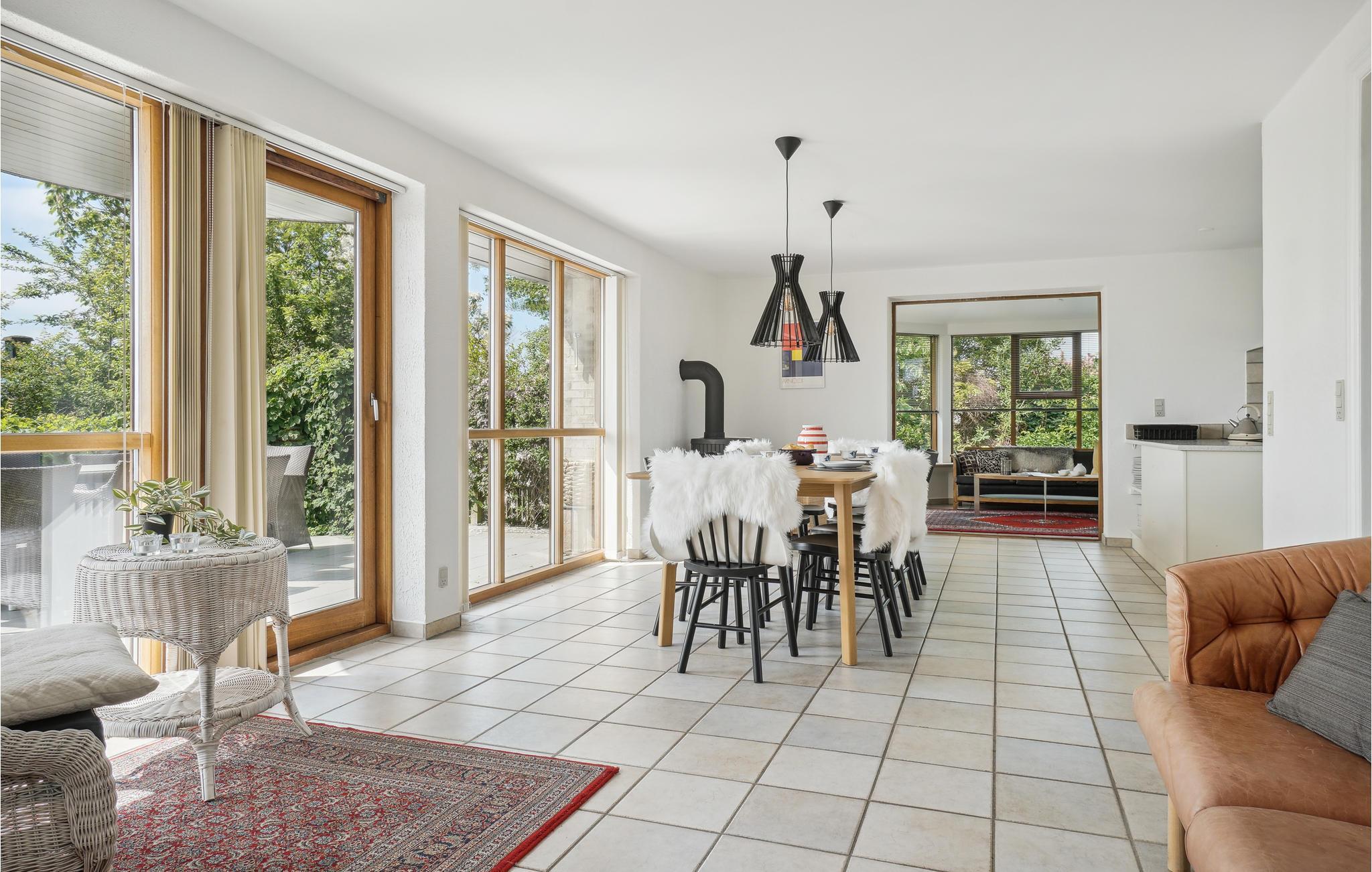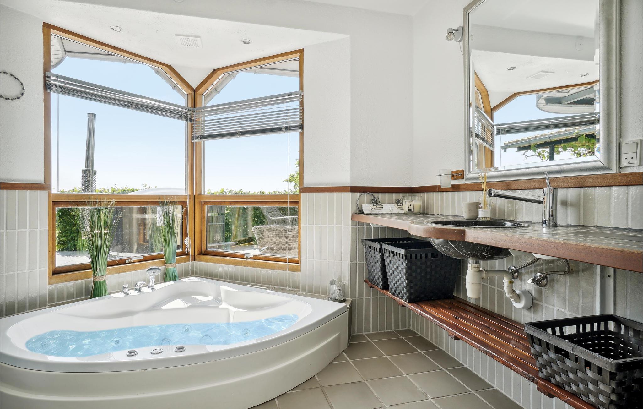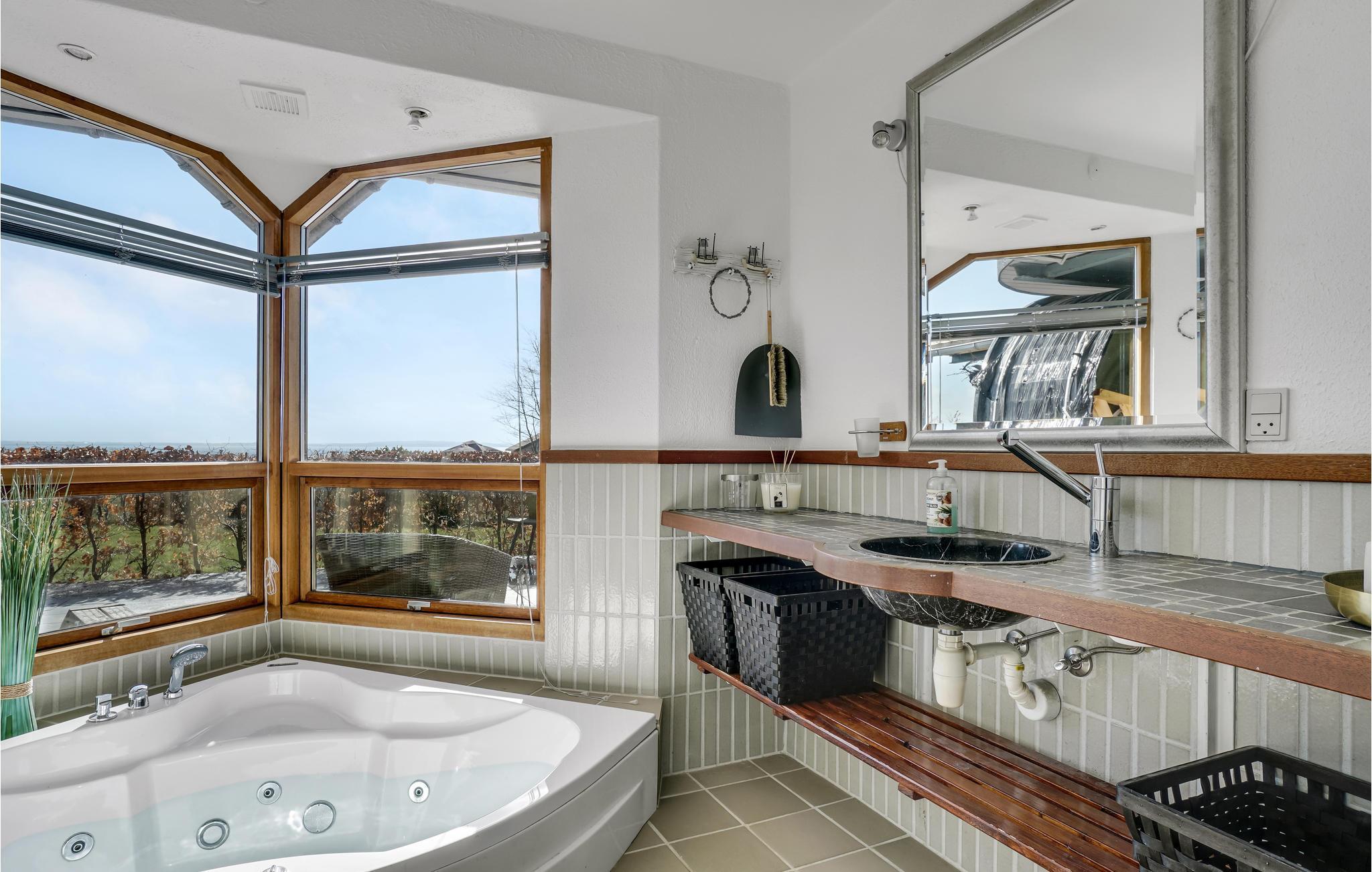 Das komfortable Haus begrüßt Sie in sehr guter Lage nahe dem Fjord. Die geschmackvoll möblierten Räume bilden den idealen Rahmen für eine schöne gemeinsame Zeit. Entspannen Sie hier in stilvollem Ambiente, moderne Möbel und ansprechende Holzelemente schaffen ein wohnliches Ambiente, und genießen Sie schon beim Aufwachen einen herrlichen Blick auf die Landschaft der Umgebung. Das gemütliche Sofa werden Sie gar nicht mehr verlassen wollen, denn dank der Panoramafenster fühlt es sich fast an, als säßen Sie im Garten. Auch beim erholsamen Bad in der Whirlwanne nach einem tollen Tag in der Natur können Sie die wunderbrare Aussicht in vollen Zügen genießen.