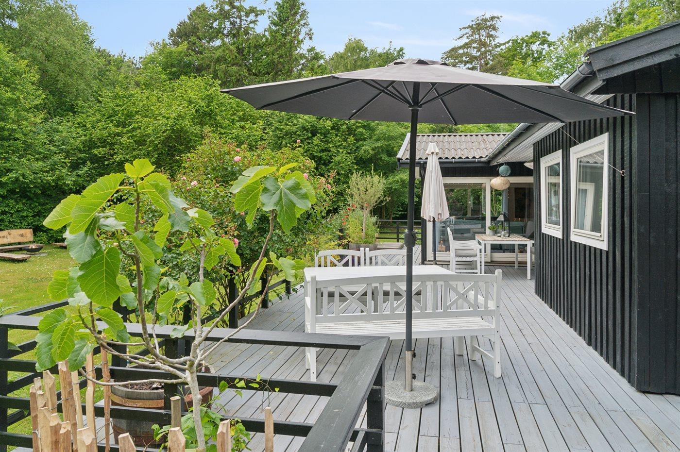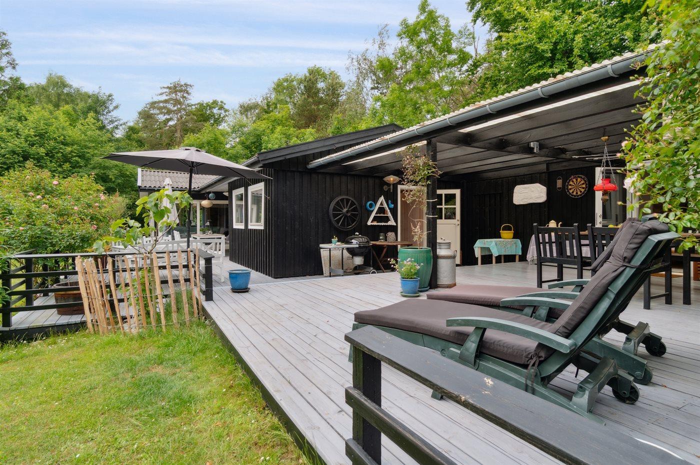 The holiday home is situated on a 3080 m² garden site. Situated 100 m from the sea. Nearest shop is 3650 m away. You will find a golf course in a distance of 8600 m. A 60 m² terrace belong to the holiday home. Furthermore the house has a 30 m² covered terrace.Fire place. Barbecue at your disposal. Parking place by the holiday home.