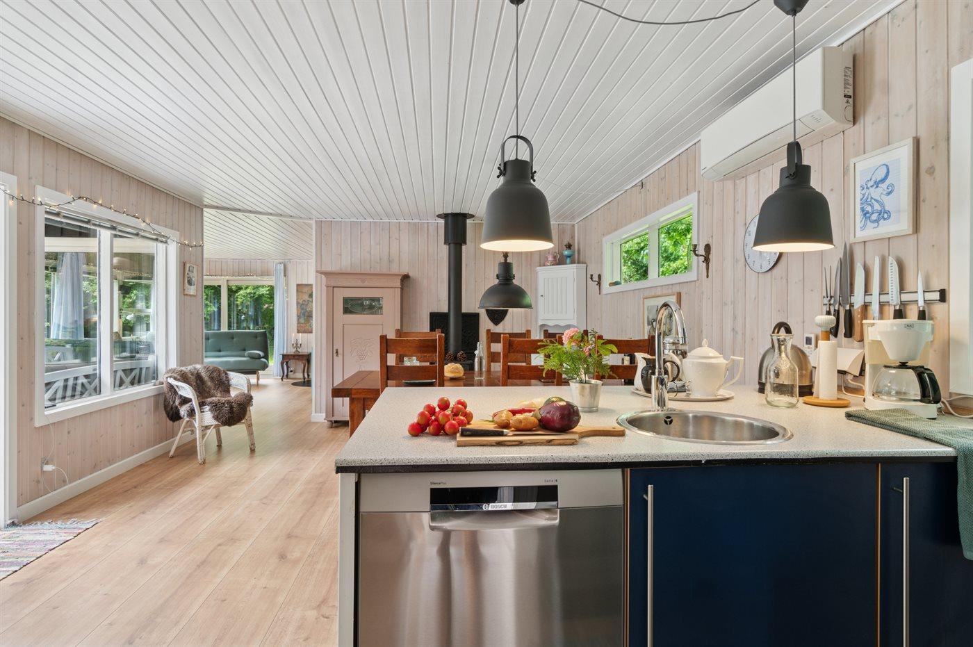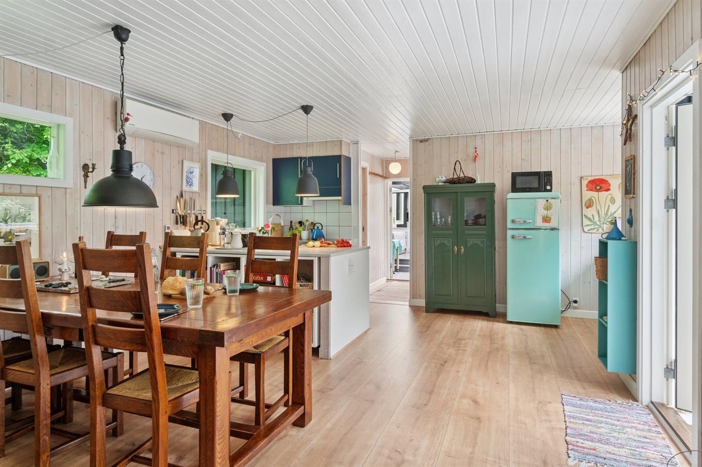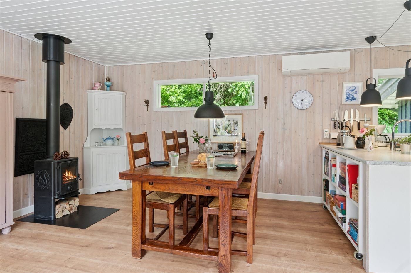 Holiday home suitable for 6 persons as well as 1 child up to 3 years. 2 of the beds is only suitable for older children (4-11 years). The holiday home is 105 m² and is build in 1972. In 2005 the holiday home was partial renovated. No pets allowed. The holiday home is equipped with 1 energy-friendly air-to-air heat pump. The holiday home has washing machine. Freezer capacity of 110 litres. Further more there is 1 wood-burning stove. For the youngest ones there is 1 high chair.