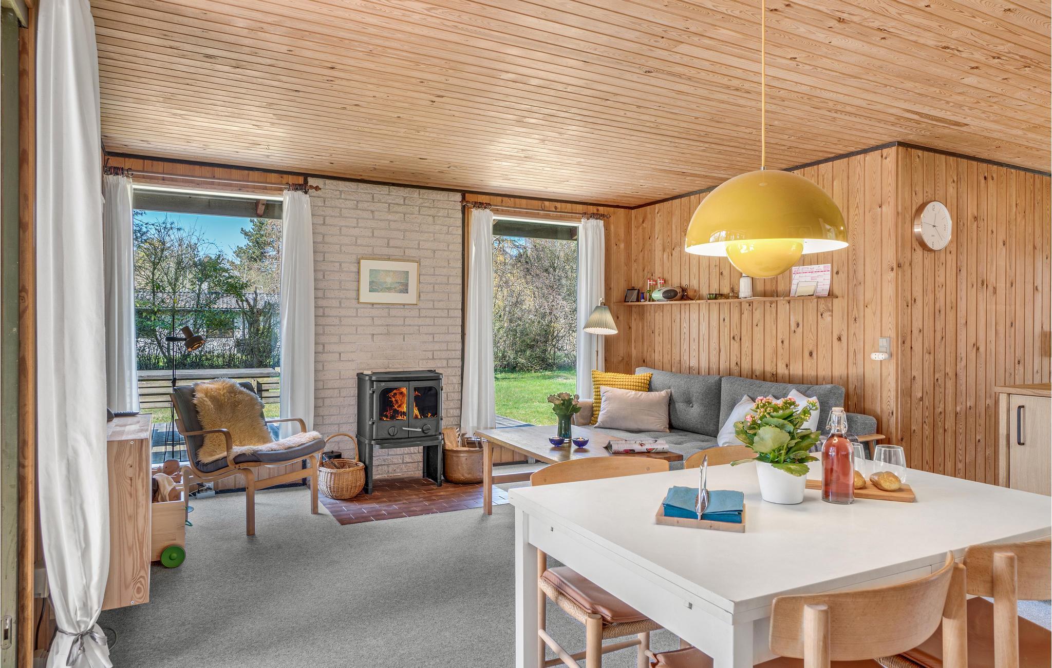 Das gemütliche Haus begrüßt Sie auf einem idyllischen, von Bäumen umgebenen Grundstück und in fußläufiger Entfernung zum Strand nahe guten Golf- und Angelmöglichkeiten. Die einladenden Räume mit wohnlicher Möblierung erhalten durch die Holzverkleidung einen warmen Ausdruck und bilden den idealen Rahmen für einen erholsamen Urlaub, in dem Sie den Alltag weit hinter sich lassen können. Große Fenster sorgen dafür, dass Sie im Wohnbereich einen schönen Blick in den Garten genießen. Entspannen Sie hier nach einem Strandspaziergang, machen Sie es sich alle zusammen mit einem Film oder Spielen gemütlich und genießen Sie die gemeinsame Zeit, während die Flammen im Kaminofen leise knistern.