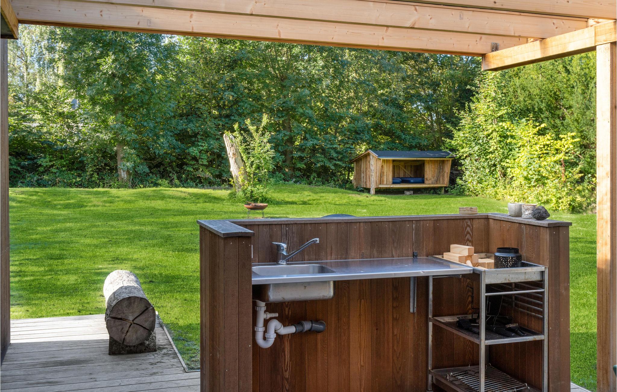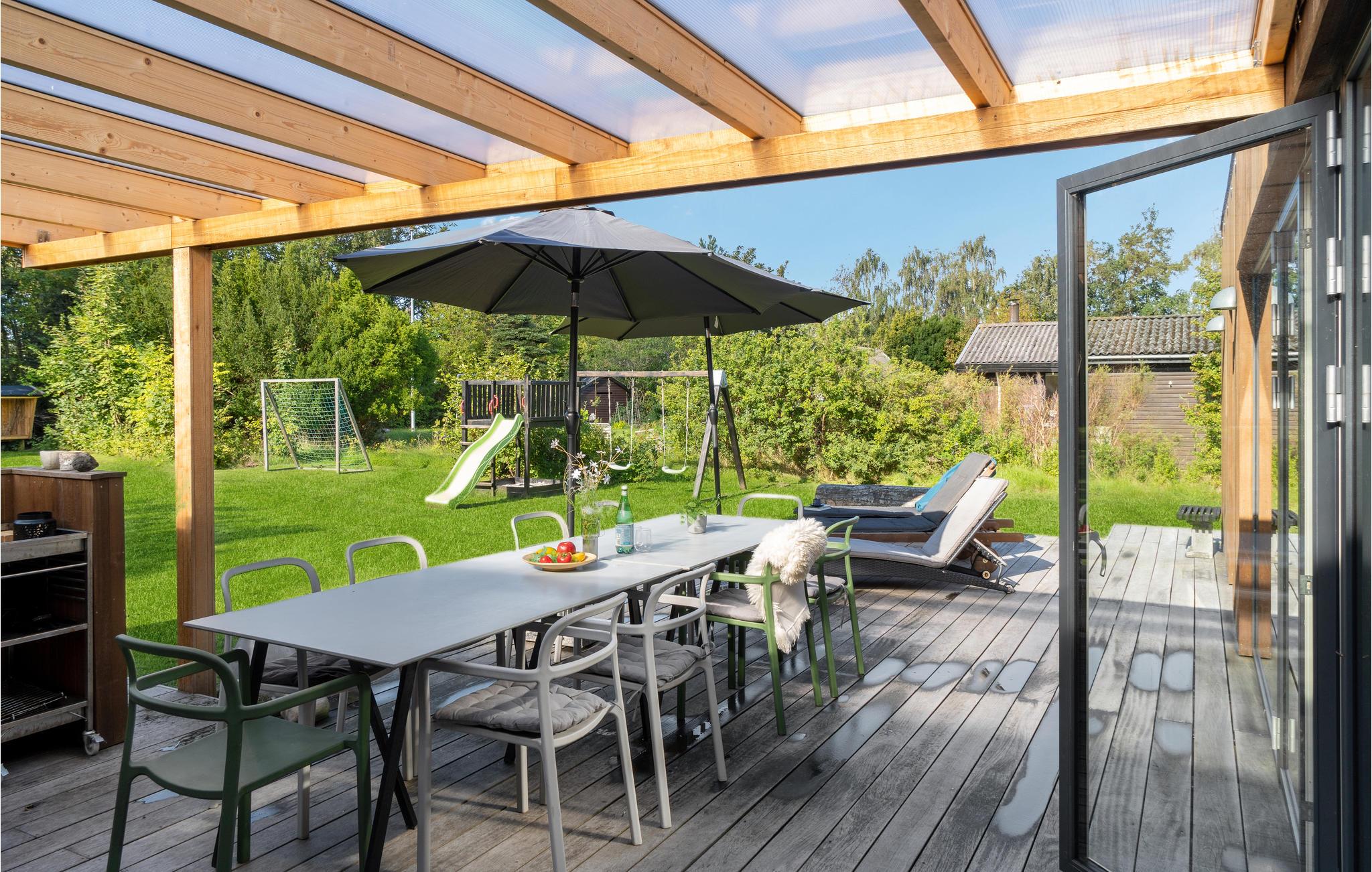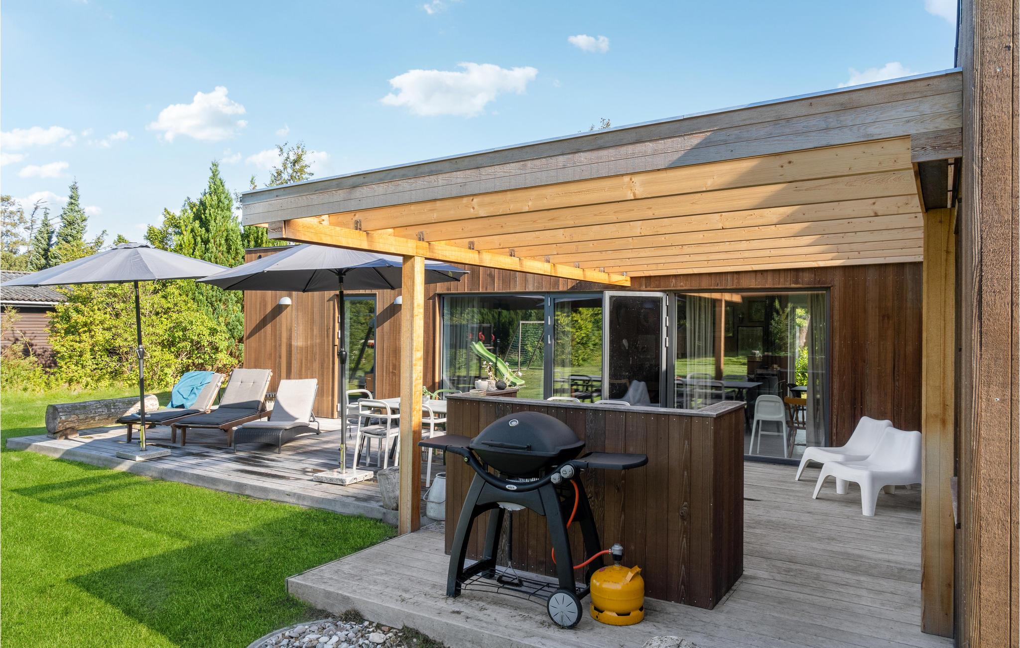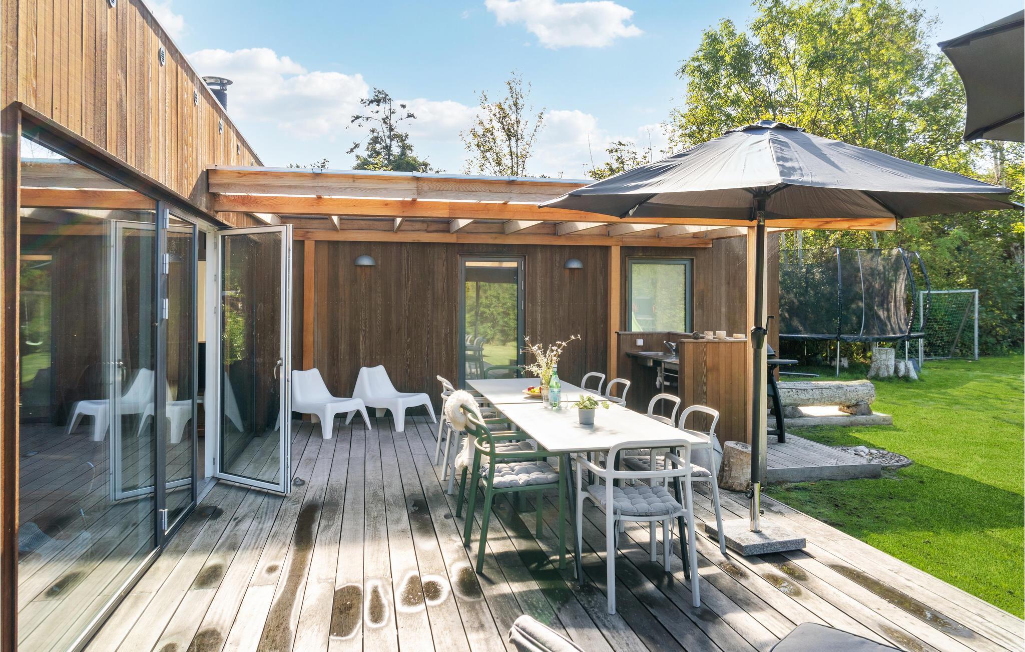 Geräumiges Ferienhaus mit viel Platz für die große Familie. Hier wohnen Sie nur 180 m vom Wasser entfernt. Das Haus hat eine helle Wohnküche, zwei Badezimmer, von denen das eine mit Whirlwanne eingerichtet ist, einen Hausarbeitsraum und fünf Schlafzimmer. Vom Wohnraum kommen Sie auf die schöne Terrasse mit viel Sonne.