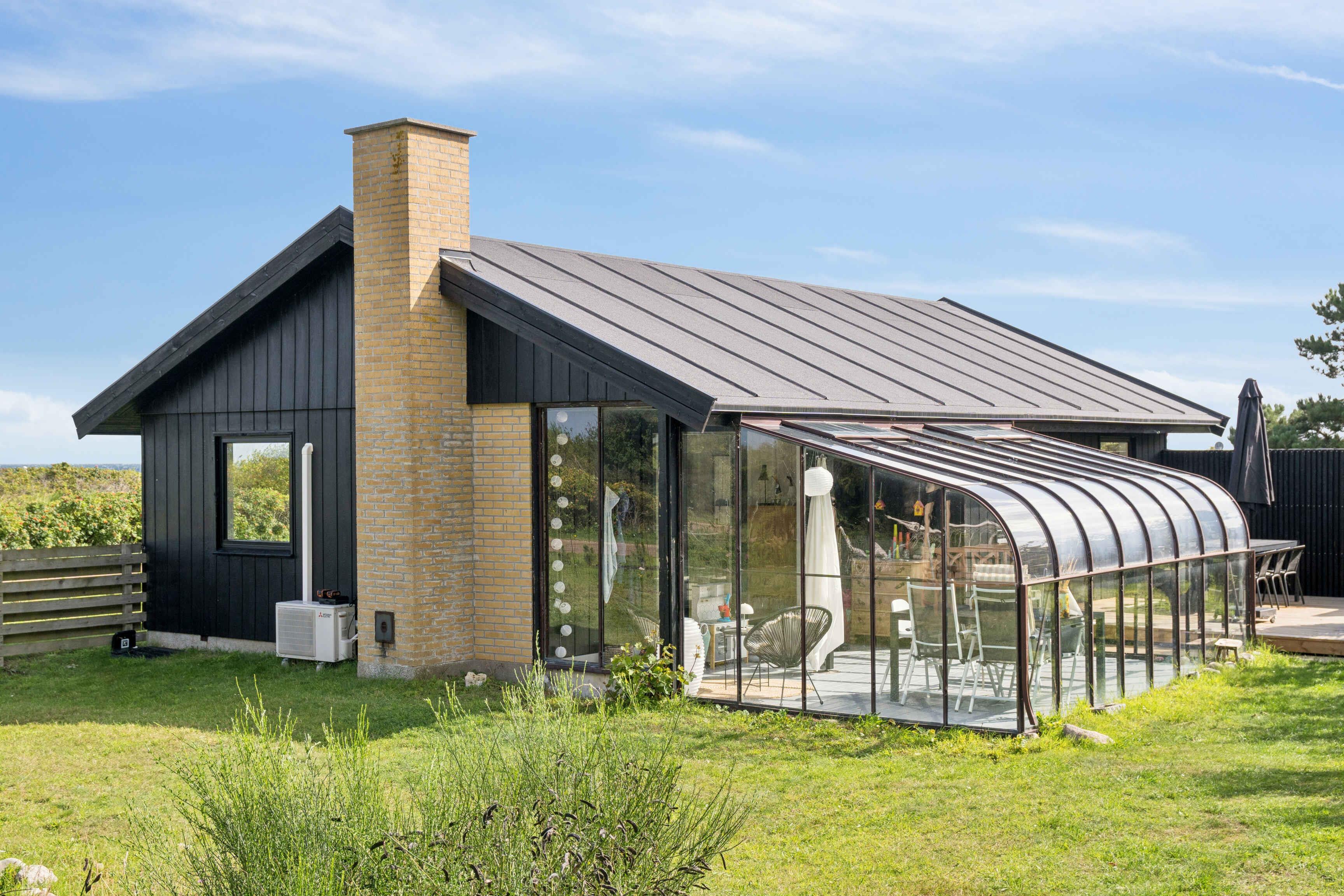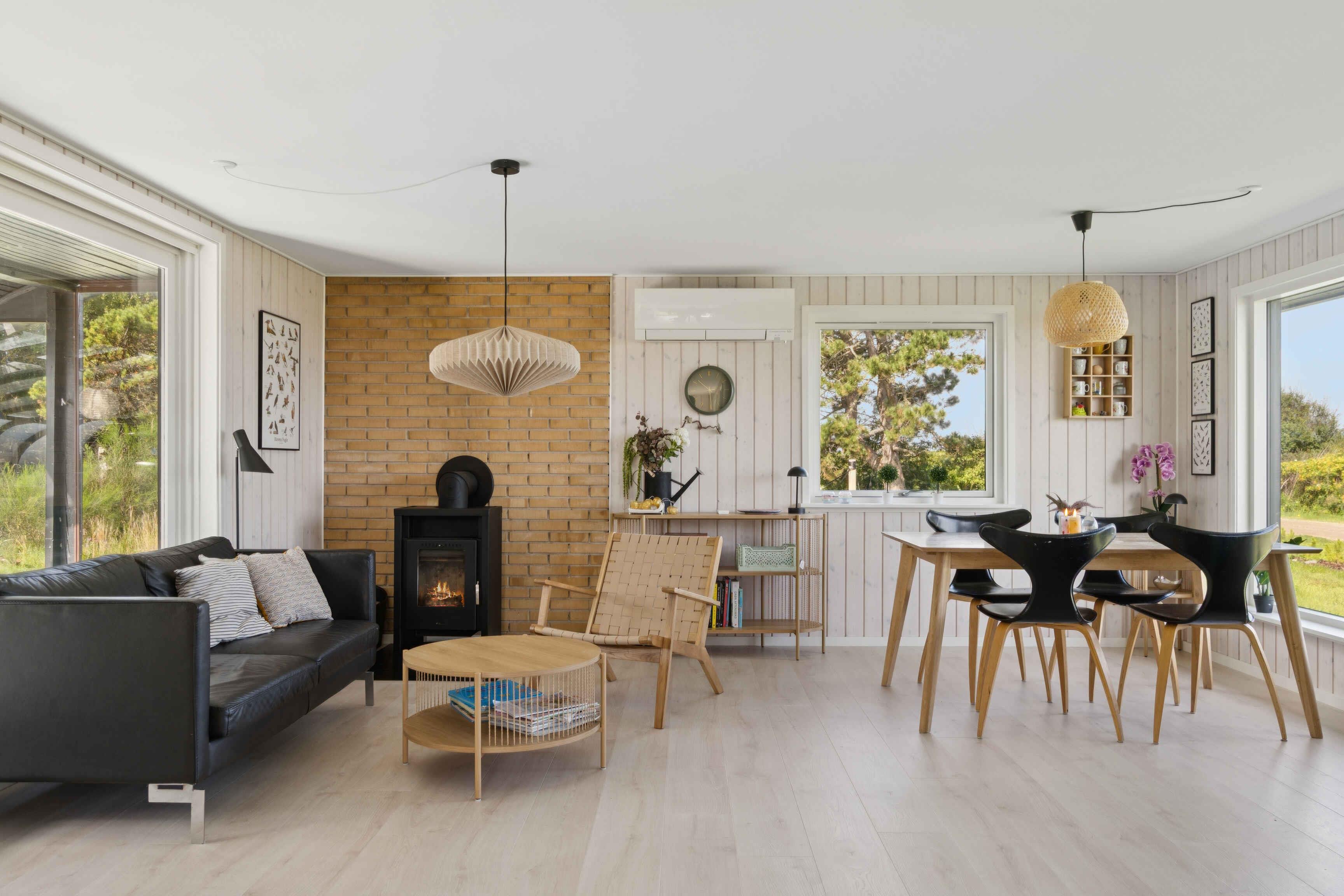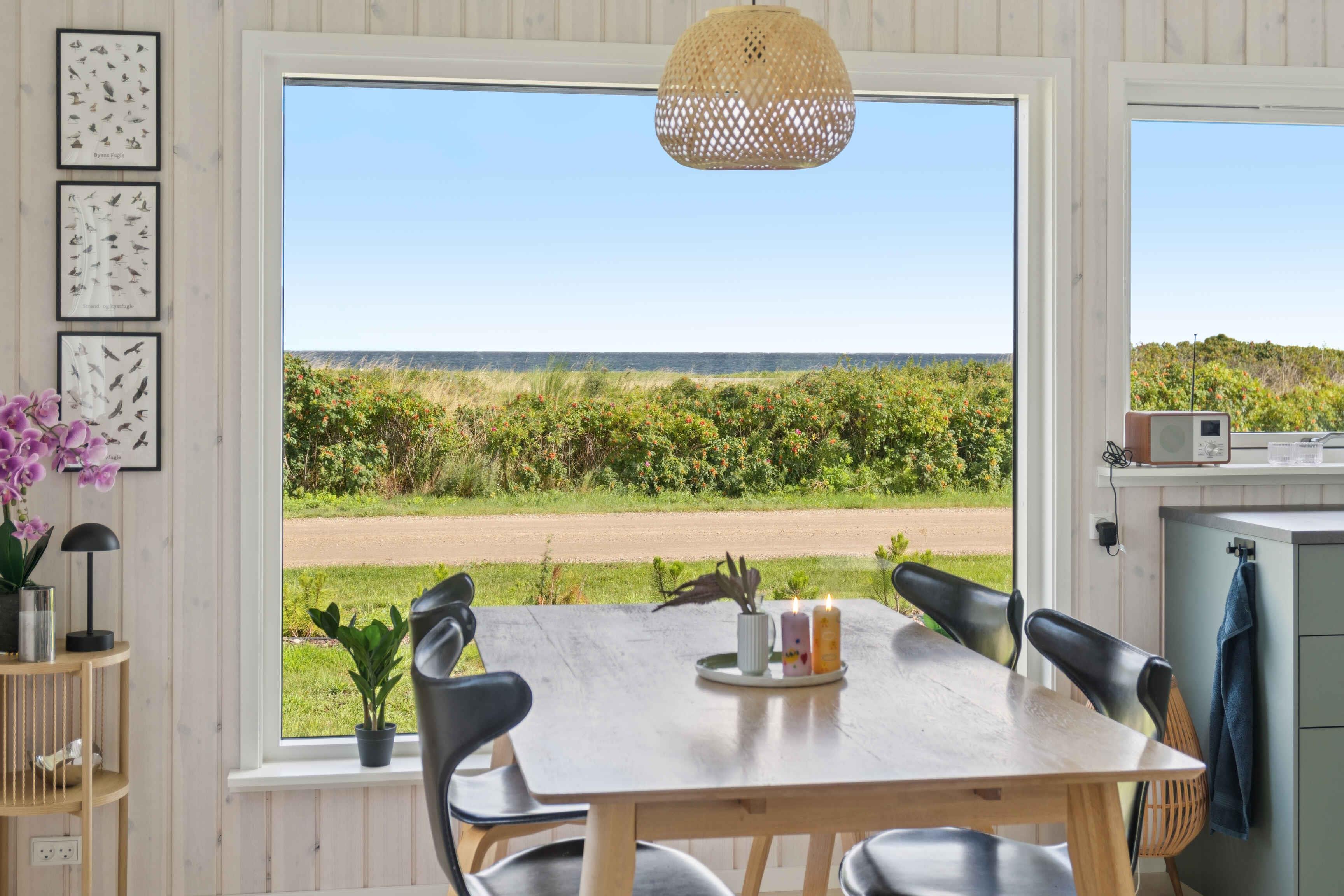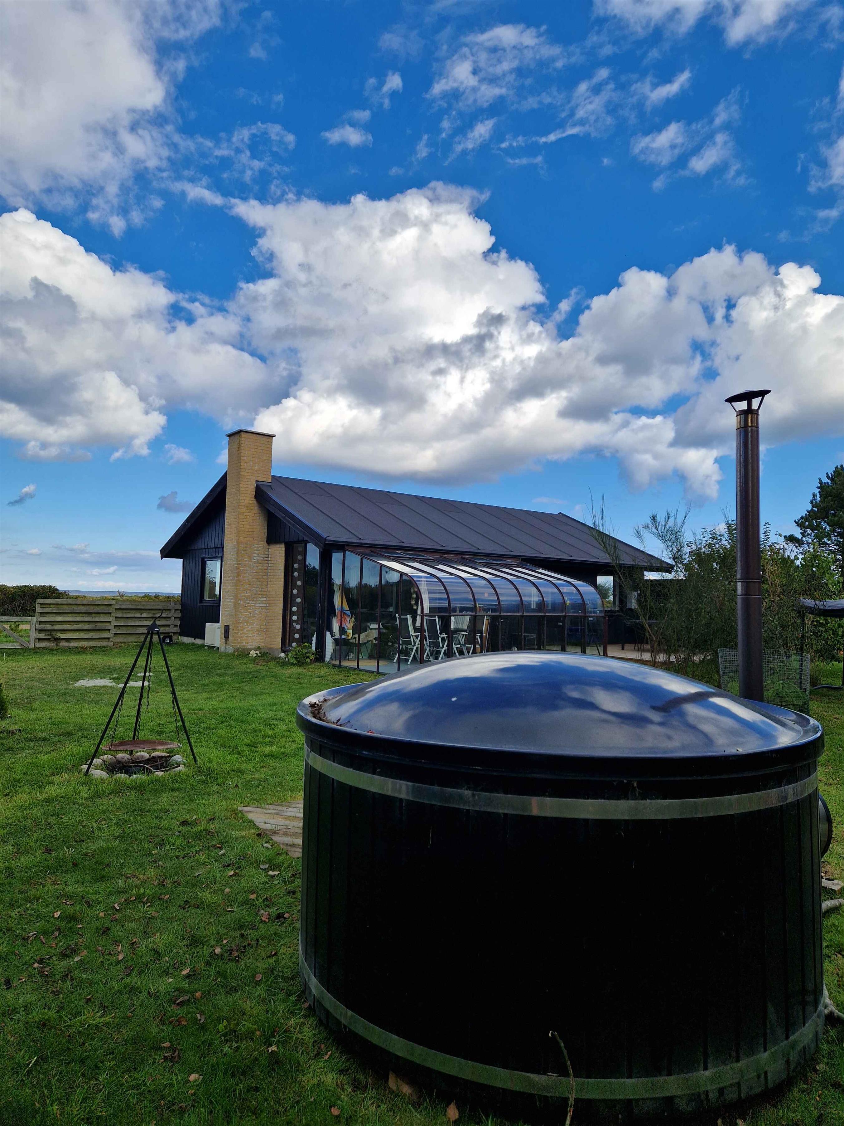 Newly renovated holiday home of 87 m² with 3 bedrooms and space for 6 guests. The 17 m² sunroom extends the season, and from the house there is a sea view. Just 50 metres from the door lies the Kattegat – perfect for a morning swim or a paddle on one of the three available paddleboards. The house is allergy-friendly and pets are strictly prohibited. The property invites outdoor living. Enjoy a warm soak in the hot tub with sea view, light the fire pit, or rinse off under the outdoor shower. The garden offers a trampoline, hammocks, lawn games and bicycles, providing space for both play and relaxation. The area is characterised by rugged coastal nature with beaches and rocky shores, ideal for swimming, fishing, kayaking and snorkelling. By bike you can follow small roads through open landscapes, past farm shops and cosy harbours. Nearby nature reserves offer unique birdwatching, and on clear days you can see all the way to Zealand’s west coast. Indoors, air conditioning ensures a pleasant climate year-round. The open-plan kitchen and living area create a great space for socialising, while large windows keep the sea in sight. Here you’ll find a combination of modern comfort, beautiful nature and a unique location close to the water.
