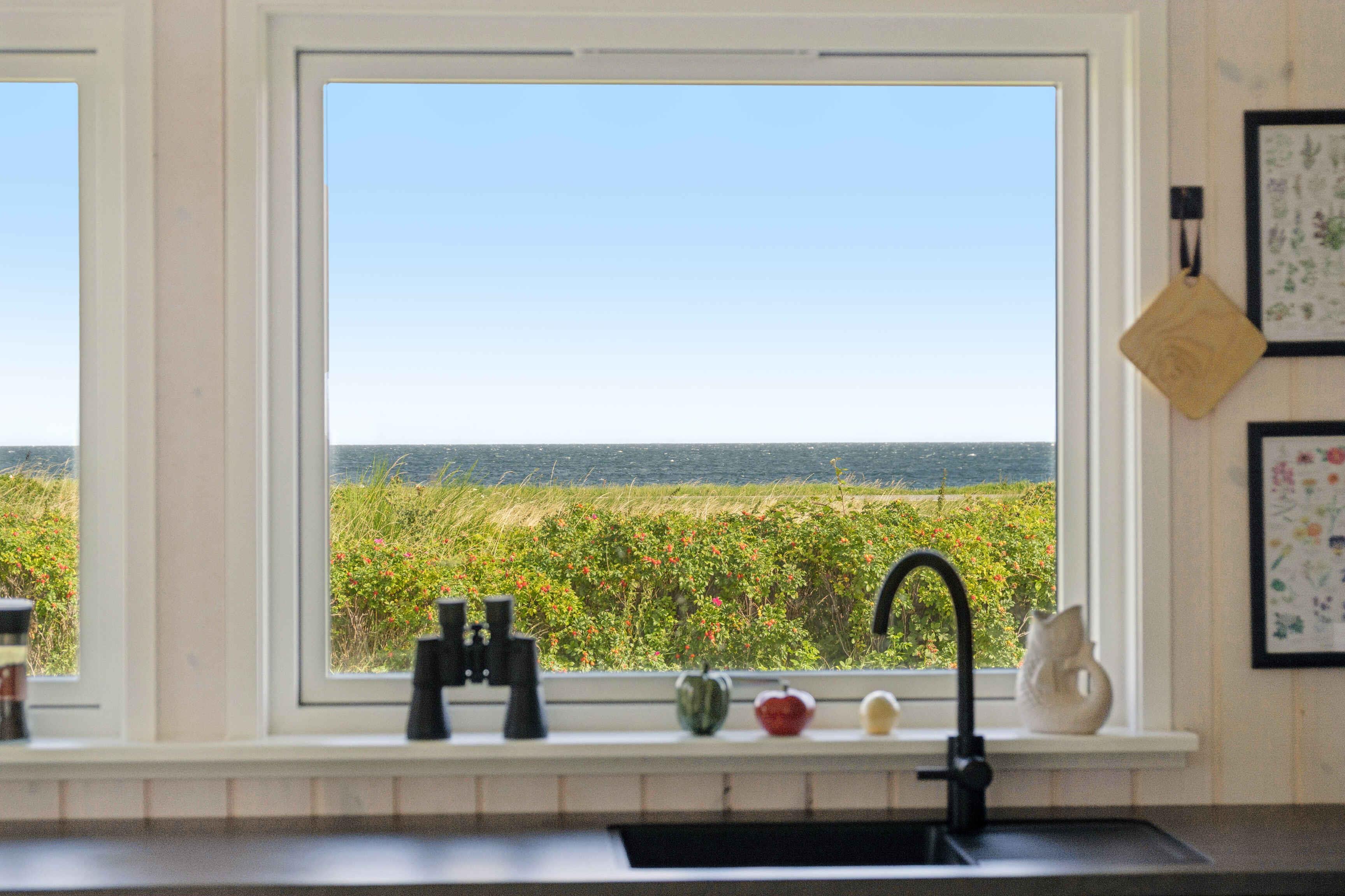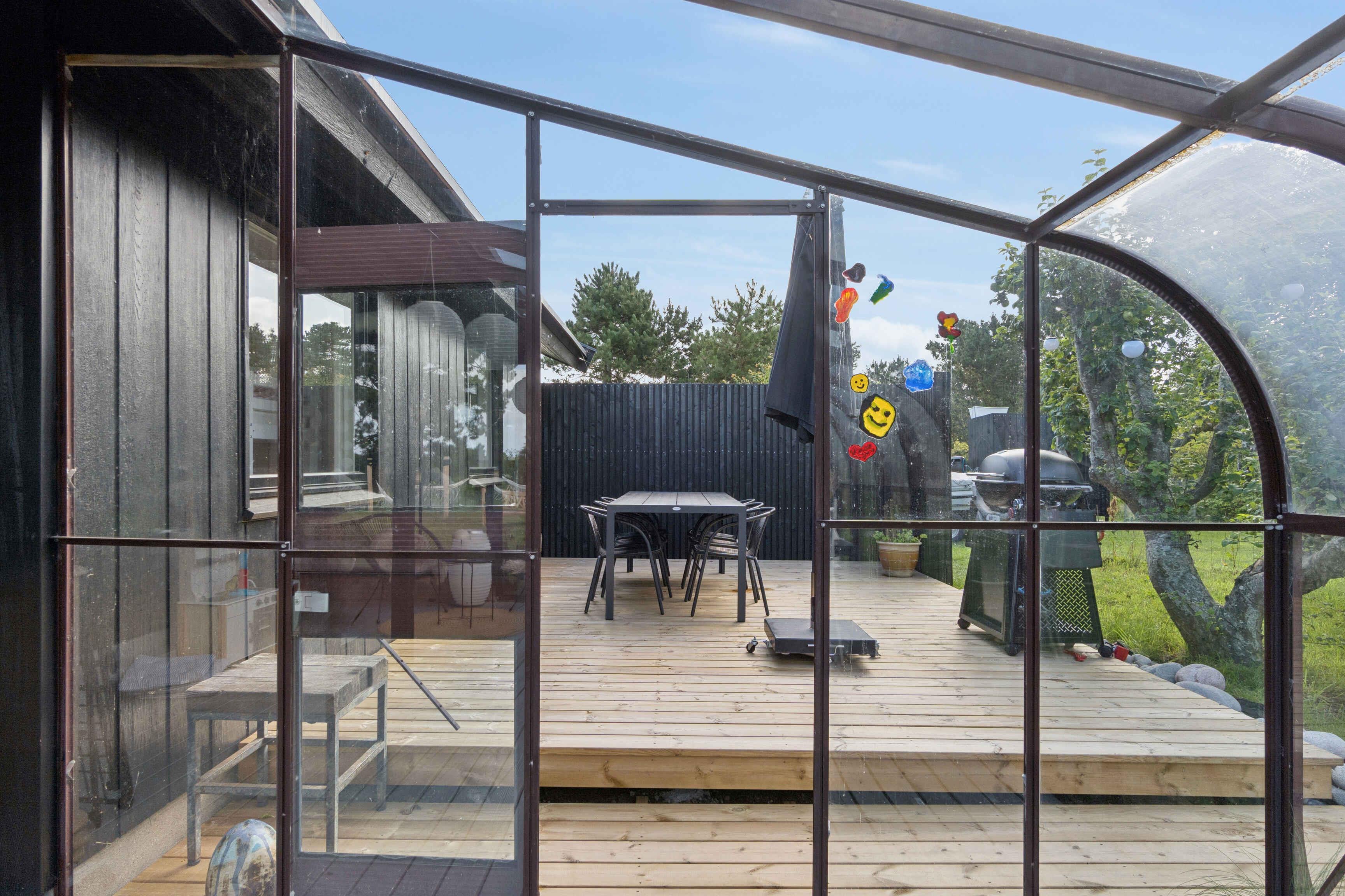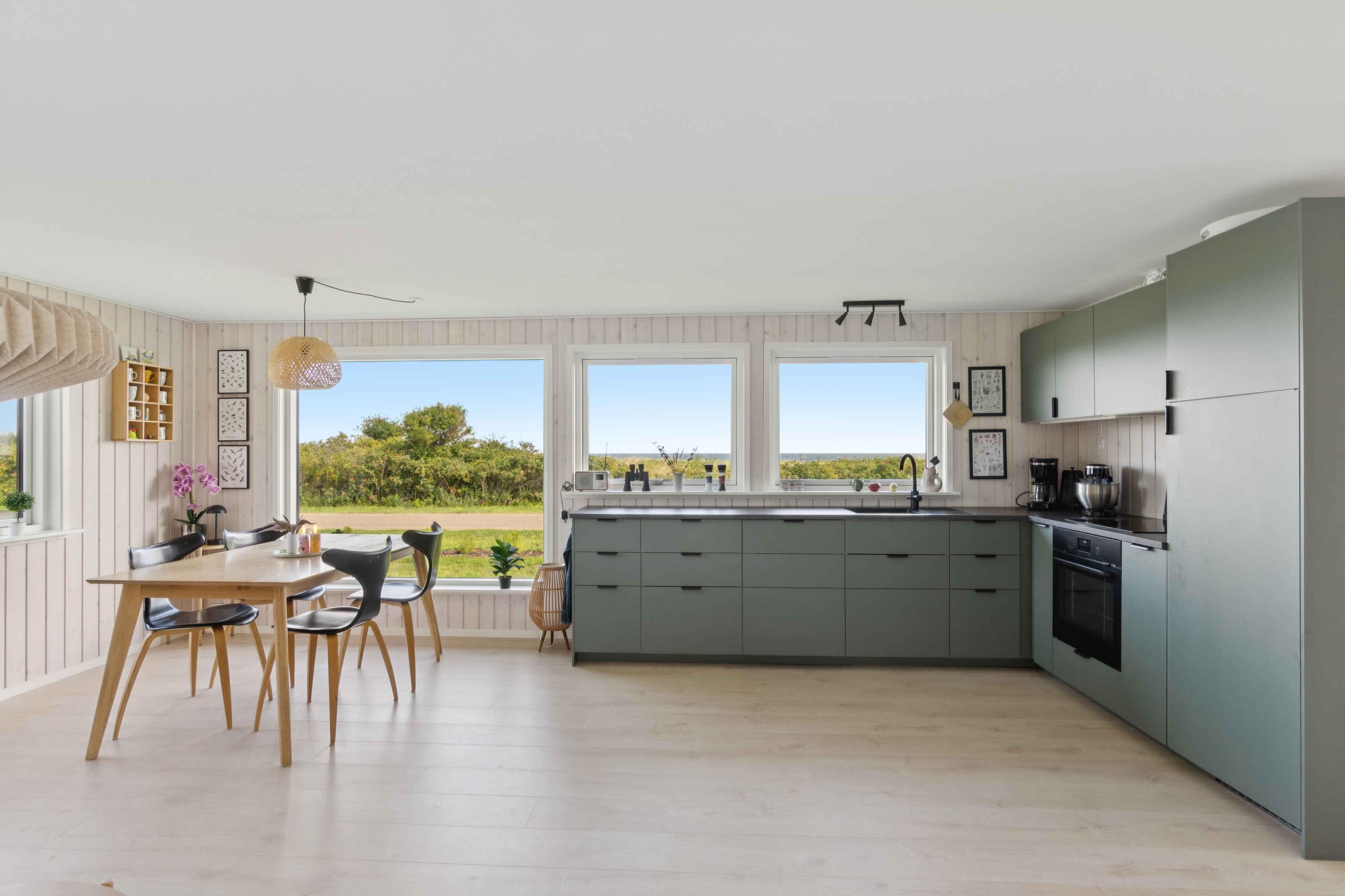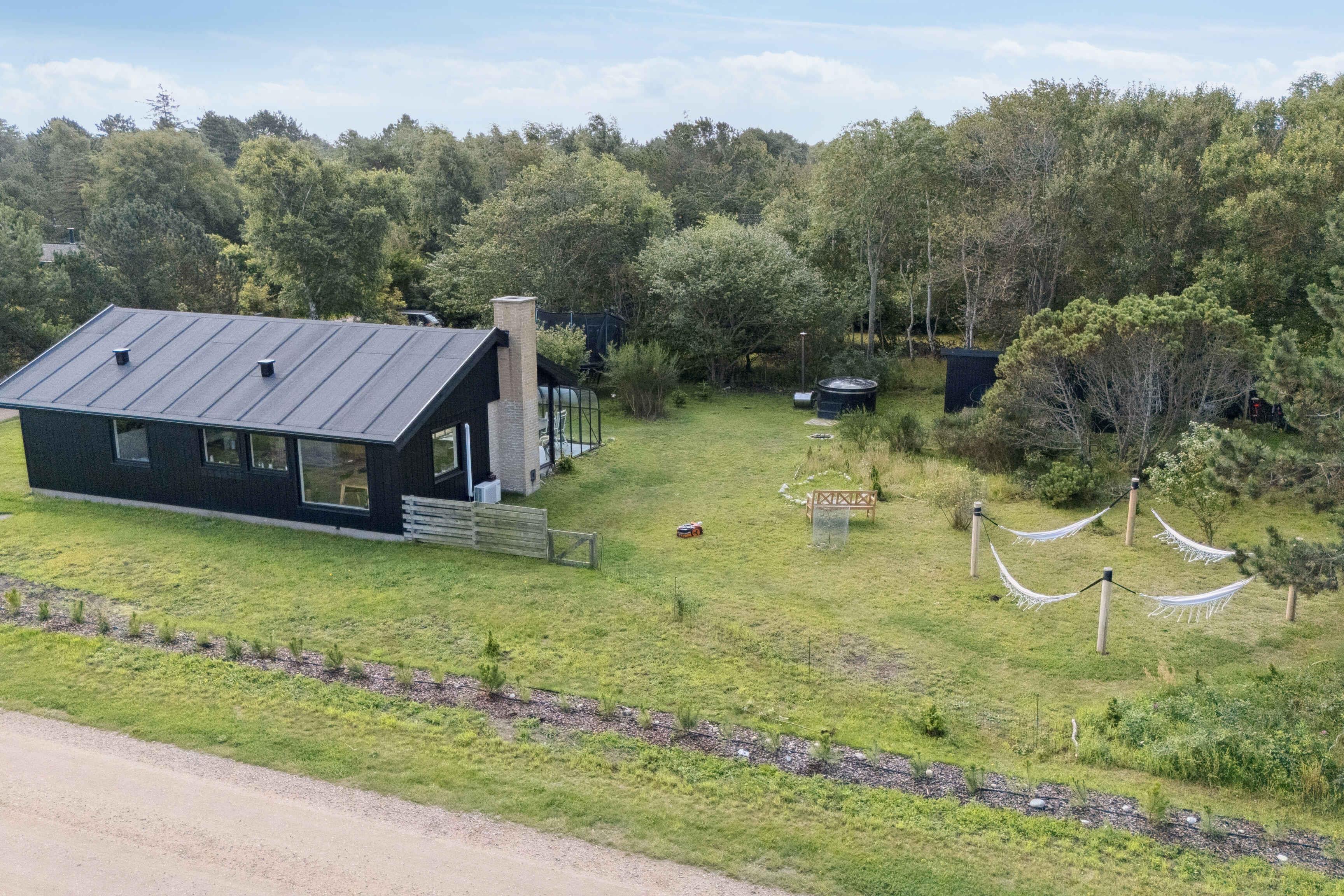 Newly renovated holiday home of 87 m² with 3 bedrooms and space for 6 guests. The 17 m² sunroom extends the season, and from the house there is a sea view. Just 50 metres from the door lies the Kattegat – perfect for a morning swim or a paddle on one of the three available paddleboards. The house is allergy-friendly and pets are strictly prohibited. The property invites outdoor living. Enjoy a warm soak in the hot tub with sea view, light the fire pit, or rinse off under the outdoor shower. The garden offers a trampoline, hammocks, lawn games and bicycles, providing space for both play and relaxation. The area is characterised by rugged coastal nature with beaches and rocky shores, ideal for swimming, fishing, kayaking and snorkelling. By bike you can follow small roads through open landscapes, past farm shops and cosy harbours. Nearby nature reserves offer unique birdwatching, and on clear days you can see all the way to Zealand’s west coast. Indoors, air conditioning ensures a pleasant climate year-round. The open-plan kitchen and living area create a great space for socialising, while large windows keep the sea in sight. Here you’ll find a combination of modern comfort, beautiful nature and a unique location close to the water.