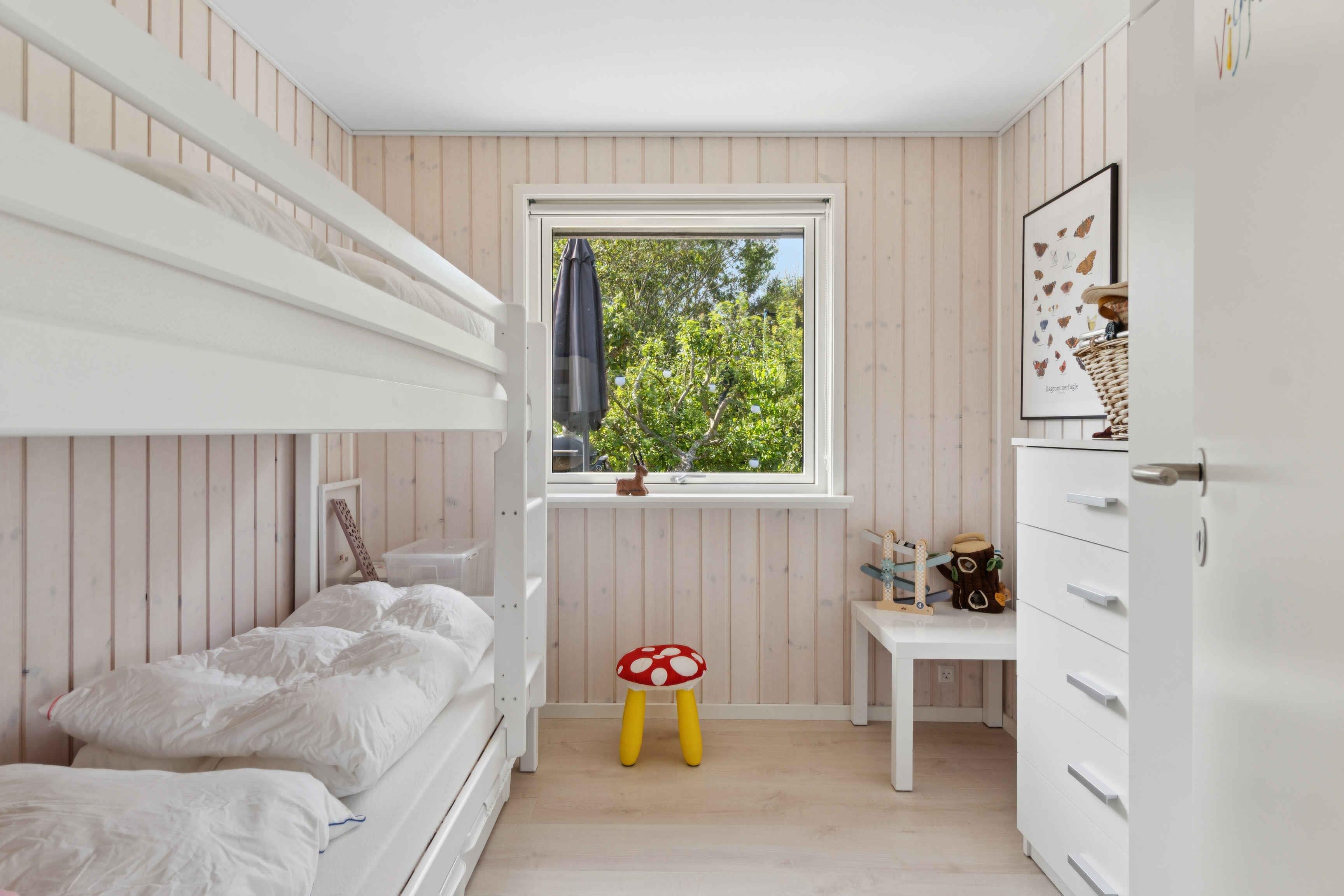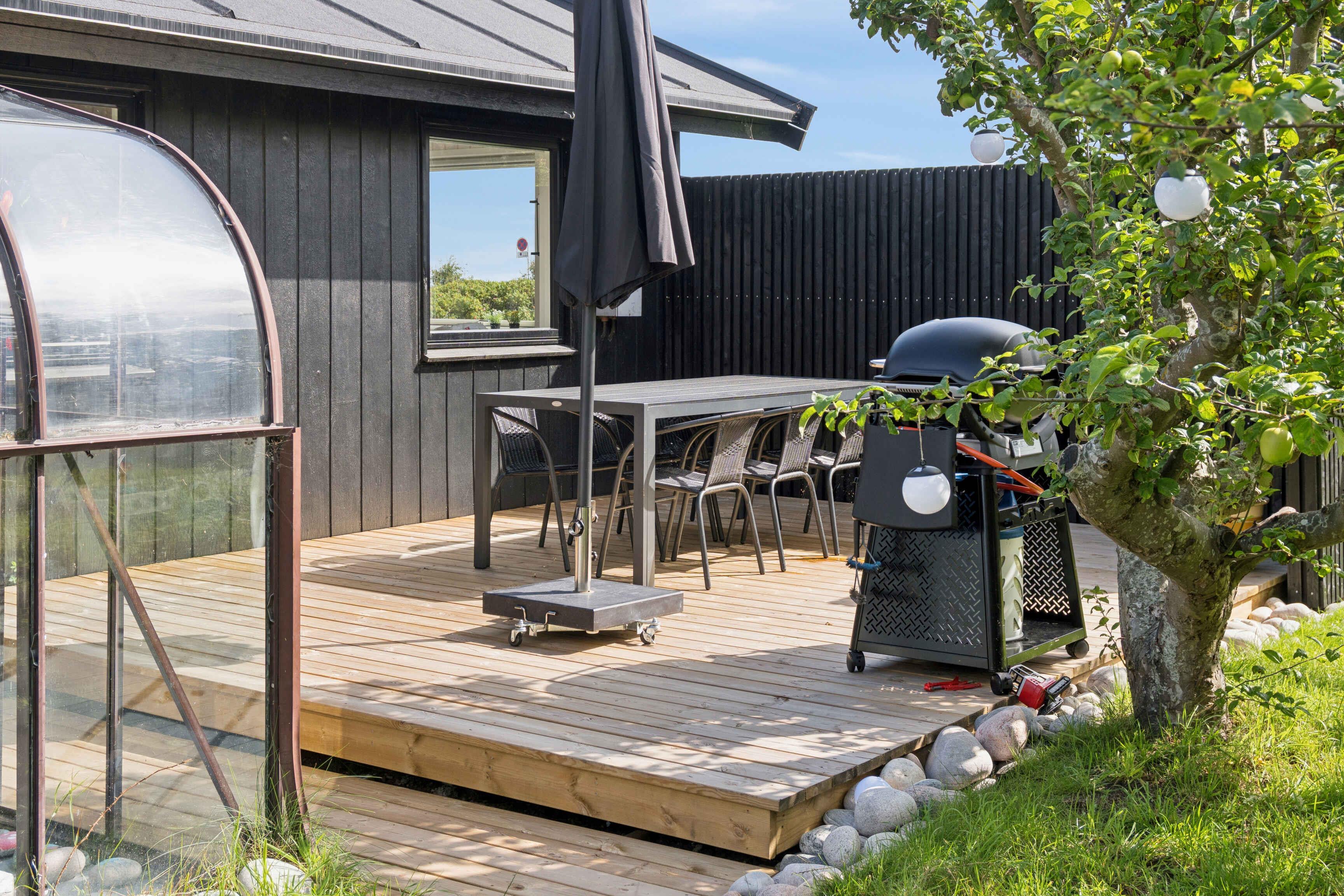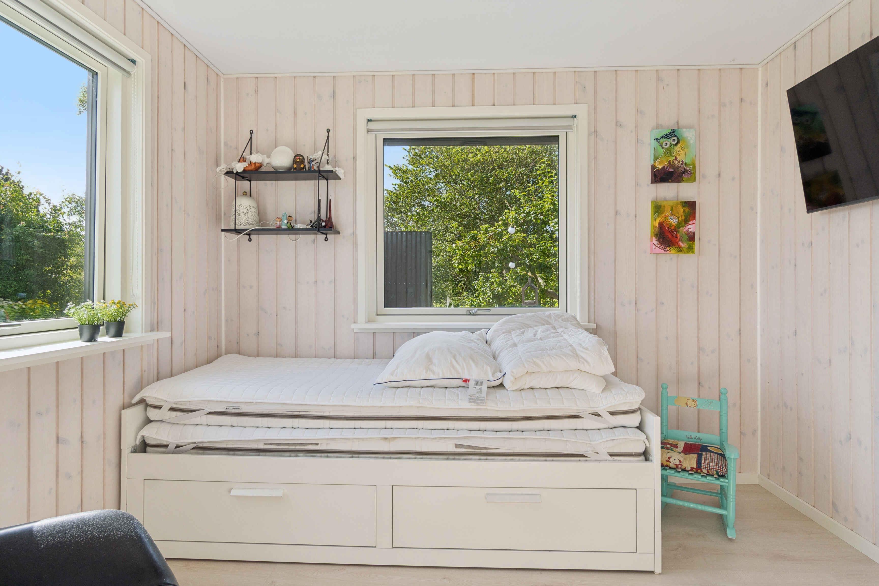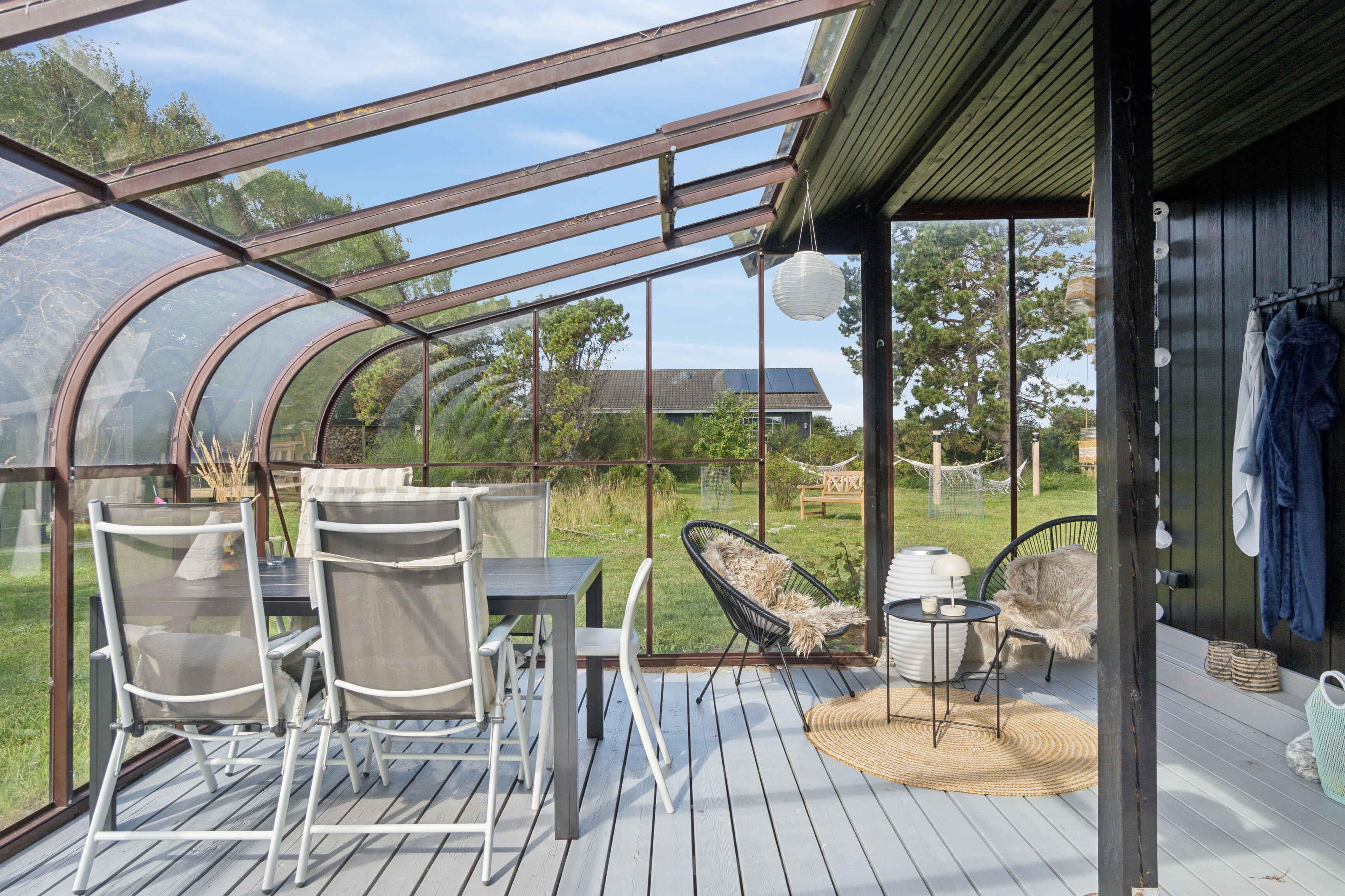 Newly renovated holiday home of 87 m² with 3 bedrooms and space for 6 guests. The 17 m² sunroom extends the season, and from the house there is a sea view. Just 50 metres from the door lies the Kattegat – perfect for a morning swim or a paddle on one of the three available paddleboards. The house is allergy-friendly and pets are strictly prohibited. The property invites outdoor living. Enjoy a warm soak in the hot tub with sea view, light the fire pit, or rinse off under the outdoor shower. The garden offers a trampoline, hammocks, lawn games and bicycles, providing space for both play and relaxation. The area is characterised by rugged coastal nature with beaches and rocky shores, ideal for swimming, fishing, kayaking and snorkelling. By bike you can follow small roads through open landscapes, past farm shops and cosy harbours. Nearby nature reserves offer unique birdwatching, and on clear days you can see all the way to Zealand’s west coast. Indoors, air conditioning ensures a pleasant climate year-round. The open-plan kitchen and living area create a great space for socialising, while large windows keep the sea in sight. Here you’ll find a combination of modern comfort, beautiful nature and a unique location close to the water.