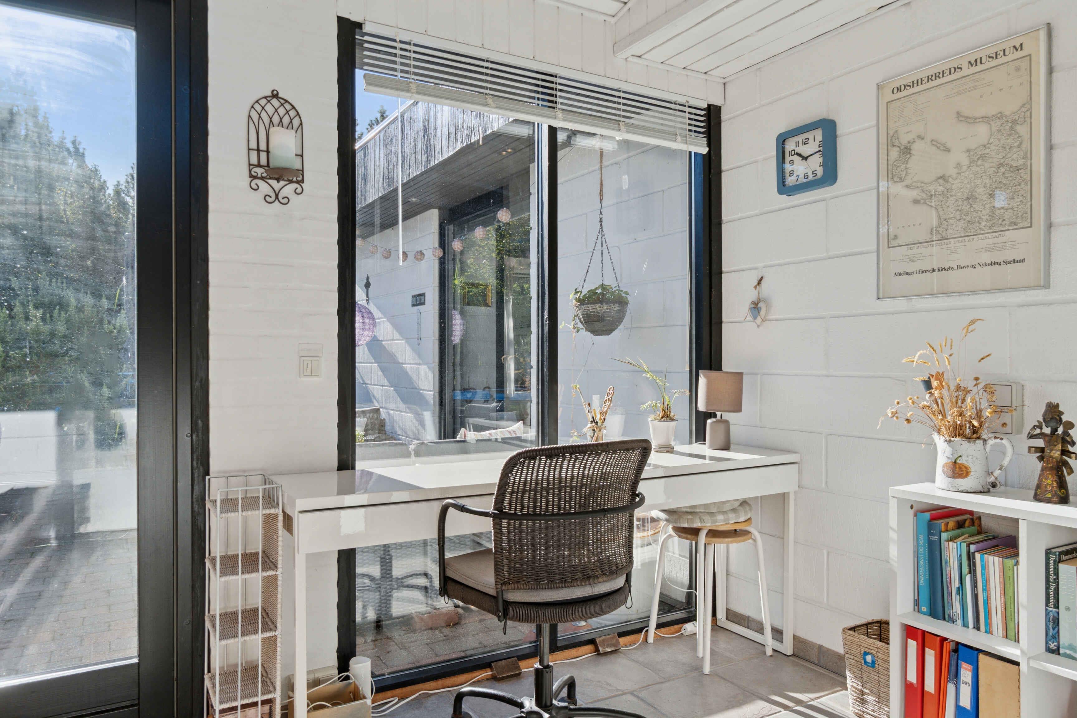 The first thing that catches your eye here is the pool. Framed by a beautiful wooden deck and completely secluded from neighbours, it’s the heart of the holiday – a place for refreshing swims, lazy hours in the sun lounger, and peaceful moments under the open sky. The pool connects directly to the house via the terrace, where the living room opens towards the sun. The horseshoe-shaped building provides shelter, allowing outdoor life to unfold undisturbed. Indoors and outdoors blend naturally – every day spent in harmony with the light. The pool is not heated but usually reaches around 24°C during the summer months. However, this cannot be guaranteed, as it depends on the weather. Inside, 101 m² await with three bedrooms and four sleeping spaces. One bedroom has two single beds, while the other two each have a single bed that can be extended to 140 cm wide. One of the rooms with a single bed has a curtain instead of a door. Two bright living rooms, both furnished comfortably, provide space for relaxation and togetherness. Classic brick-tiled floors underline the home’s unique atmosphere. Outside, there are several inviting areas. The northwest-facing, covered terrace with a barbecue invites long evenings with good food and conversation. The orangery creates an extra outdoor space – furnished for comfort and ideal for extending the season, regardless of the weather. Just 600 metres from the house lies the beach facing south towards Sejerø Bay – child-friendly and with a brand-new bathing jetty. Here you can enjoy the day’s last rays of sun and the sunset over the bay. Walking north, only 800 metres away, you reach the Kattegat and the sunrise over the sea – perfect for a morning swim or a refreshing walk. All of Odden is a true paradise for anglers. The area offers great fishing spots directly from the shore, and organised trips are available for both beginners and experienced fishers. At Odden Harbour, life buzzes with small boats and freshly caught fish. Here you’ll find Odden Fisk, where visitors queue in high season to buy fresh fish and smoked products directly from production. The place also hosts a popular lunch and dinner restaurant serving dishes made from the day’s catch, with views of the harbour. Only 500 metres from the house, on Gnibenvej, lies the acclaimed TIR Bakery – one of the area’s most popular destinations. The bakery is based on a simple yet ambitious concept: baking with biodynamic, organic, and freshly milled grains. In high season, people queue before opening to get their hands on the crisp sourdough bread and sweet temptations. The area around Sjællands Odde offers great nature experiences. The unique Geopark Odsherred, Denmark’s first UNESCO geopark, tells the story of the Ice Age-shaped landscape and invites you to explore it by foot or by bike through hills, meadows, and coastline. A short trip into Odsherred offers galleries, local specialities, and culture. Everything is nearby – but best enjoyed at a relaxed pace. Note: Not for commercial rental.