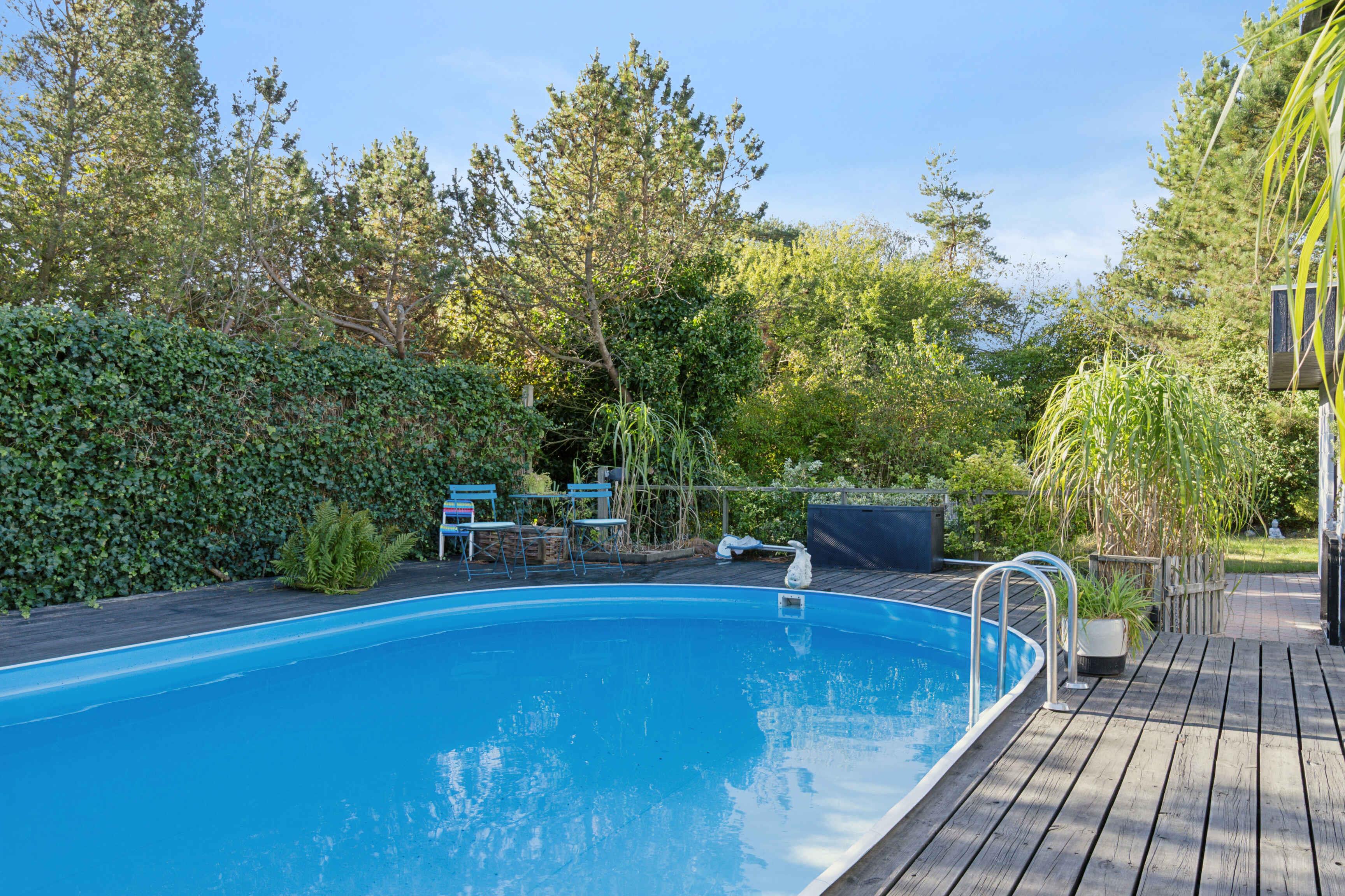 Pool with sheltered terrace forms the center of the holiday home. 101 m² with 3 bedrooms, 2 living rooms and cozy décor. Several terraces, orangery and only 600 m to child-friendly beach and nature. Perfect for peace, play and experiences.
