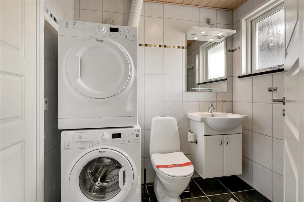 Ihnen stehen in diesem prächtigen Ferienhaus zwei Bäder zur Verfügung, in denen sich ebenfalls die schöne Farbgestaltung der anderen Räume wiederfindet. Eines der beiden Bäder ist mit einer Waschsäule, bestehend aus Waschmaschine und Wäschetrockner, ausgestattet.