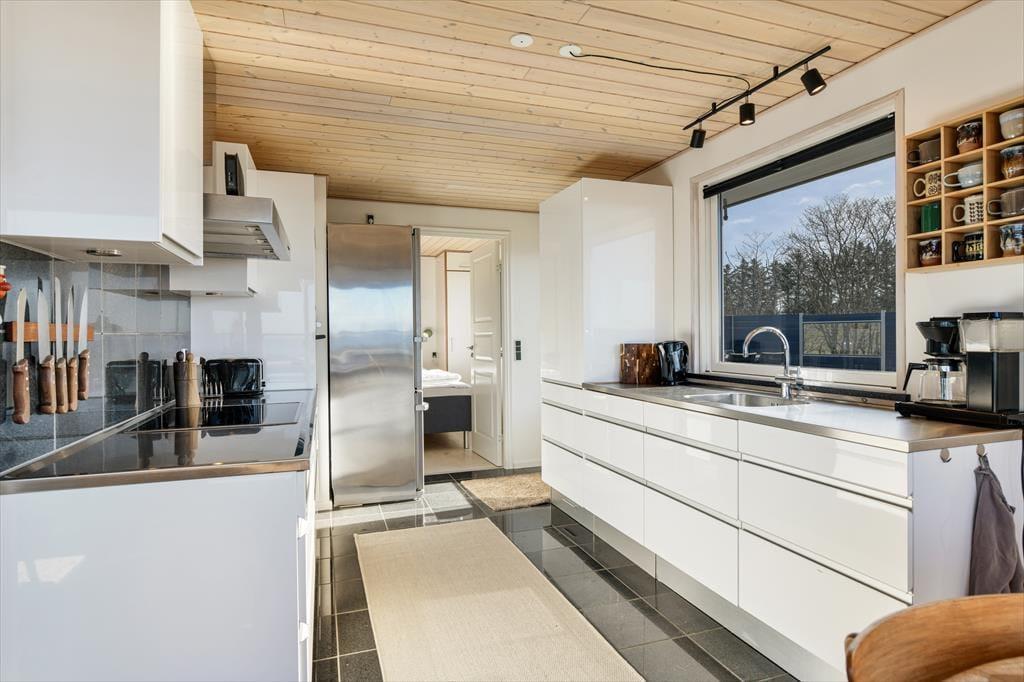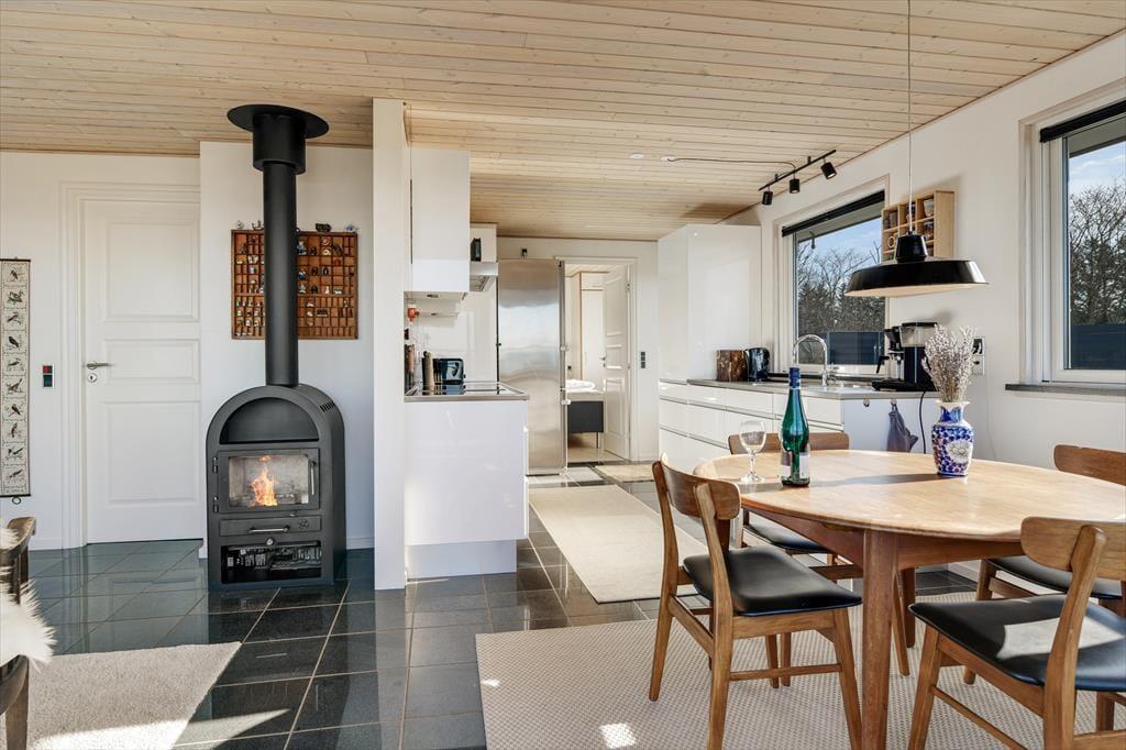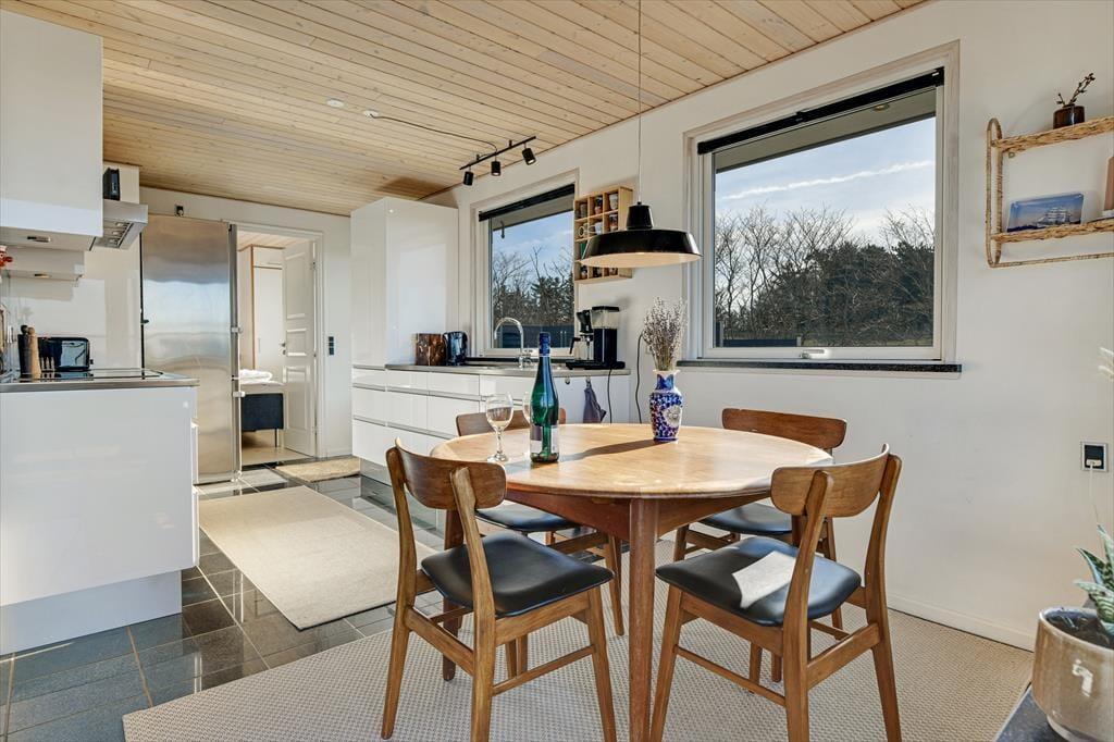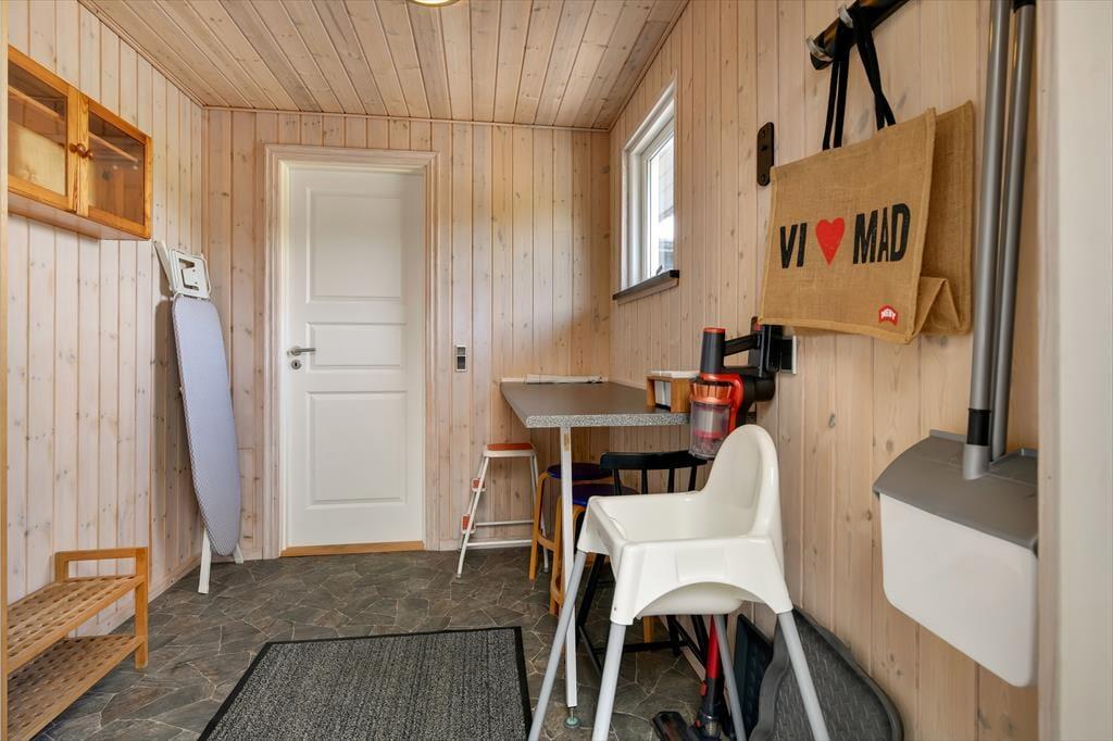 Bei diesem Ferienhaus verbringen Sie Ihren Urlaub in einem einzigartigen und unverwechselbaren Naturgebiet, das durch Heide, Wälder und weite, offene Flächen geprägt ist. Sjelborg liegt an der Ho Bucht und erwartet Sie mit einem schönen Strand an dem auch der sogenannte Marbækstien vorbeiläuft - ein wunderschöner Wanderweg auf dem Sie entlang des Wassers bis zur Mündung des Flusses Varde Å gelangen. Am Ende des Weges können Sie den Mythuegård besuchen, auf dem Ihnen viel Wissenswertes über die Geschichte und die Natur der Gegend vermittelt wird. Die Ausstellung “Hvor å, hav og mennesker mødes” ist täglich von 10:00 bis 12:00 Uhr geöffnet. Der Eintritt ist kostenlos. Wenn Sie Ihren Weg noch weiter fortsetzen möchten, erreichen Sie Hjerting, einen Ort mit einer schönen Strandpromenade und Bademöglichkeiten. In Hjerting befinden sich außerdem ein Badehotel, ein Eiskiosk und mehrere kleiner Geschäfte. Die Waldgebiete von Sjelborg und Marbæk gehen nahezu fließend ineinander über und empfangen Sie mit zahlreichen markierten Spazierwegen. Für kulinarische Erlebnisse sorgt das Restaurant Sjelborg im gleichnamigen Ort. Auf der guten Karte des Restaurants werden Ihnen verschiedene köstliche Menüs angeboten. Golfbegeisterte Urlauber dürfen sich in der Nähe von Sjelborg über die 18-Loch-Golfplätze des Breinholtgård Golfklubs und des Esbjerg Golfklubs freuen. Beide Clubs verfügen über ein Restaurant und bieten Ihnen eine fantastische Aussicht. Für eine Tour an die offene Nordsee bietet sich der rund 30 Minuten entfernt gelegene Badeort Blåvand an. In Blåvand laden gute Restaurants, Cafés und eine Vielzahl ganzjährig geöffneter Boutiquen und Läden zum Bummeln und Verweilen ein. Einer der allerbesten Strandabschnitte der Westküste erstreckt sich über rund 15 Kilometer von Skallingen im Süden bis zum Leuchtturm von Blåvand im Norden. Einen Ausflug in die Stadt Esbjerg möchten wir Ihnen ebenfalls ans Herz legen. Das erste was Sie auf Ihrem Weg in die Stadt sehen werden, sind die großen Skulpturen “Mennesket ved Havet” von Svend Wiig Hansen. Die bekannte Skulptur besteht aus vier imposanten Menschen, die am Strand sitzen und auf das Meer blicken. Genau gegenüber der großen Skulptur befindet sich das interessante “Esbjerg Fiskeri- og Søfartsmuseum” mit wechselnden Ausstellungen rund um das Meer und die Seefahrt und der Möglichkeit bei der täglichen Seehundfütterung zuzuschauen. Das Stadtzentrum bietet mit seinen unzähligen Geschäften, dem Kunstmuseet, dem Musikhuset und dem Veranstaltungszentrum Tobbaken etwas für jeden Geschmack. Die fünftgrößte Stadt des Königreichs überzeugt außerdem mit einer sehr guten Auswahl an Restaurants und jeder erdenklichen Art von Unterhaltung.