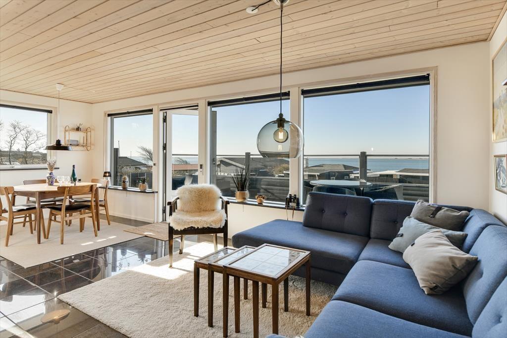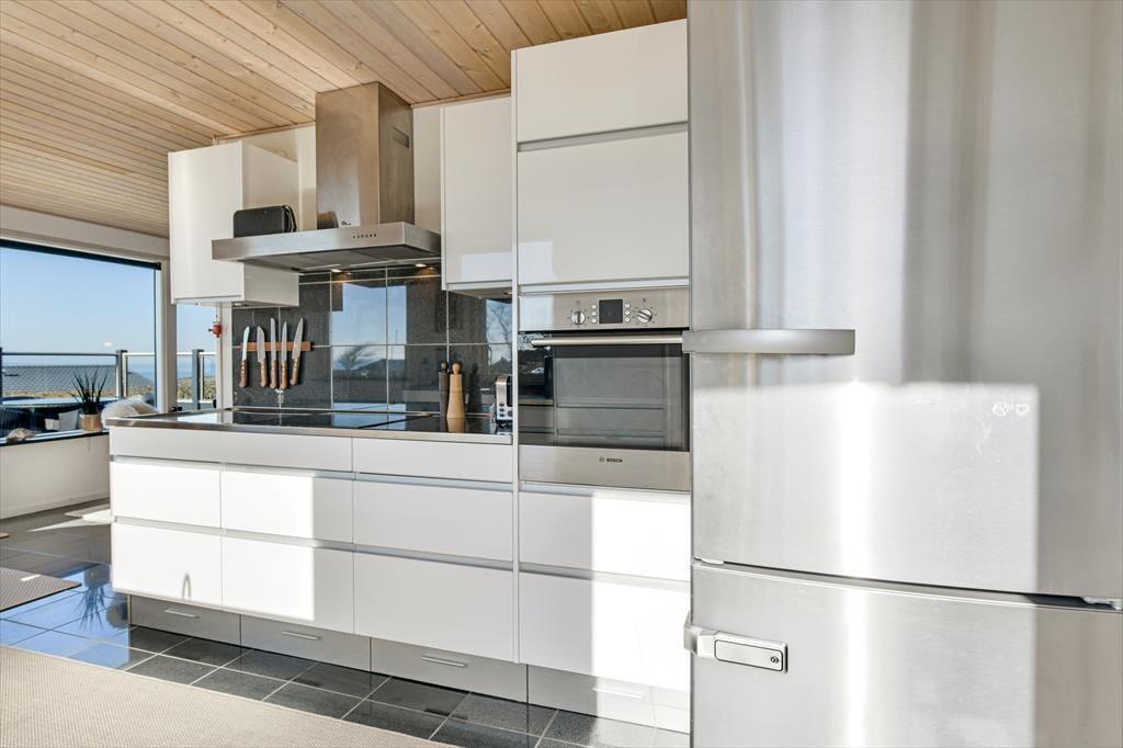 Das Haus besticht mit seiner geschmackvollen Einrichtung im nordischen Stil. Vom offen kombinierten Küchen-, Wohn- und Essbereich mit großen Fensterfronten eröffnet sich Ihnen ein fantastischer Ausblick über das Wasser. Die komplett weiße Küche verfügt über sämtliche modernen Küchengroßgeräte. Die attraktive Farbwahl des Wohnraums, in dem weiße und schwarze Elemente überwiegen, wird durch einige kleine, mintgrüne Akzente ansprechend abgerundet. Hier können Sie es sich auf den Sofas vor dem romantisch knisternden Kamin in aller Ruhe gemütlich machen und beim Ausblick über die gesamte Ho Bucht wunderbar entspannen.