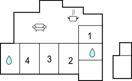Badezimmer (nr. 1) - WC. Warmes und kaltes Wasser. Dusche