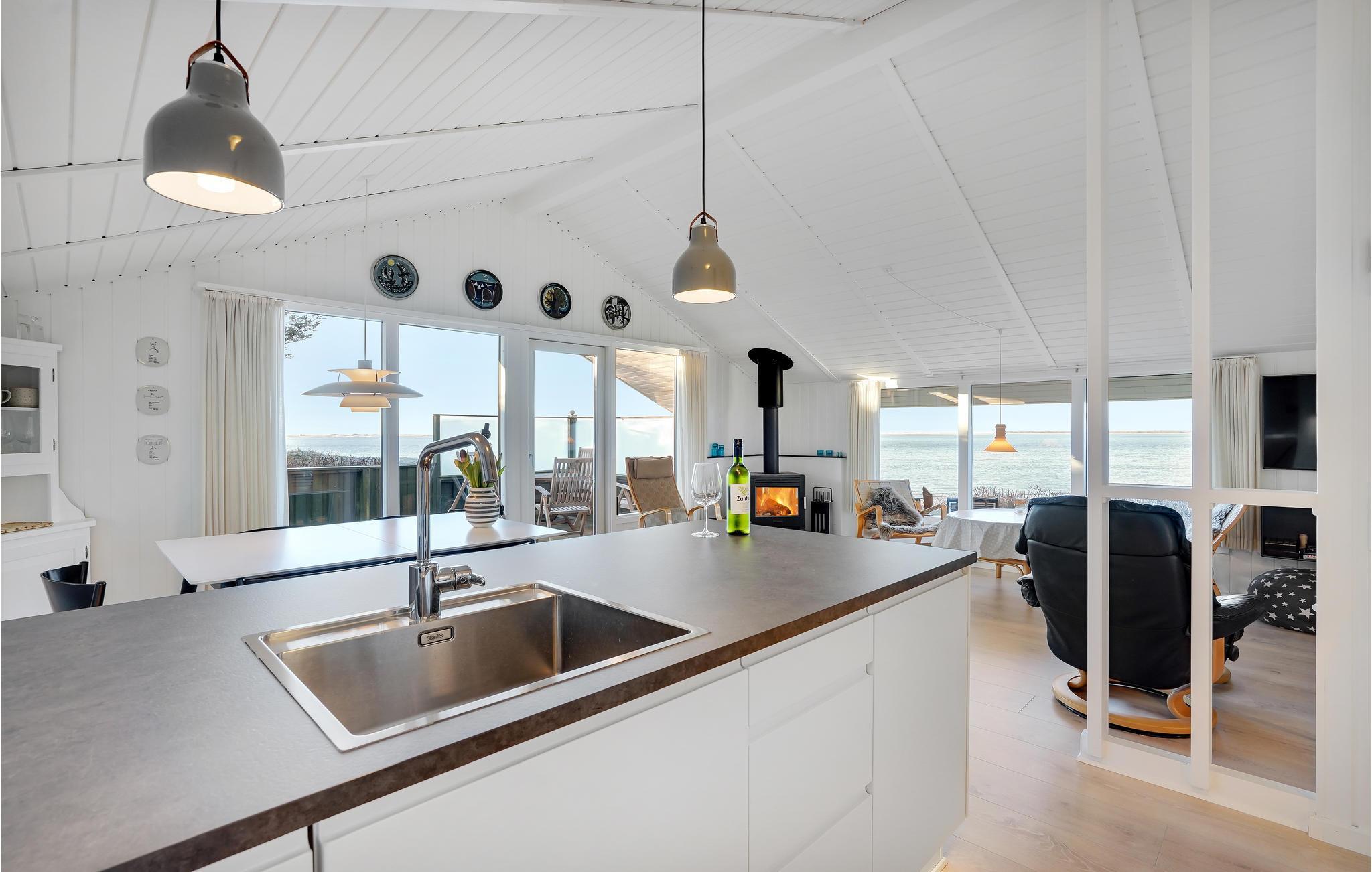 Dieses idyllisch gelegene und 2021 modernisierte Ferienhaus mit Platz für bis zu 5 Personen nennt eine wirklich traumhafte Aussicht sein eigen, die Sie sich nicht entgehen lassen sollten! Durch großflächige Fenster blicken Sie aus dem Wohnzimmer auf das Meer, während Sie die Wärme des prasselnden Feuers im Kaminofen genießen – bei diesem Anblick stellt sich die Urlaubsentspannung von selbst ein.