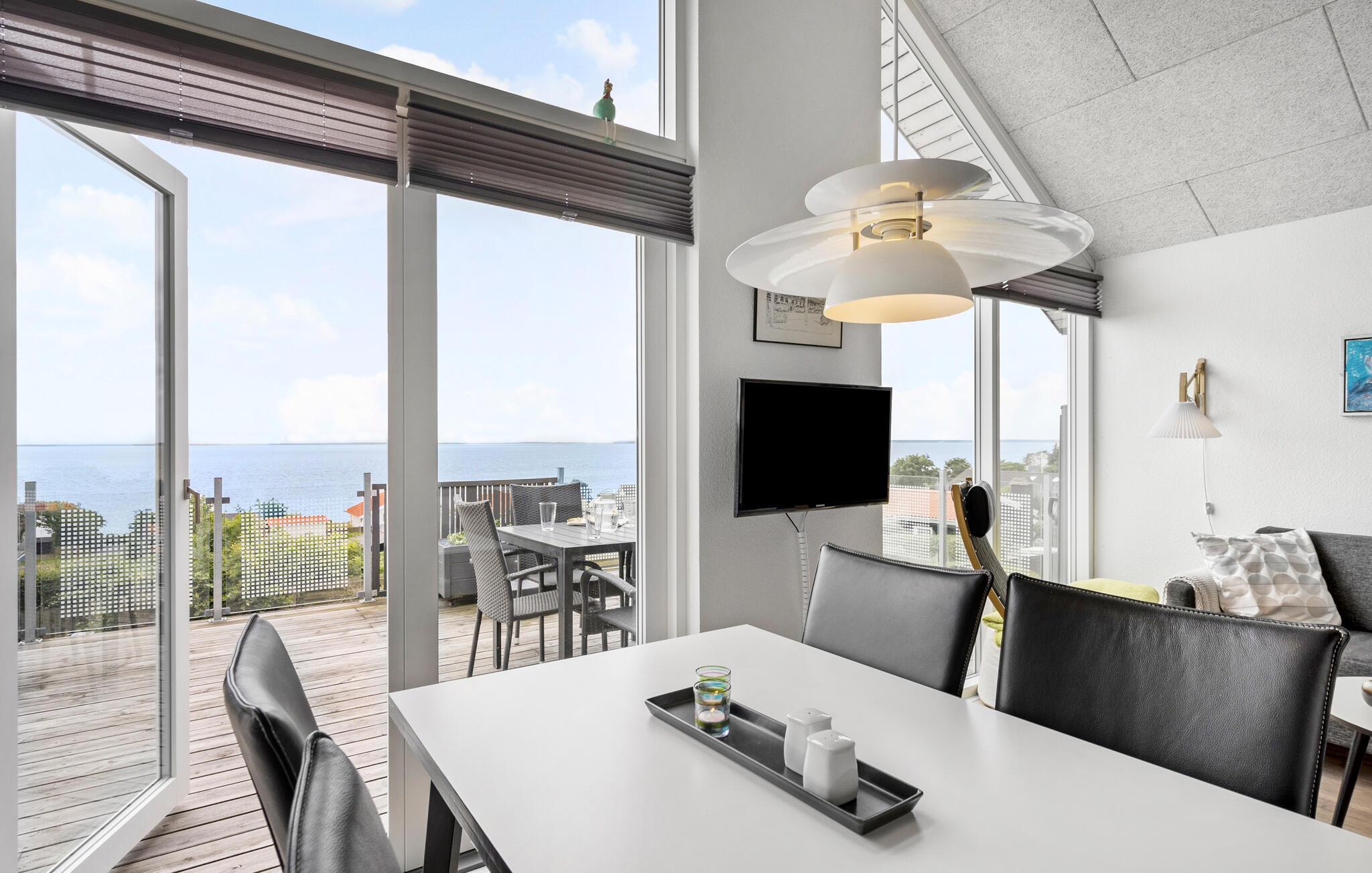 Freuen Sie sich auf erholsame und romantische Tage in diesem schönen Ferienhaus. Die gemütliche Einrichtung schafft eine einladende Atmosphäre, die durch helle Farben, liebevoller Dekoration und großen Fenstern, die viel Tageslicht hereinlassen, verstärkt wird. Der offene Wohnbereich lädt Sie zum Entspannen ein, und die gut ausgestattete Küche bietet Ihnen alles, was Sie für gemeinsame Kochabende benötigen. Die Lage direkt am Meer bietet Ihnen einen atemberaubenden Blick, den Sie von der großen Terrasse aus, mit einem Glas Wein am Abend genießen können.
