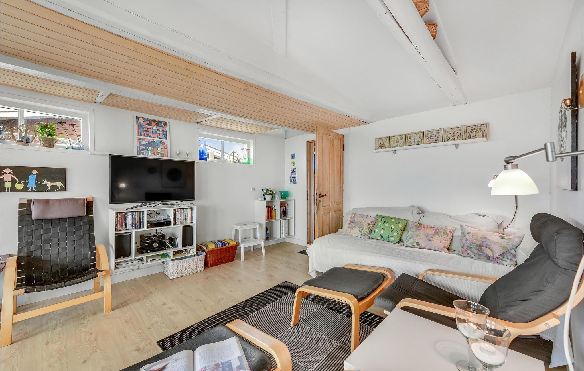 Sehr gemütliches Ferienhaus mit persönlicher Einrichtung. Die helle Wohnküche hat freigelegte Deckenbalken. Ein Haus in einzigartiger Lage in der Ho-Bucht und deshalb genießt es auch eine Panoramaaussicht auf das Meer. Das Grundstück ist sehr uneben. In der Nachbarschaft gibt es viele kleine Ferienhäuser mit einem persönlichen Stil. Alles haben eine schöne Aussicht auf das Meer und die Schifffahrtslinie, die zum Hafen von Esbjerg führt. Ein wirklich einzigartiges Ferienhaus in einem behaglichen Stil und nicht weit zu Fuß entfernt vom besten Eisgeschäft des Gebietes sowie vom Hjerting Badehotel. In der Ho-Bucht können Sie auch but schwimmen.