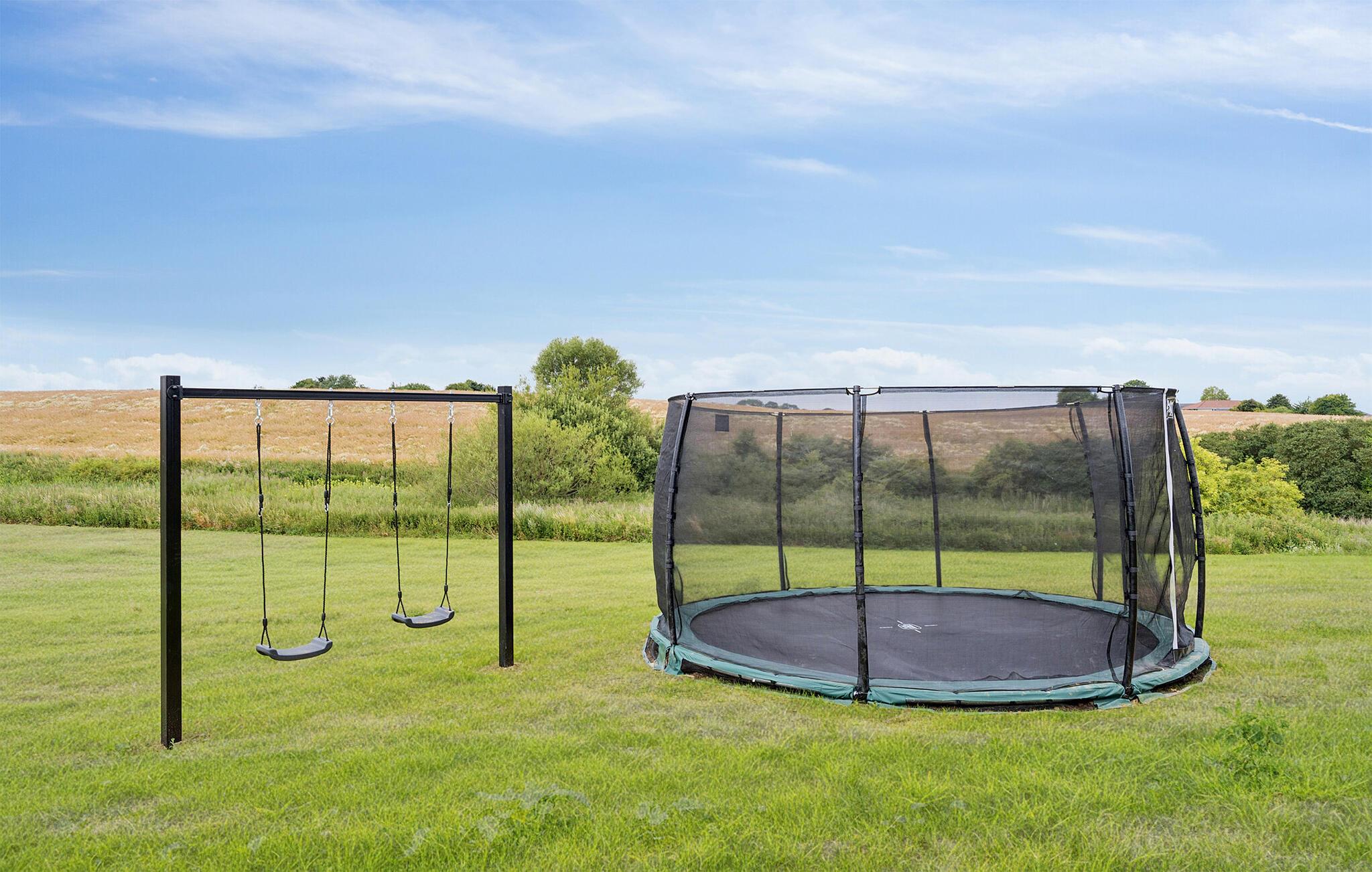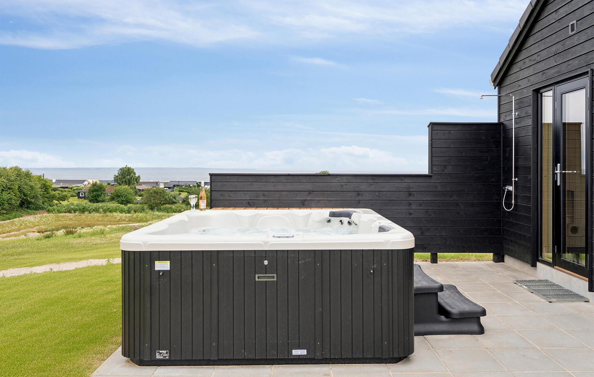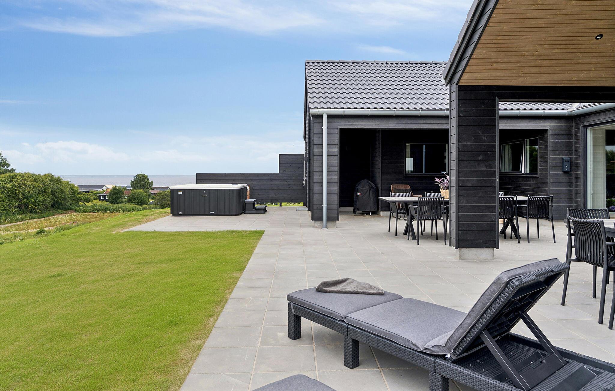 Verbringen Sie viel Zeit im Freien, das Grundstück mit Meerblick bietet Platz zum Spielen und Entspannen zum Beispiel im Outdoor-Spa. Genießen Sie auf der Terrasse in vollen Zügen die Sonne, während Ihre Kinder buddeln oder auf dem Trampolin in luftige Höhen springen, und lassen Sie den Tag am Grill ausklingen.