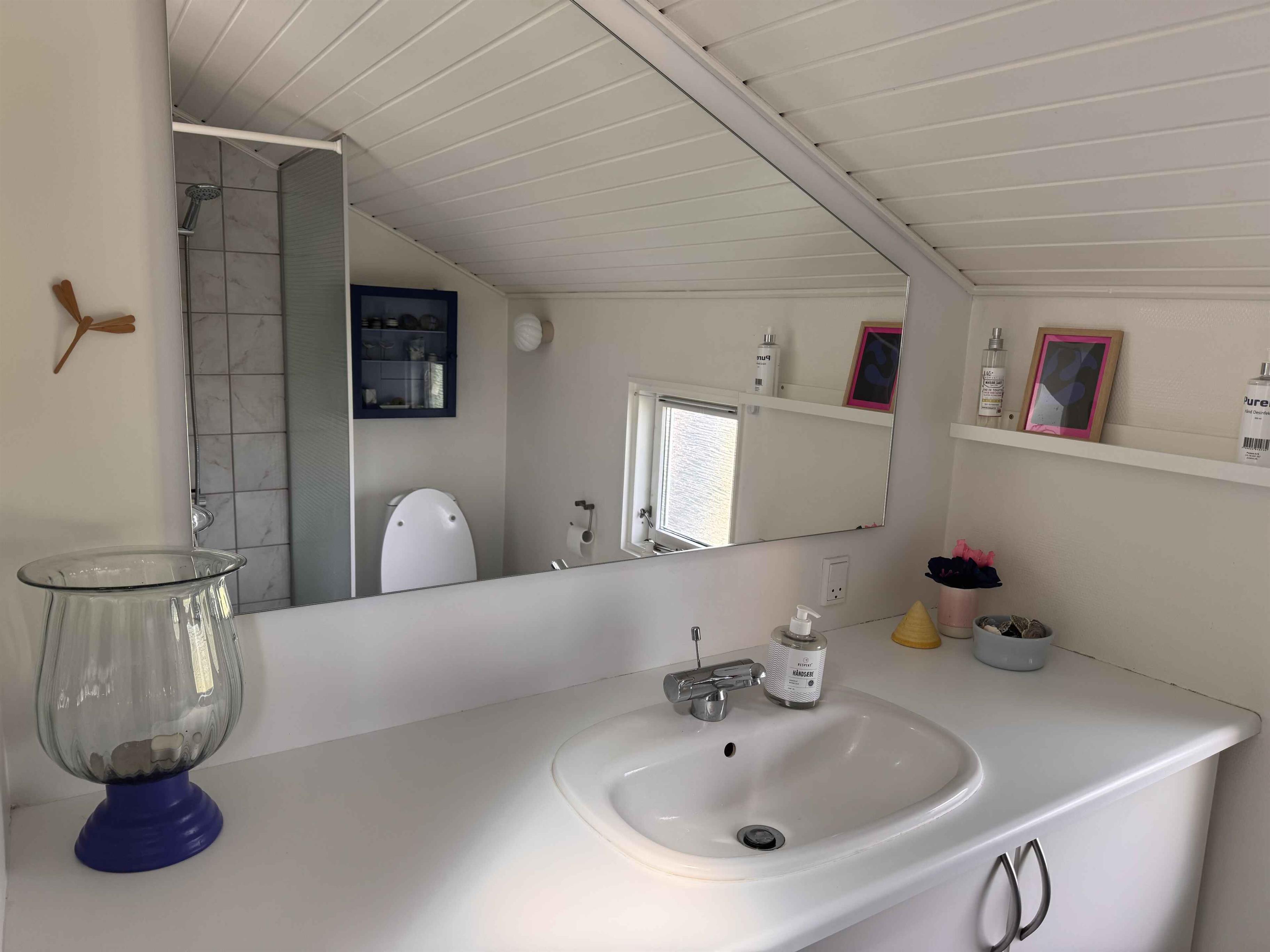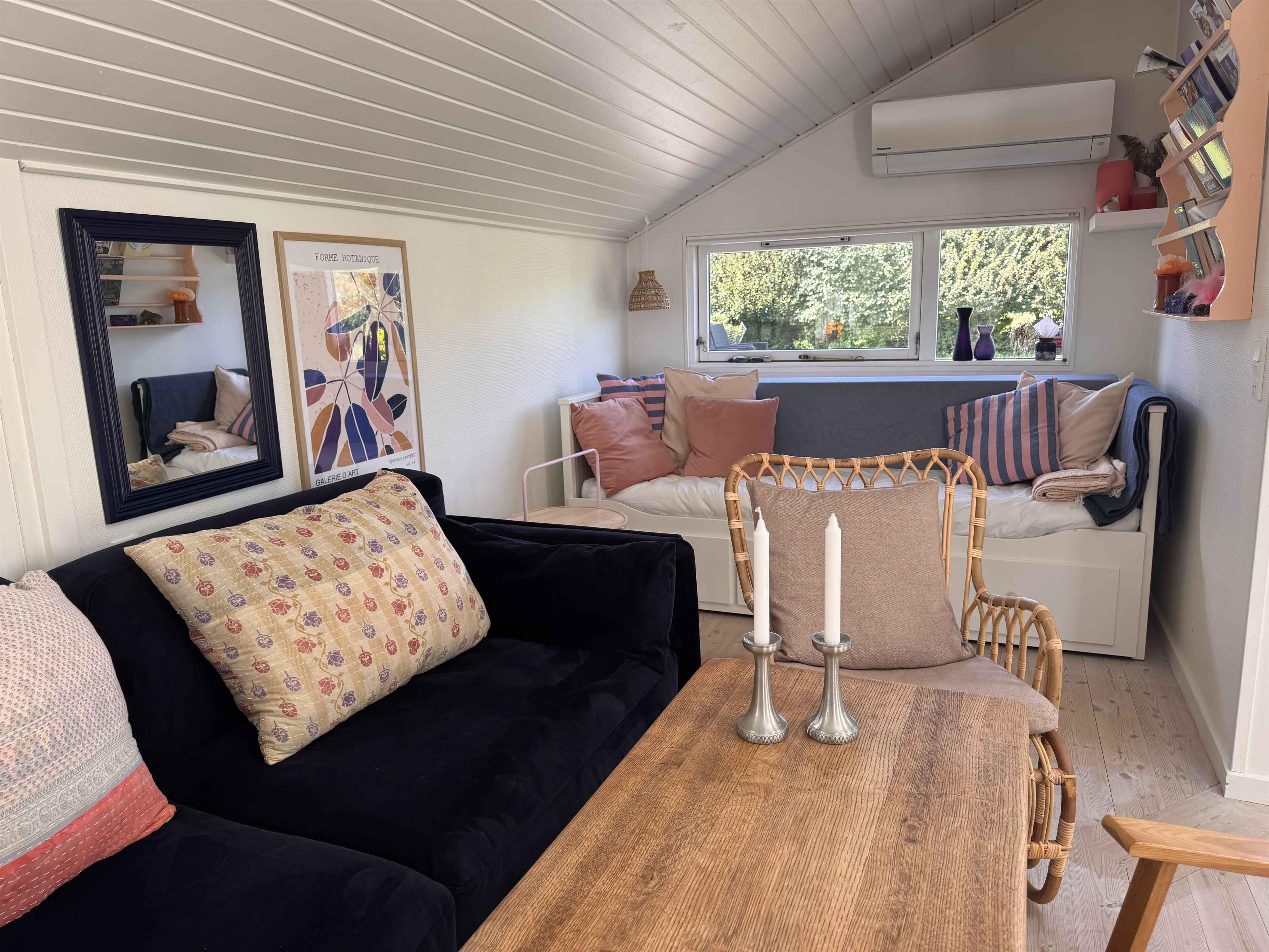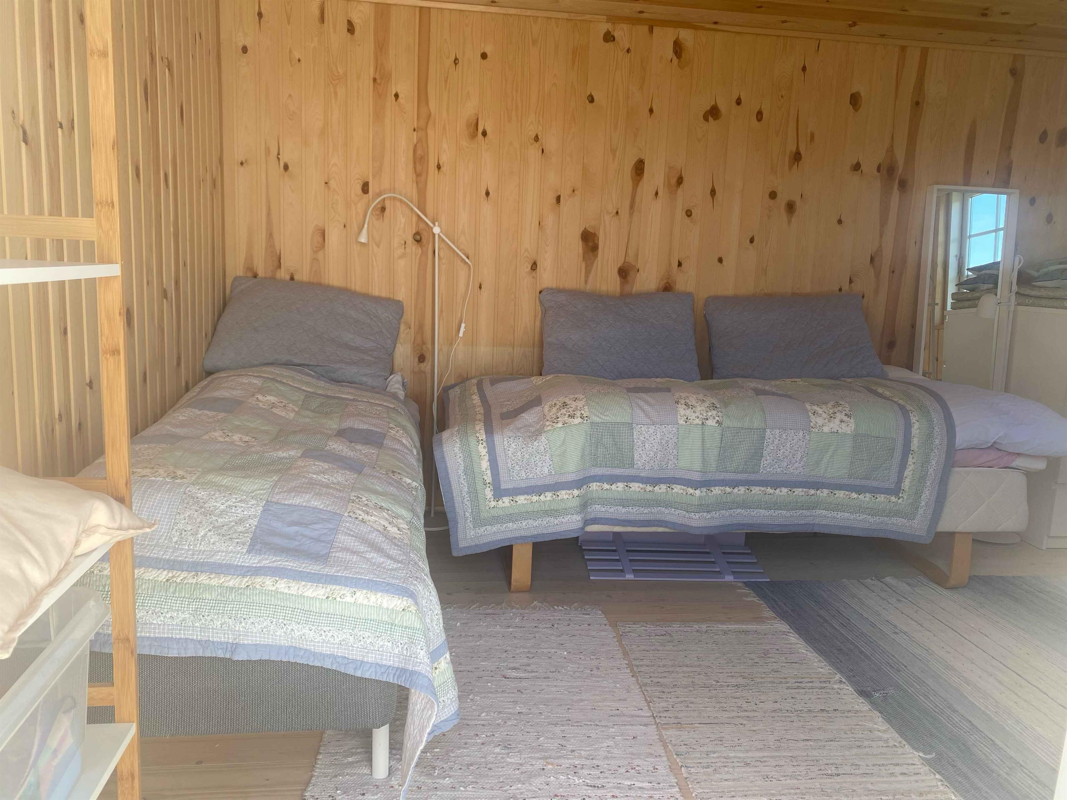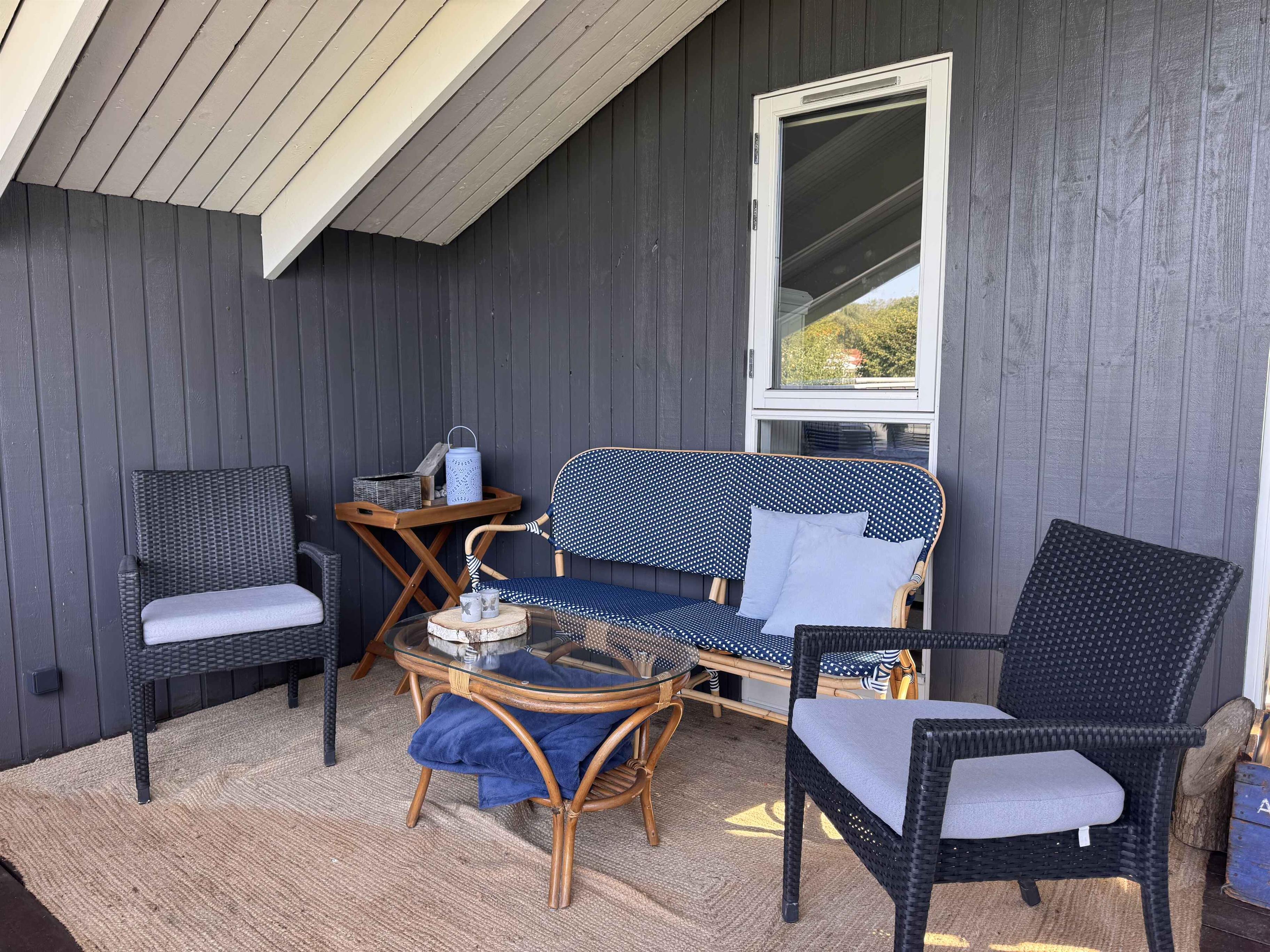 This little gem of a holiday home is decorated in a warm and personal style that invites you to relax, enjoy and spend quality time. Here you can plan a week full of relaxation, board games, swimming from the nearby bathing bridge and beautiful walks in the scenic area. In the centre of the house is a bright and inviting living room, which is integrated with the smaller but functional kitchen. Here there is space for cooking, playing games at the dining table and relaxing on the sofa. Large skylight windows let the daylight in and give the room an open and bright atmosphere – regardless of the weather outside. There are two bedrooms – one large and one smaller – both with double beds. In the living room there is a sofa bed with space for two more people. The house also includes a cosy annex, furnished as a TV room, where you can stream your favourite TV content from your mobile phone – or take an undisturbed nap in peace and quiet on one of the two beds that is used as a couch. Outdoors you will find two lovely terraces: a morning terrace for the first cup of coffee of the day while the sun rises in the east, and an evening terrace to the west with a barbecue and good furniture, perfect for afternoon drinks and cozy dinners in the long summer evenings, either under the open sky or under the covered terrace. And for the youngest in the family (or childlike souls), the garden offers an underground trampoline - perfect for playing and exercising outdoors. In addition, the large grass areas invite you to play ball games and Viking games. Note: Not for commercial rental.