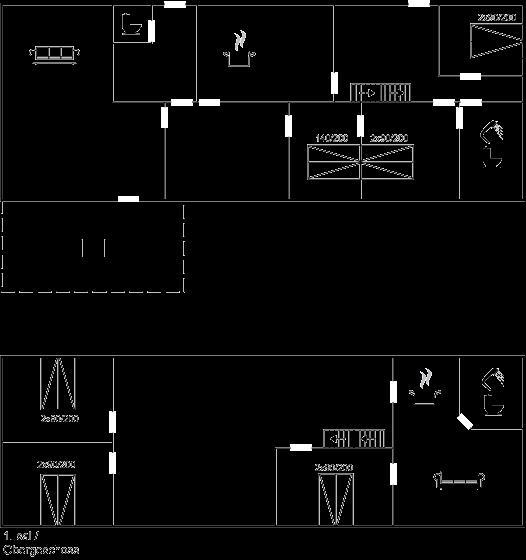All together there are 6 bedrooms. The beds are divided on: 8 sleeping places in double beds. 4 sleeping places in single beds. Moreover 1 cot for a baby (0-3 years).