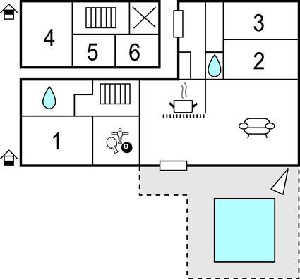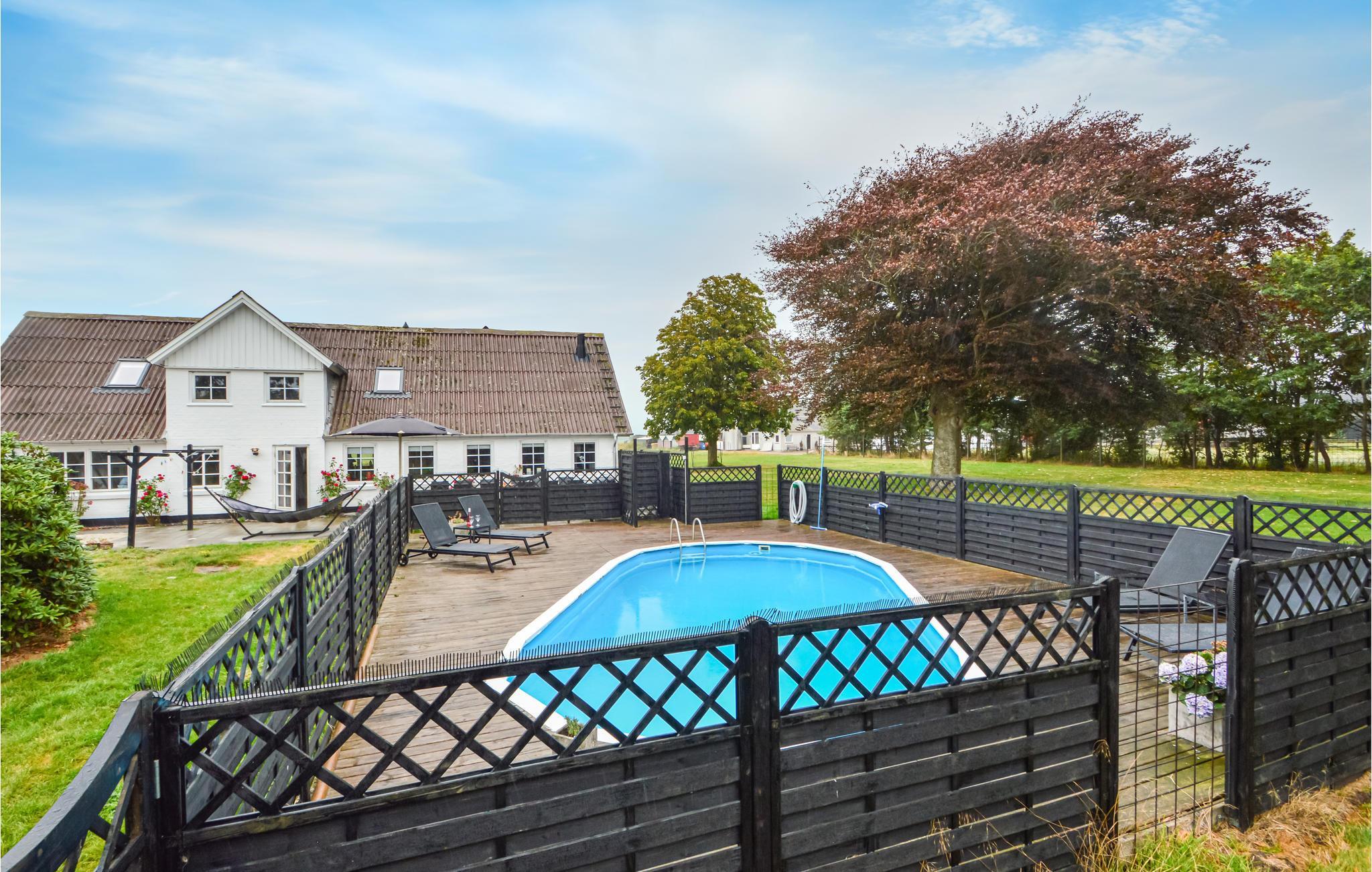 Die schöne Terrasse mit guten Gartenmöbeln grenzt an den großen, beheizten Außenpool an, der eingezäunt ist (der Pool kann von Woche 23 bis Woche 38 genutzt werden). Im großen Garten gibt es viel Platz zum Spielen und die Kinder können sich auf dem Trampolin, der Rutsche und den anderen Spielgeräten amüsieren. Der benachbarte Bauernhof ist ein aktiver Bauernhof mit grasenden Kühen auf den Feldern.