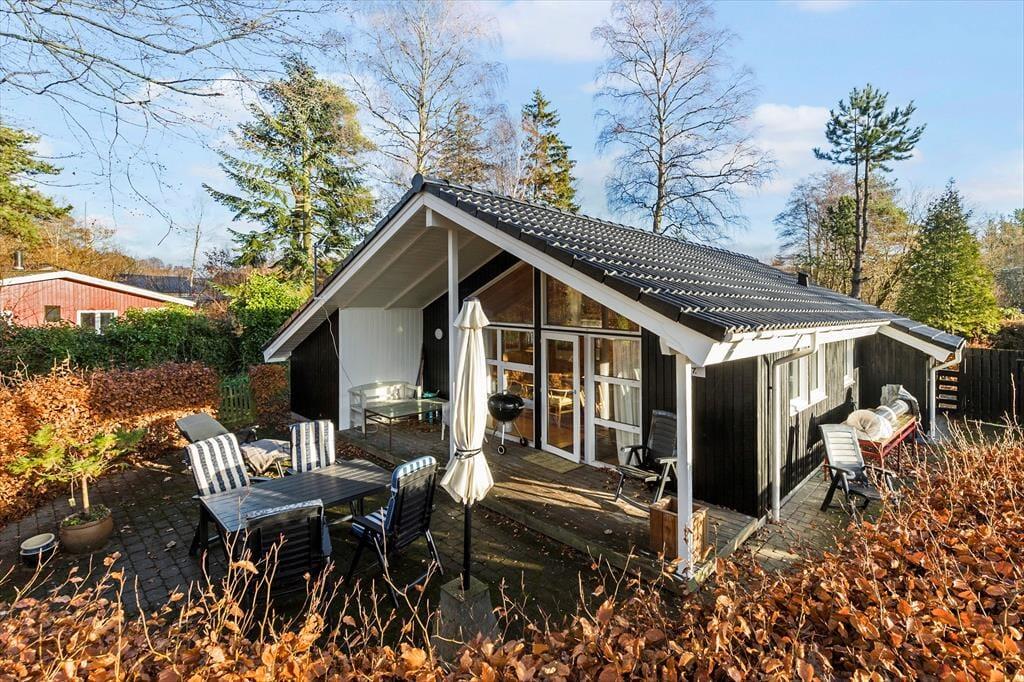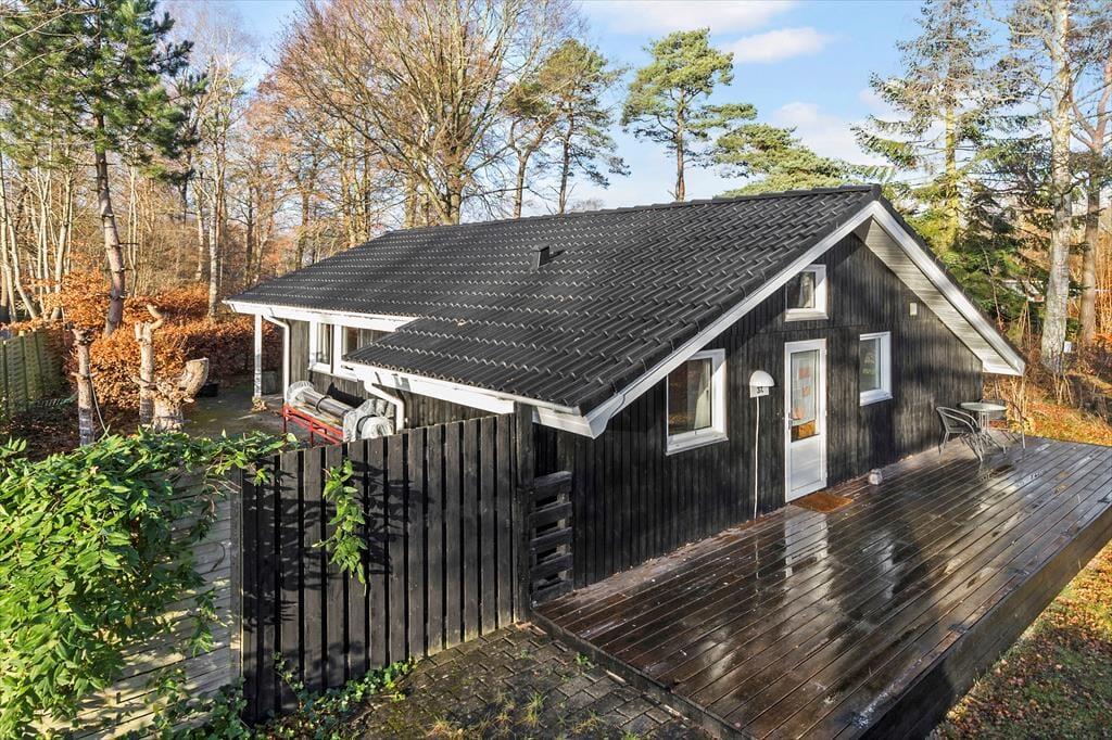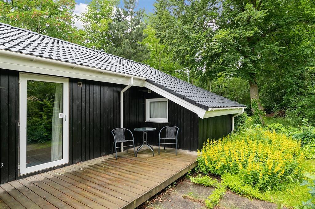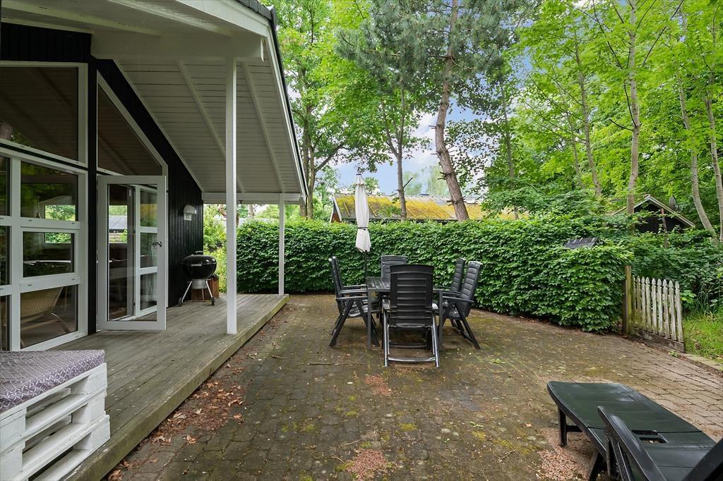 Das Grundstück ist von Bäumen umgeben und lädt rund um das Haus zu Spiel, Sport und Entspannung in ruhiger Umgebung im Grünen ein. Die Terrasse verläuft rund um das Haus und bietet zahlreiche Möglichkeiten, einen sonnigen oder schattigen Platz zu finden. Auf der Hauptterrasse, die nach Westen ausgerichtet ist, genießt du die Abendsonne, während du eine köstliche Grillmahlzeit vorbereitest, um den Tag gemeinsam ausklingen zu lassen.