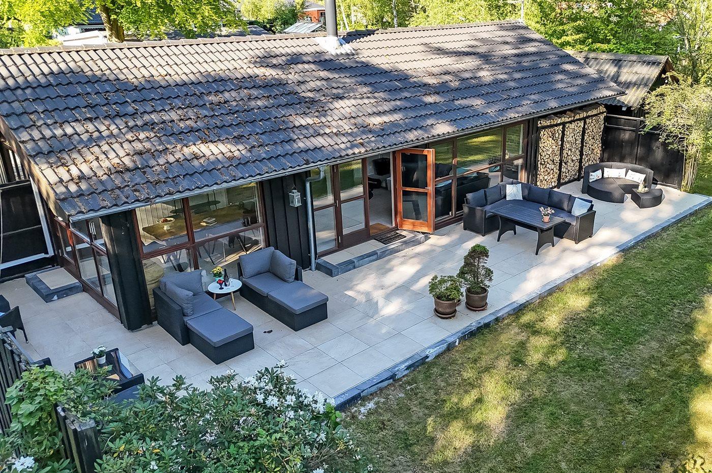 The holiday home is situated on a 780 m² garden site. Situated 300 m from the sea. Nearest shop is 1500 m away. A 100 m² terrace belong to the holiday home. Parking place by the holiday home.