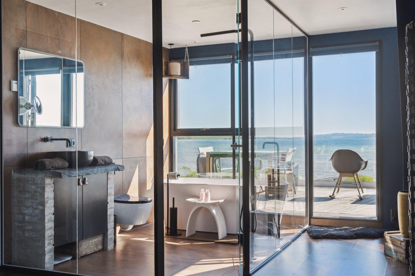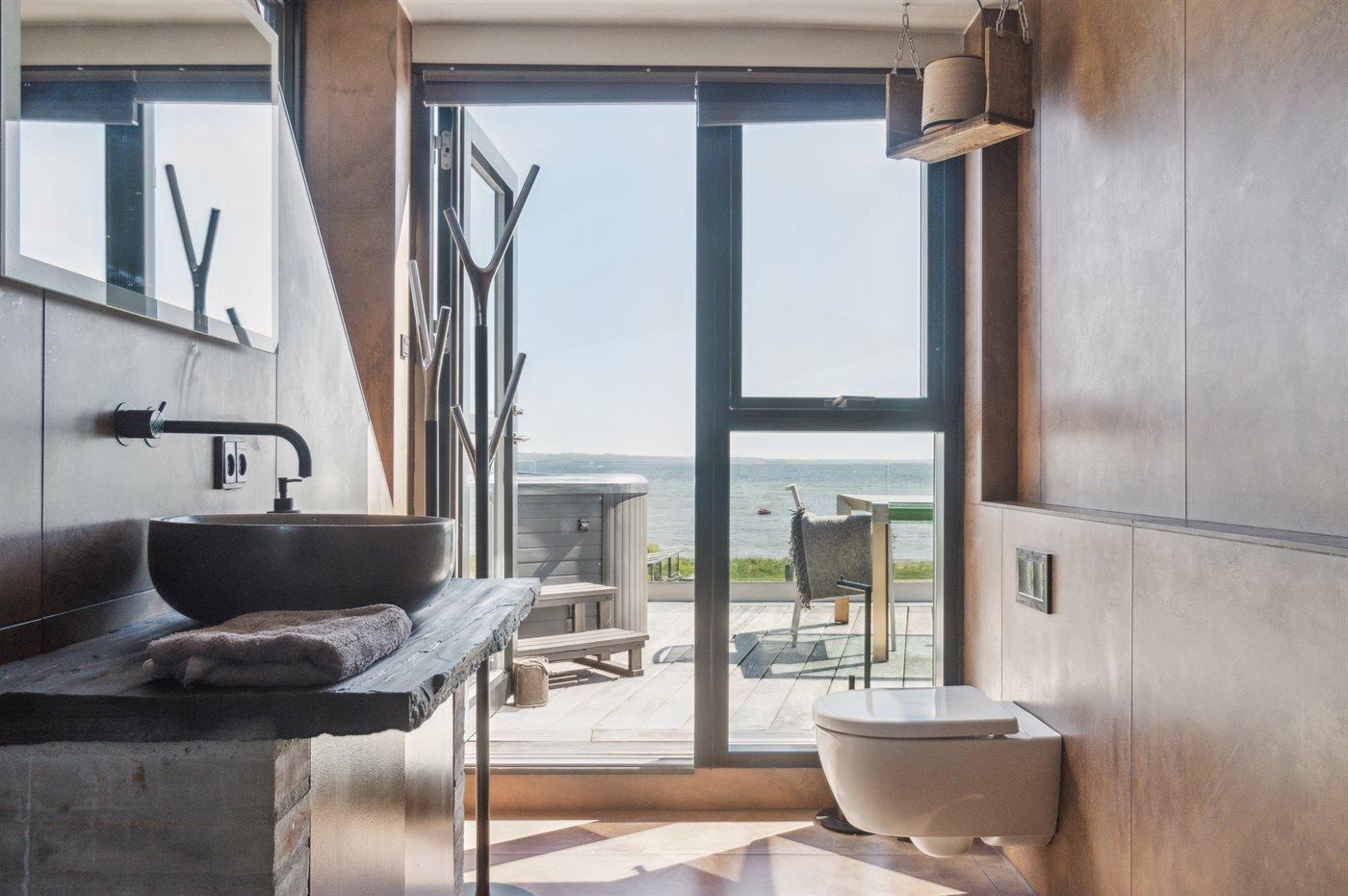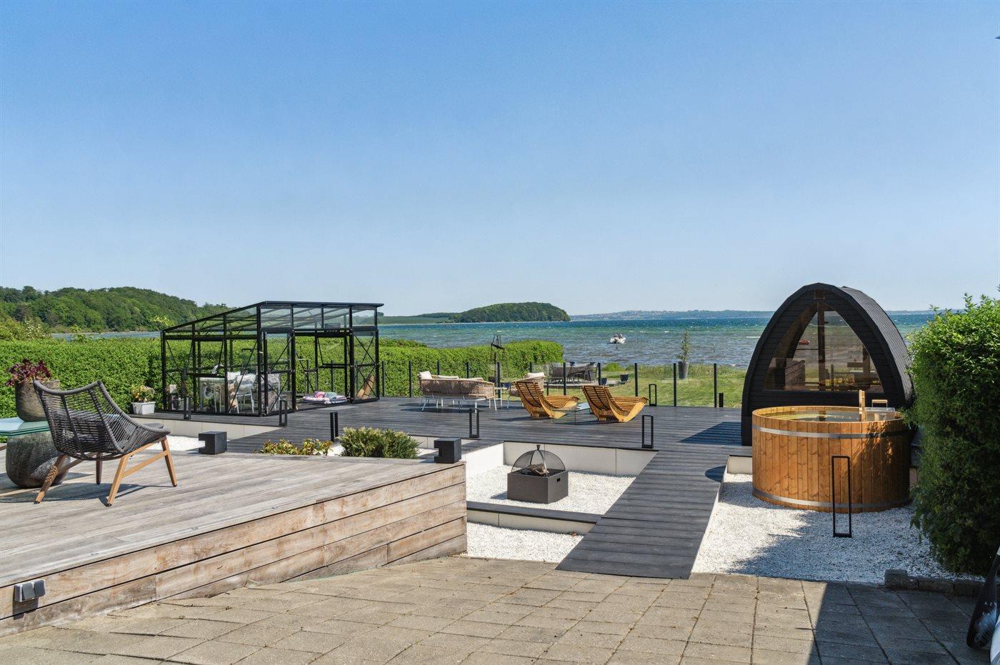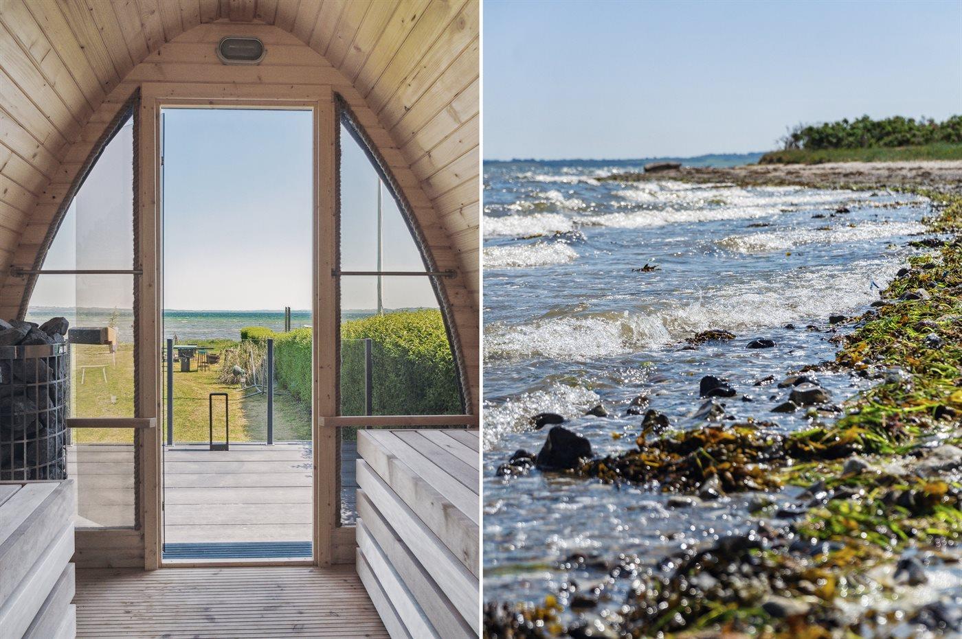 The holiday home is situated on a 1068 m² garden site. Situated 10 m from the sea. Nearest shop is 1500 m away. You will find a golf course in a distance of 1200 m. A terrace belong to the holiday home. Situated 100 m from a playground. Outdoor sauna. Parking place by the holiday home.