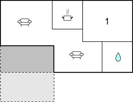 Wohnraum - 2 Schlafmöglichkeiten. (Doppelbett(en)).