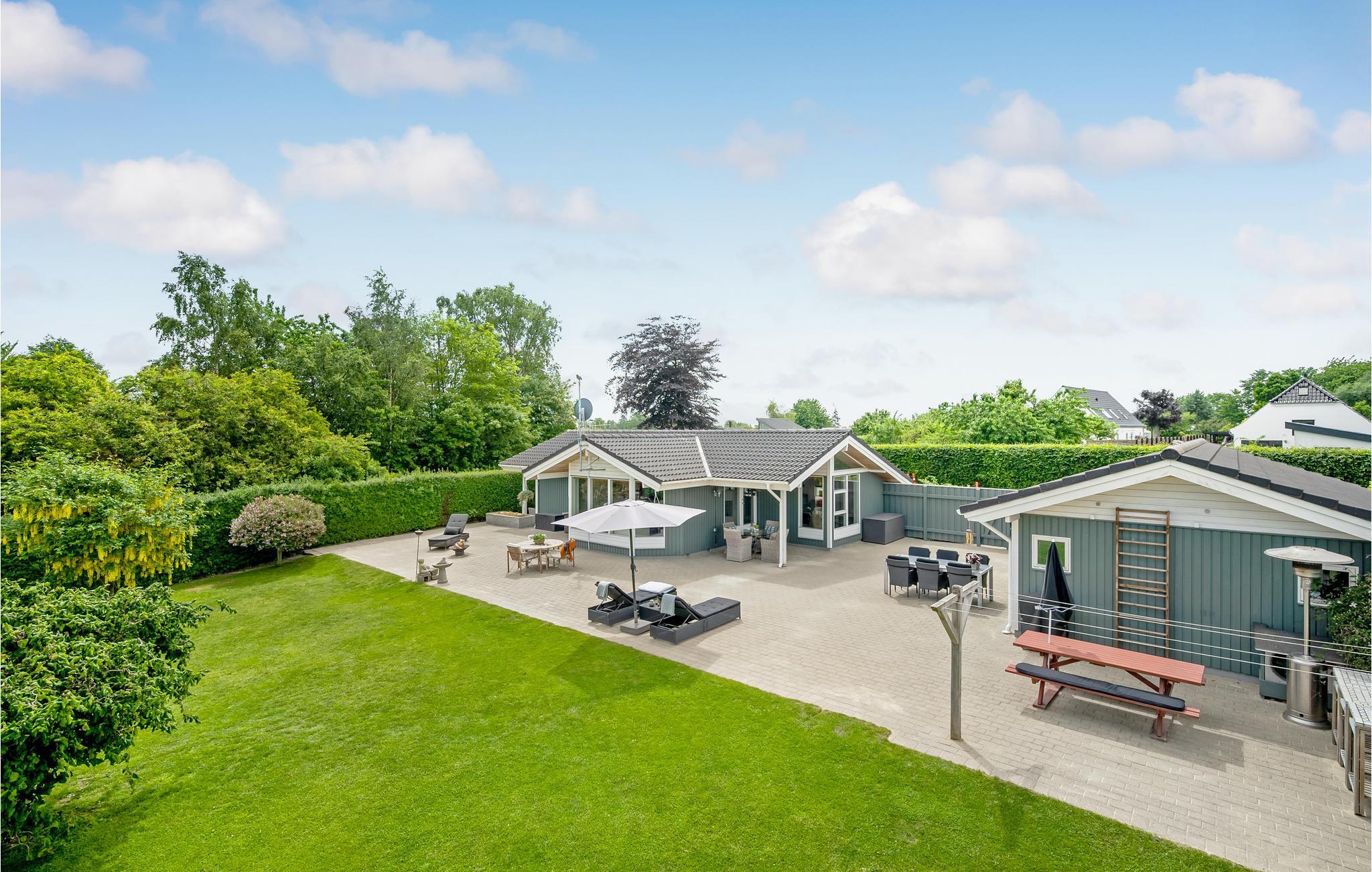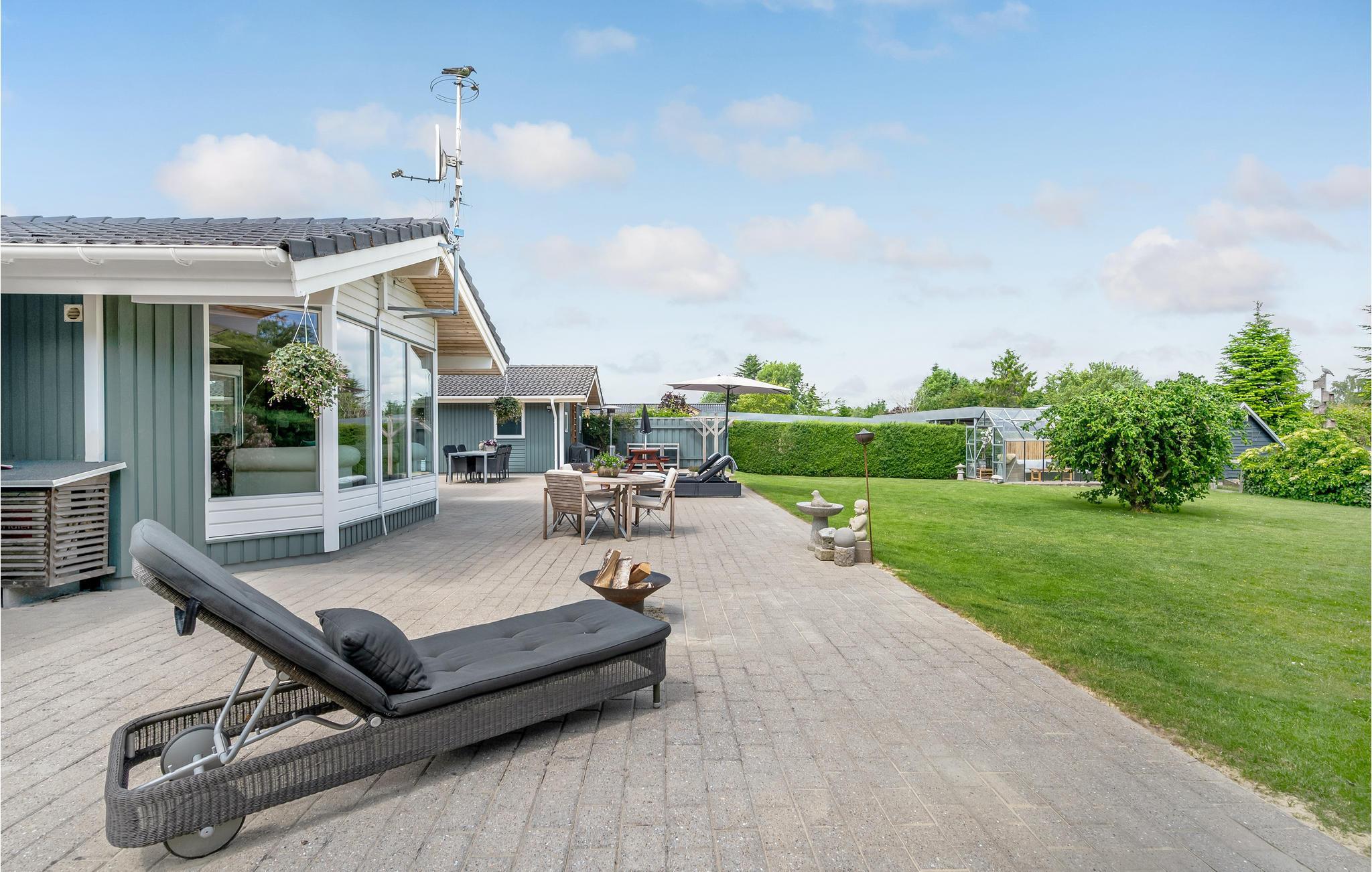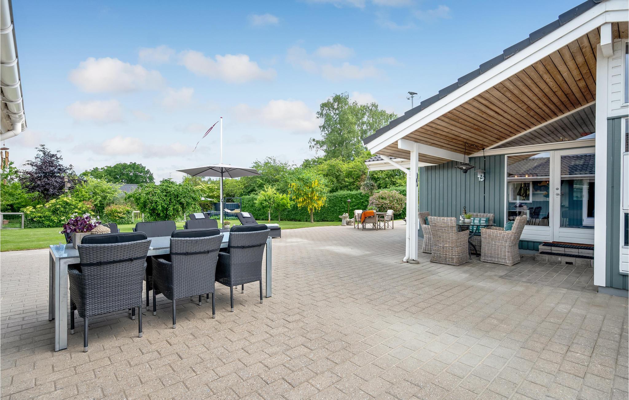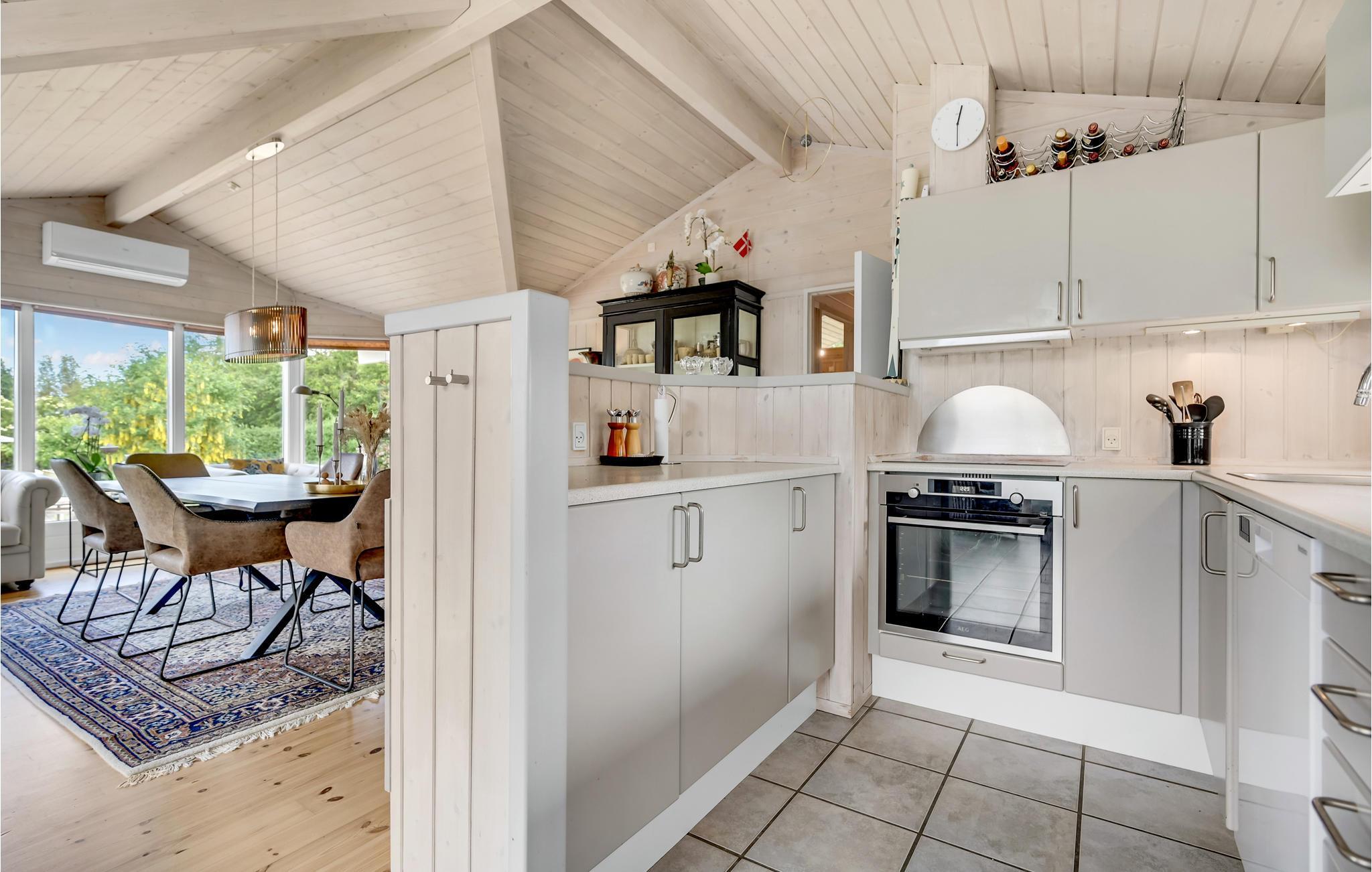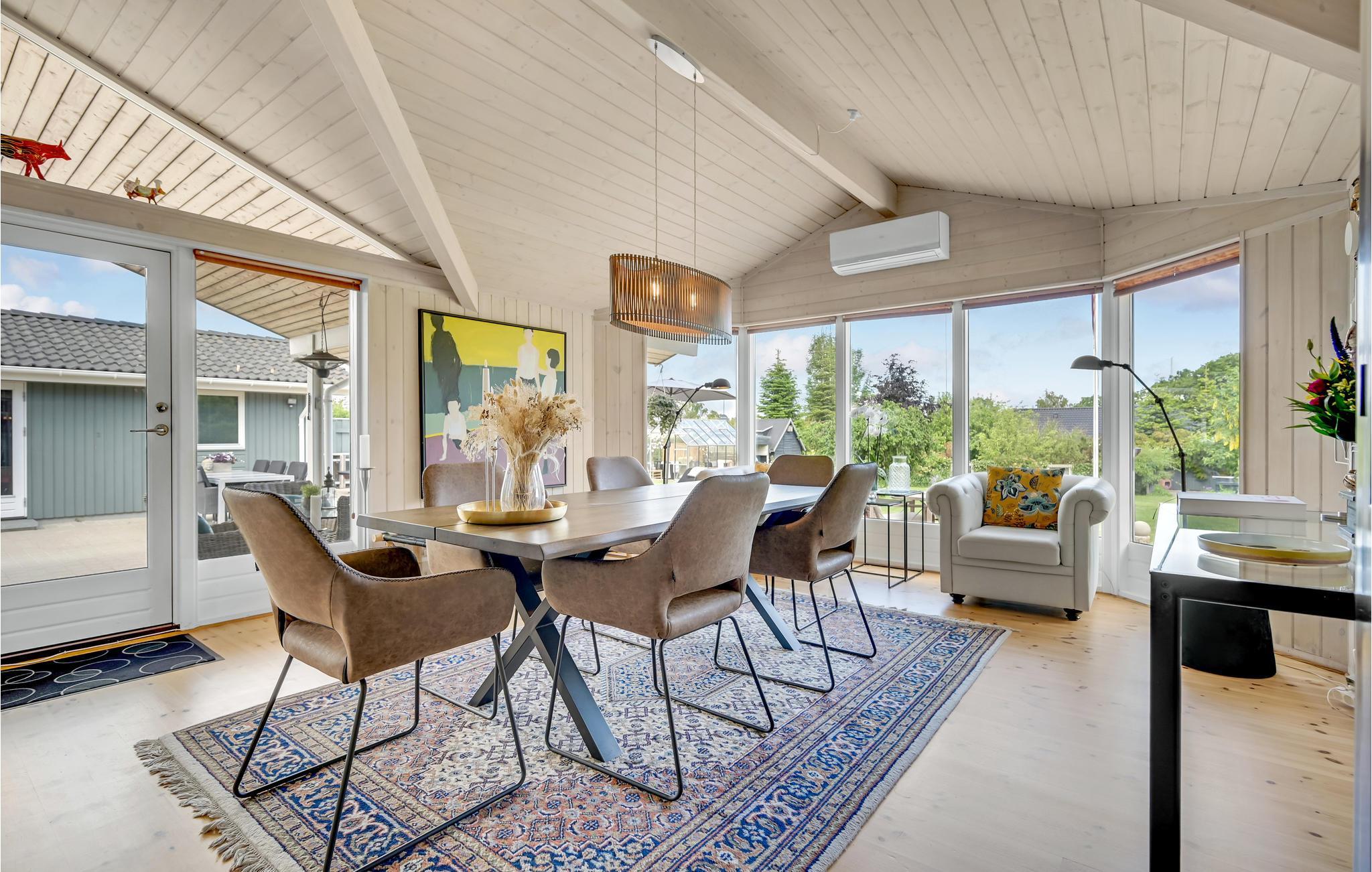Gönnen Sie sich eine wohlverdiente Auszeit vom hektischen Alltag nahe Skæring Strand. Innen empfängt Sie eine stilvolle Kombination aus hellen und warmen Farben, hohen Decken, einer modernen und geschmackvollen Einrichtung sowie einer Fülle von Tageslicht, das durch die großen Fenster strömt. All dies vermittelt Ihnen ein Gefühl von Leichtigkeit, Weite, Ruhe und Harmonie. Im gut ausgestatteten Küchenbereich erwarten Sie spannende Kocherlebnisse mit Ihren Kindern, und der Esstisch ist der ideale Platz für gesellige Runden bei Brett- oder Kartenspielen.