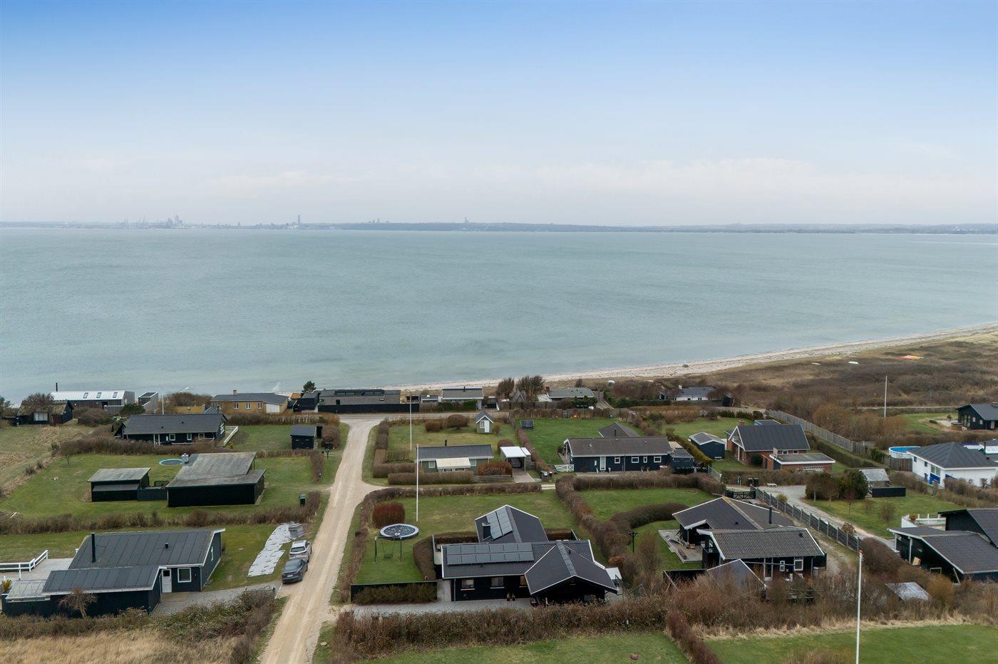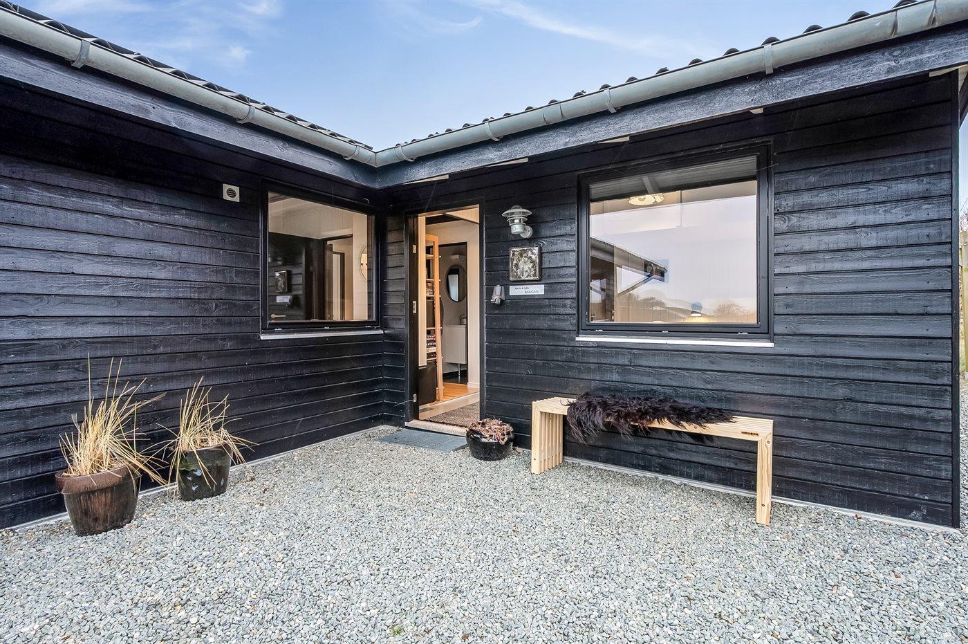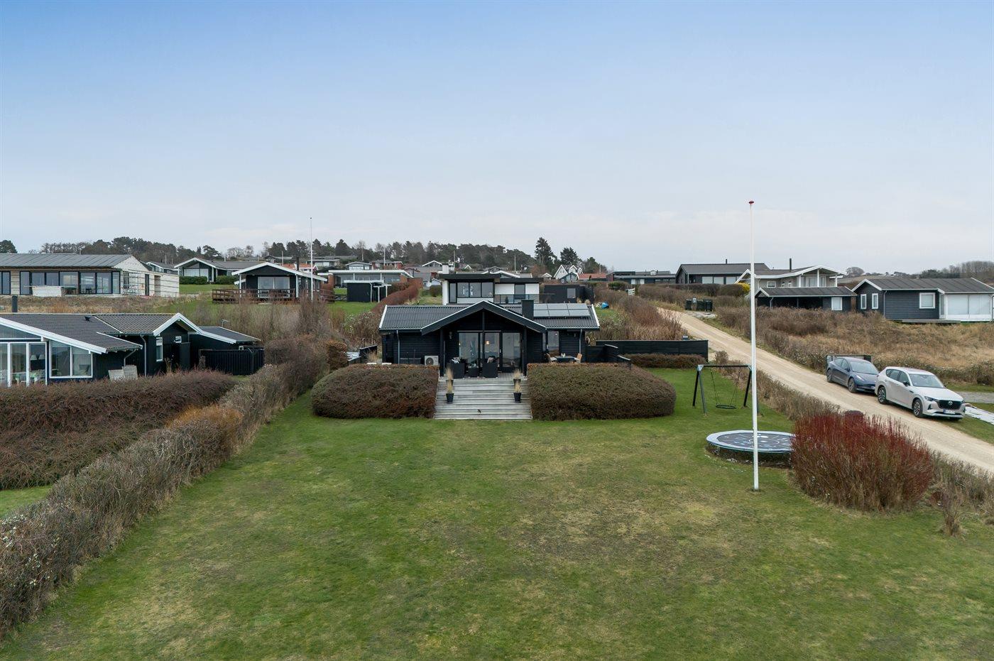The holiday home is situated on a 1200 m² natural site. Situated 100 m from the sea. A bathing jetty is available nearby. Nearest shop is 4000 m away. A terrace belong to the holiday home. Furthermore the house has a covered terrace. Swing. Sandbox. Trampoline. Football goal.Fire place. Barbecue at your disposal. Parking place by the holiday home.