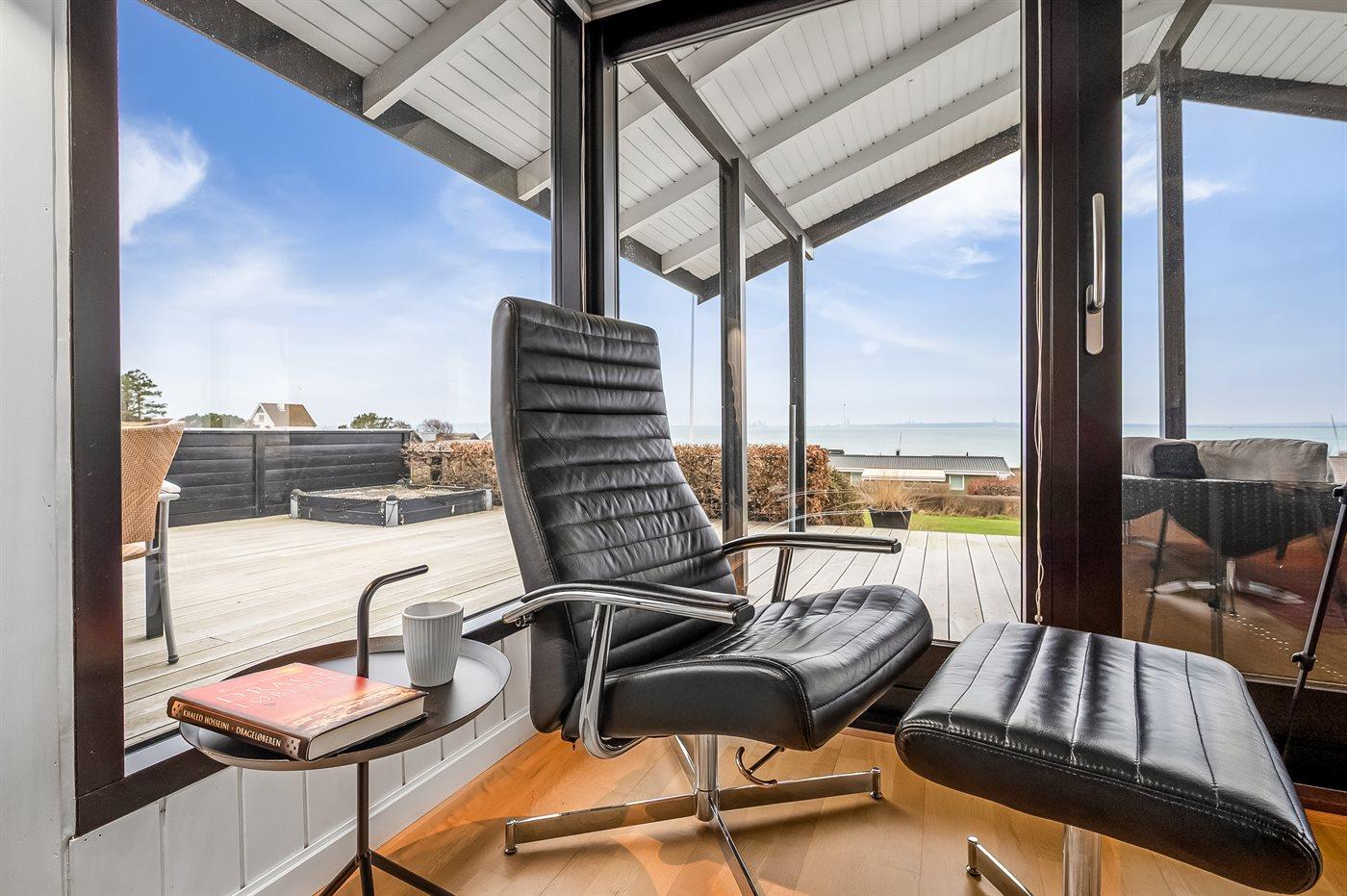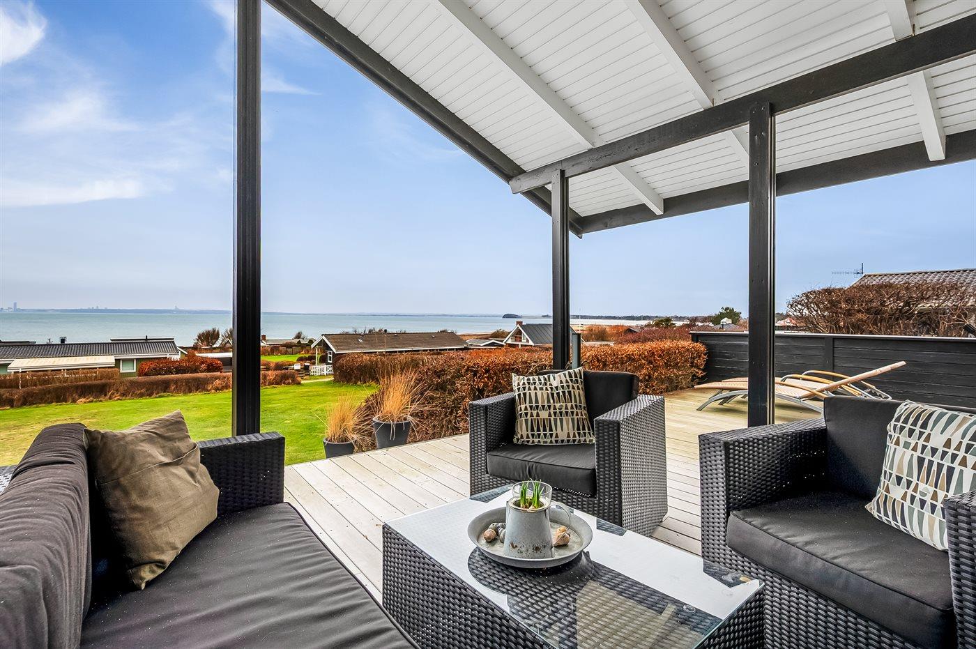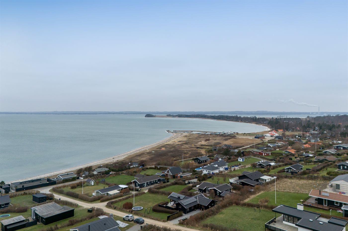 The holiday home is situated on a 1200 m² natural site. Situated 100 m from the sea. A bathing jetty is available nearby. Nearest shop is 4000 m away. A terrace belong to the holiday home. Furthermore the house has a covered terrace. Swing. Sandbox. Trampoline. Football goal.Fire place. Barbecue at your disposal. Parking place by the holiday home.