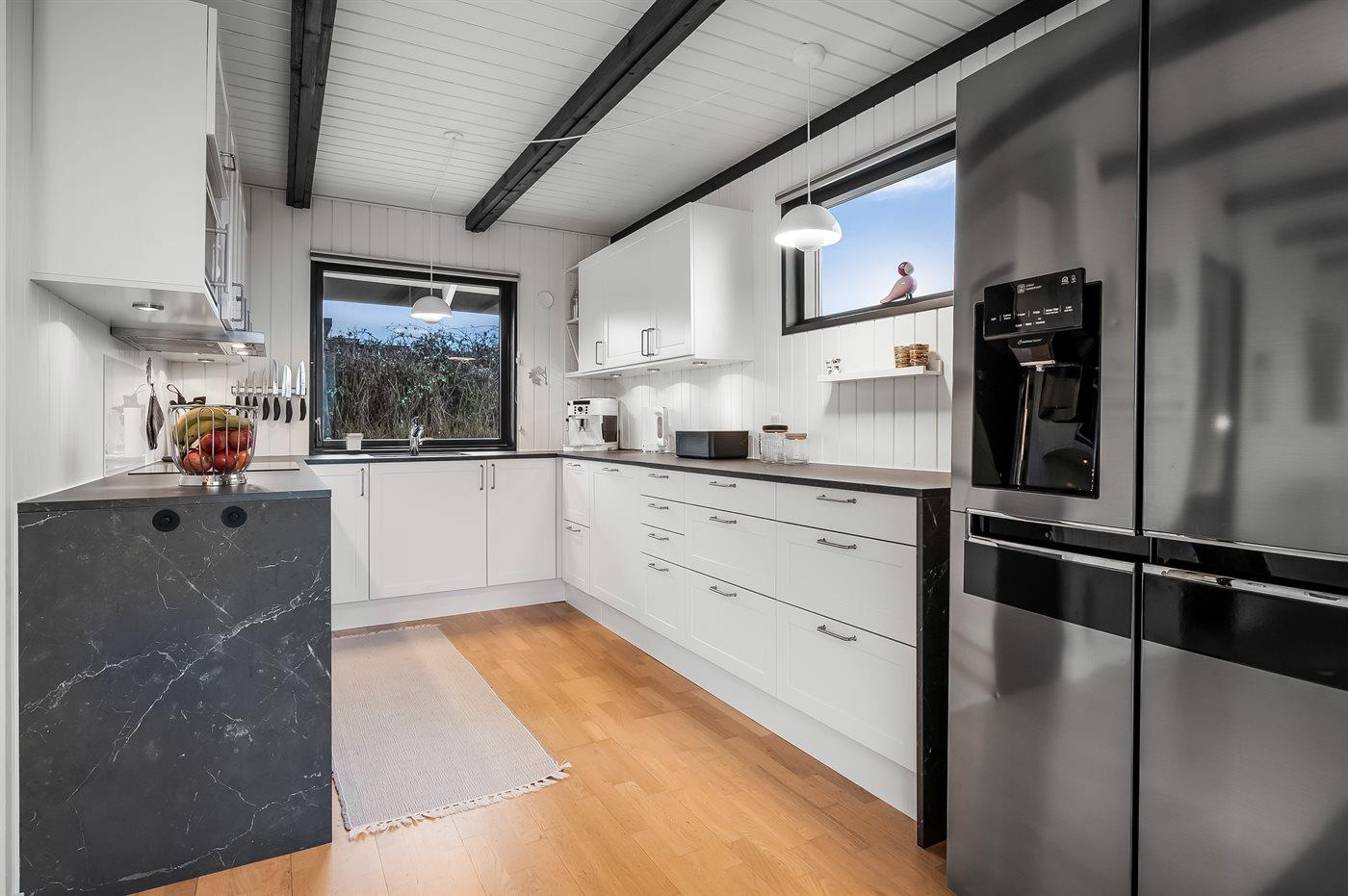 Holiday home suitable for 6 persons . The holiday home is 80 m² and is build in 1973. In 2025 the holiday home was renovated. You can bring along 1 pet. The holiday home is equipped with 1 energy-saving air-to-air heat pump. The holiday home has washing machine. Tumble dryer. Freezer capacity of 164 litres. Further more there is 1 wood-burning stove.