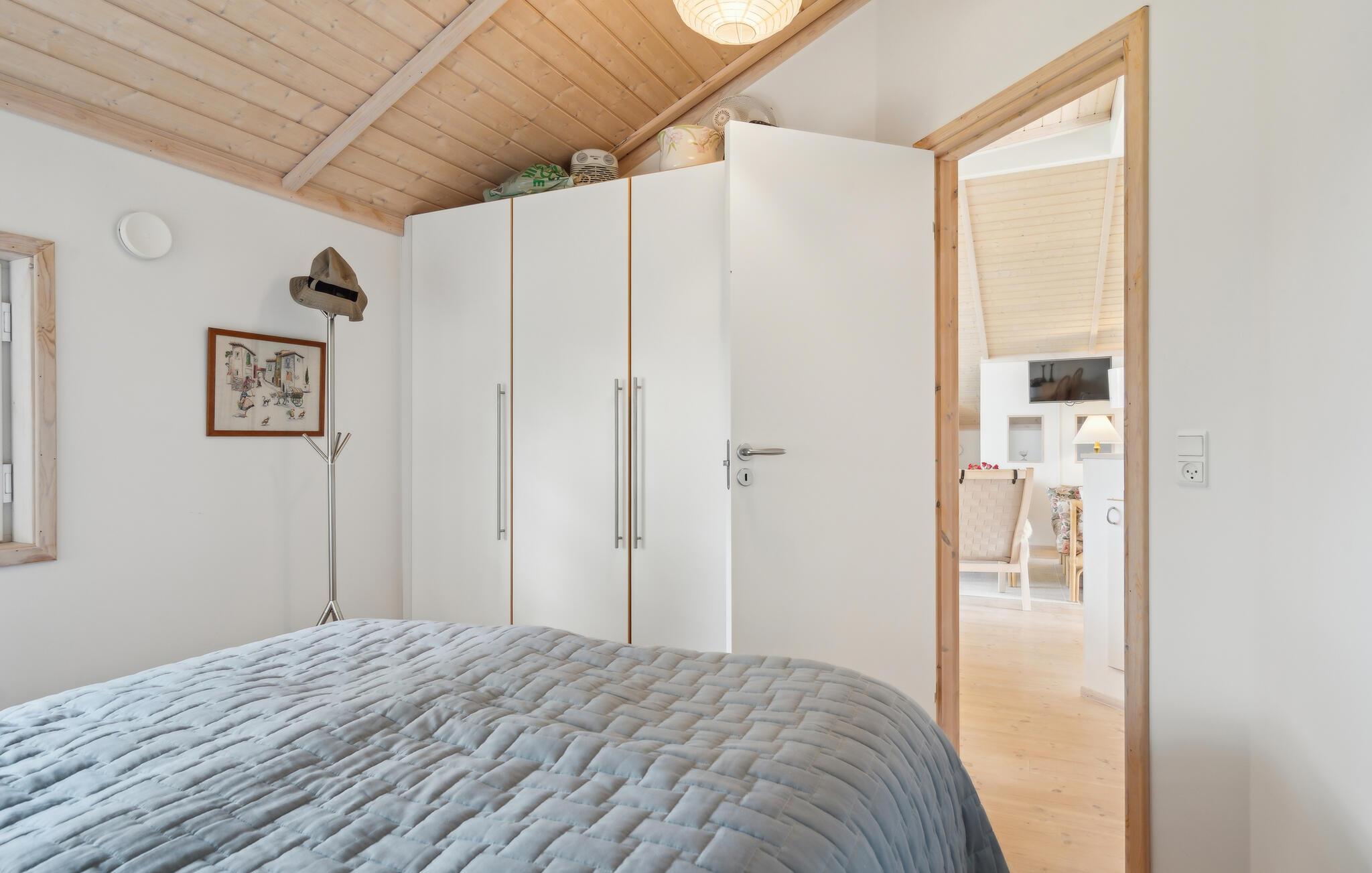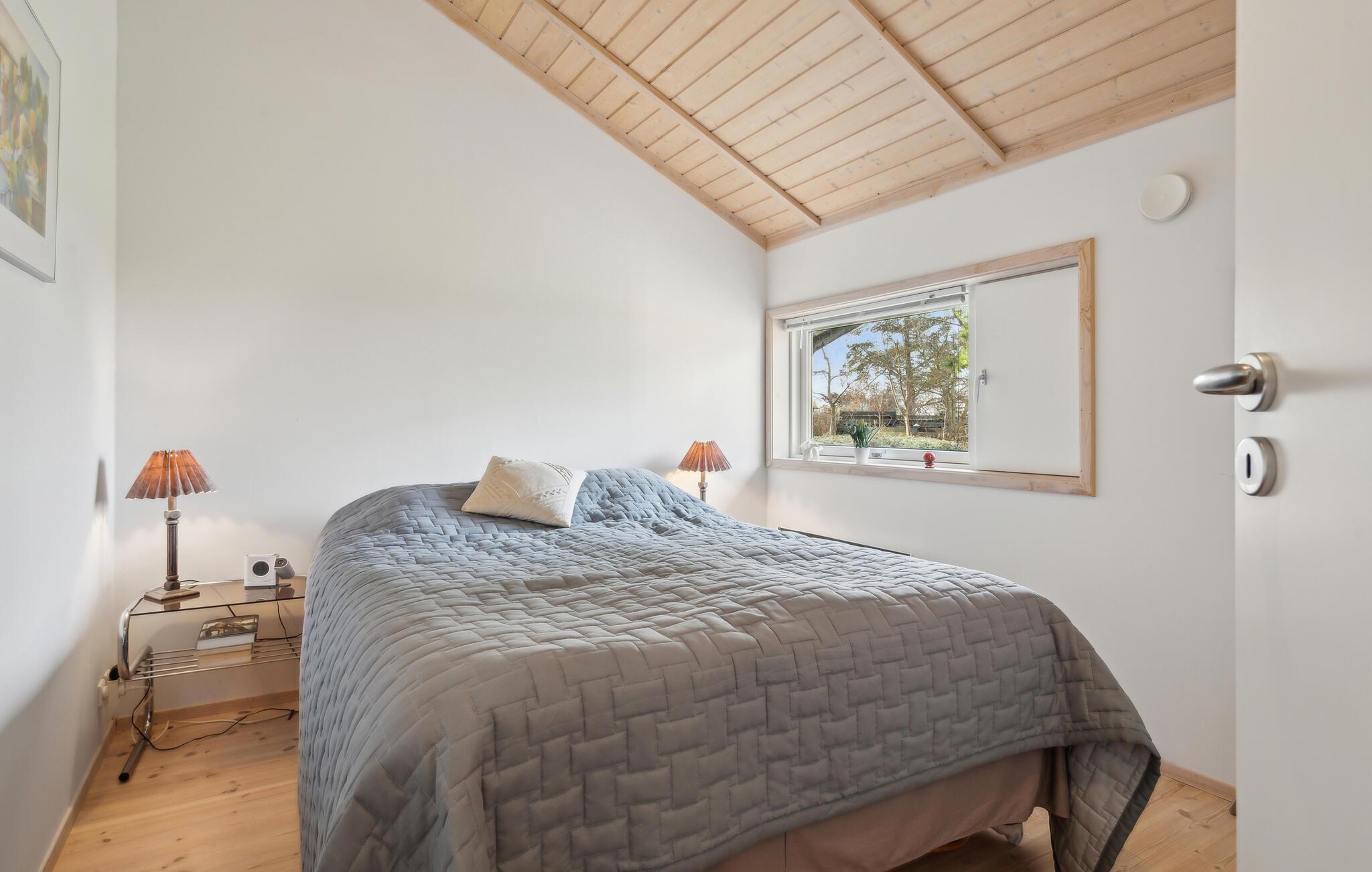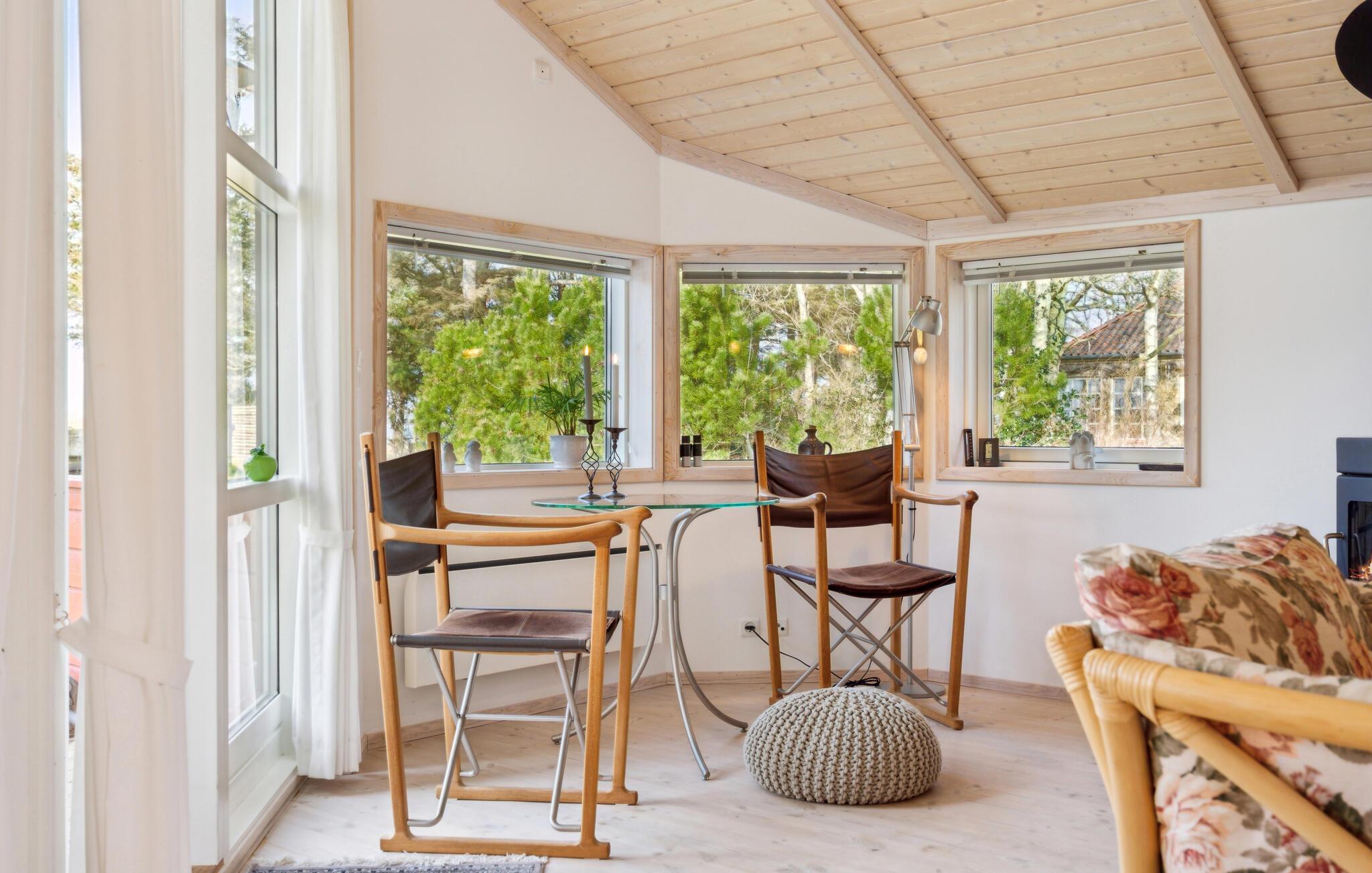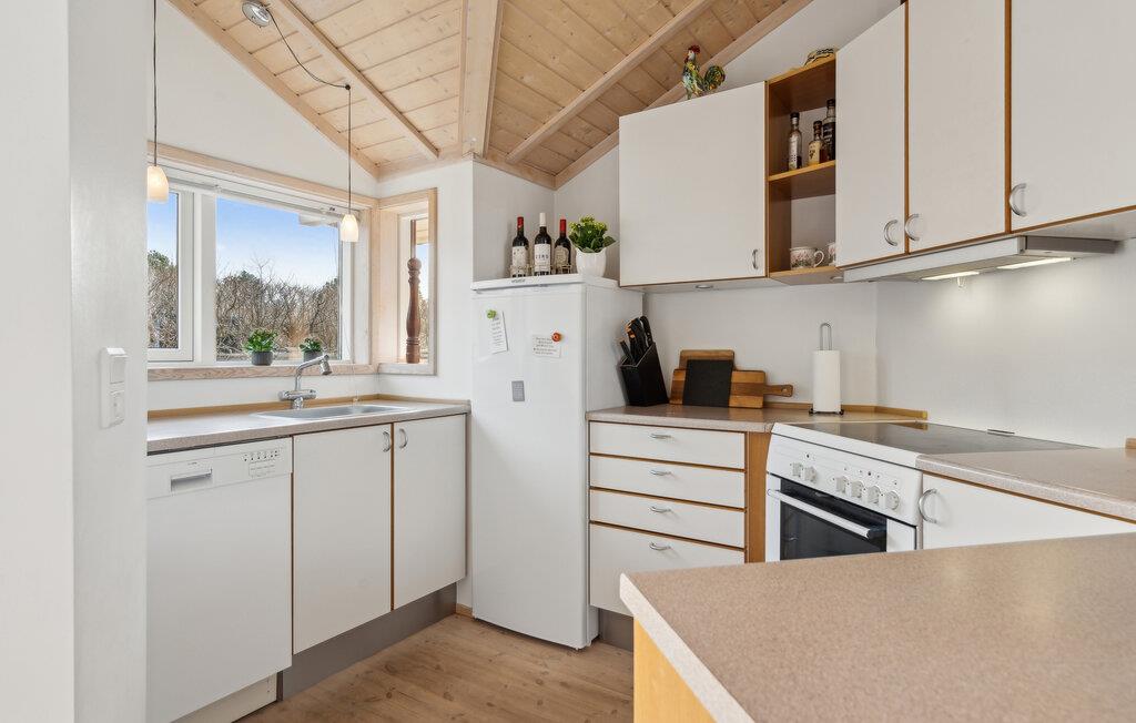 Nur wenige Schritte vom Skødshoved Strand entfernt liegt dieses charmante Ferienhaus in ruhiger Lage. Das klassische Ferienhaus mit der einladenden Terrasse und der grünen Umgebung bietet eine angenehme Atmosphäre. Im Inneren erwarten Sie hohe Decken, helle Holztöne, ein behaglicher Kaminofen und viel Tageslicht. Der offene Wohn- und Essbereich geht direkt in die großzügige Küche über und schafft ein angenehmes Raumgefühl. Genießen Sie Ihre Abende auf dem Sofa bei knisterndem Feuer oder verbringen Sie gesellige Stunden am Esstisch mit Blick in den Garten.