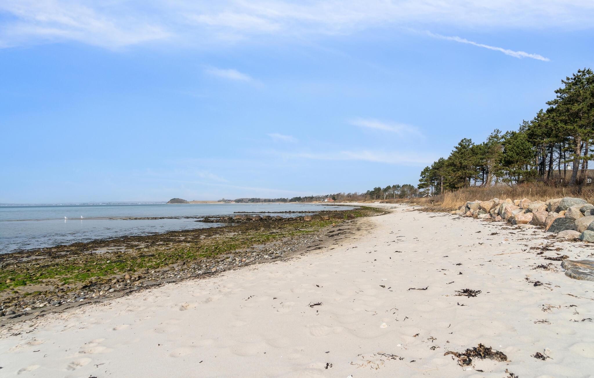 Nur wenige Minuten zu Fuß trennen Sie vom nächsten Strandzugang. Wer mag, kann an der nahe gelegenen Mole des kleinen Jachthafens sein Glück beim Krabbenfangen versuchen. Auch als Ausgangspunkt für Ausflüge ist das Haus ideal. Unternehmen Sie Wanderungen im Nationalpark Mols Bjerge oder erkunden Sie die Halbinsel Helgenæs. Die Altstadt von Ebeltoft mit Kopfsteinpflaster, Fachwerkhäusern und Cafés lädt ebenfalls zu einem Tagesbesuch ein.