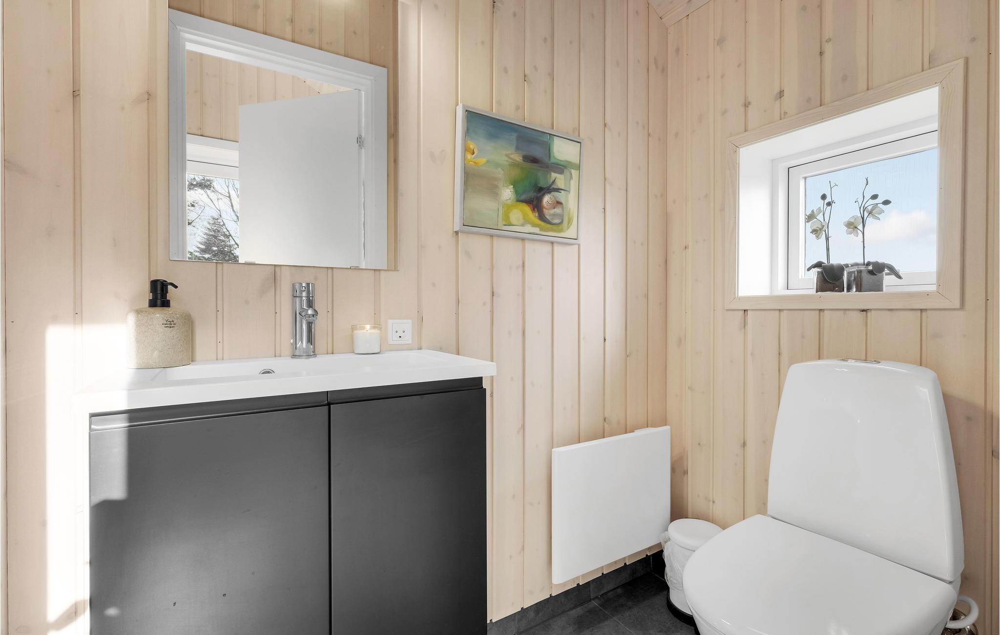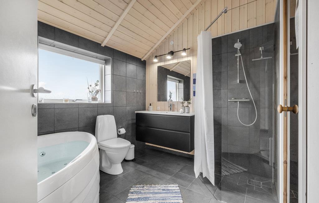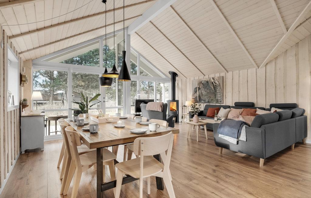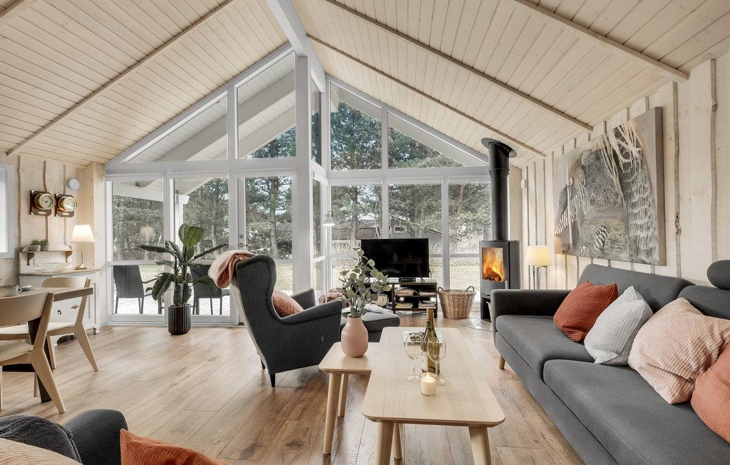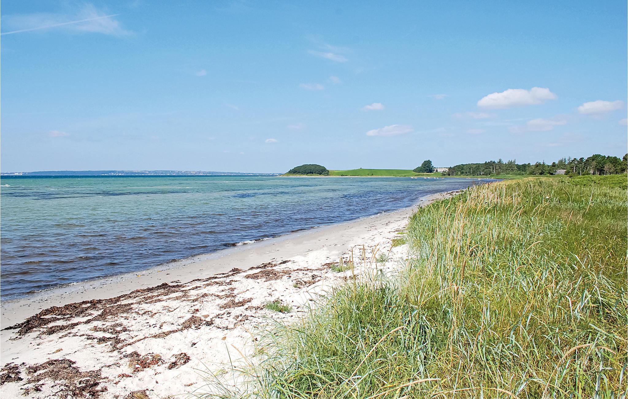 Schönes Ferienhaus auf einem schön angelegten Naturgrundstück und in fußläufiger Entfernung zum kinderfreundlichen Sandstran dnur 100 m vom Haus. Das Haus ist mit guten großen Schlafzimmern ausgestattet und verfügt über zwei Badezimmer. In der Küche gibt es ein Induktionskochfeld. Vom Essbereich gelangen Sie auf die überdachte Terrasse, weitere Terrassenbereiche befinden sich rund um das Haus.