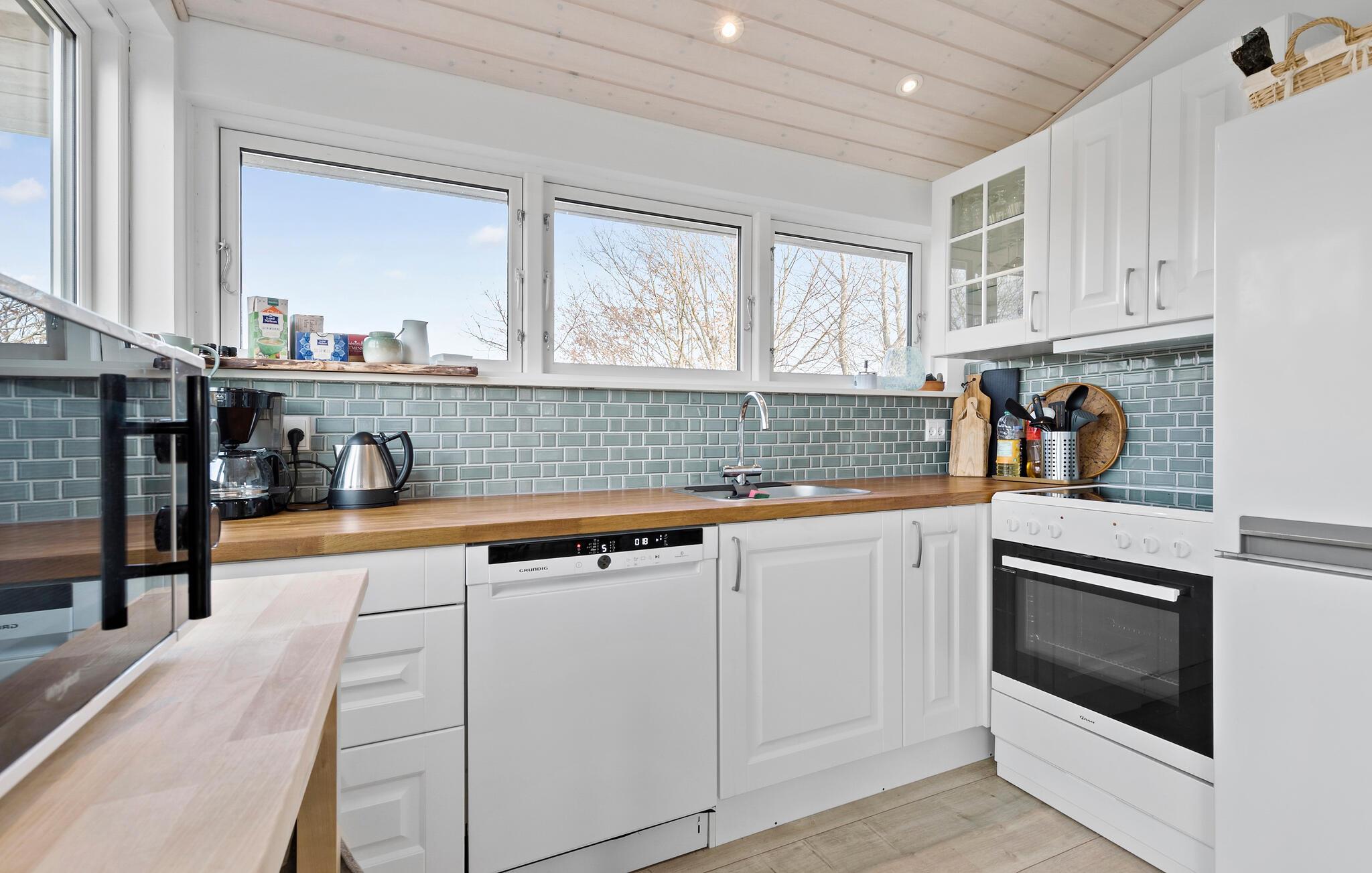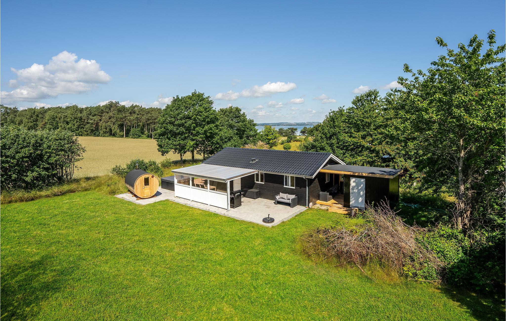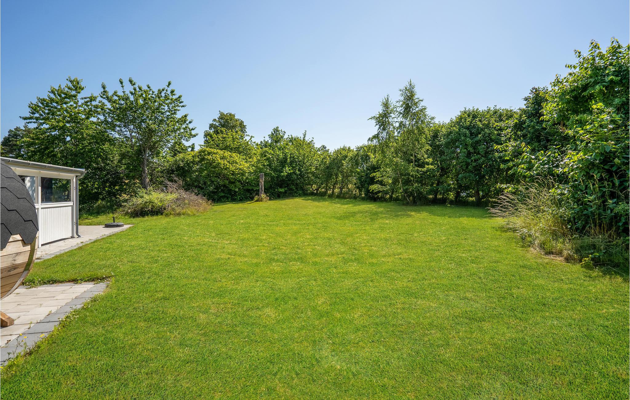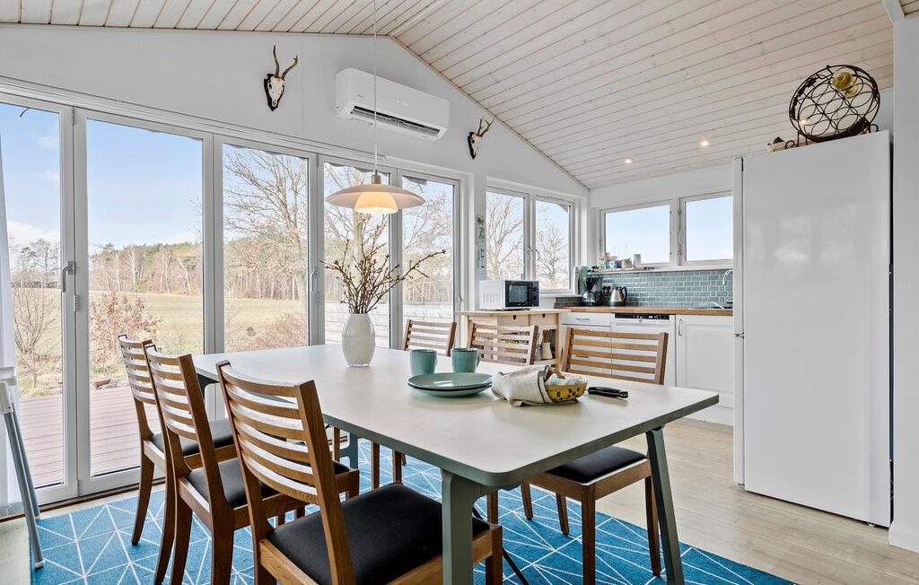 Ein gemütlicher Pfad führt zu einem wunderbaren Kiesstrand, an dem Sie den Sonnenuntergang genießen oder sogar, mit etwas Glück, einen Faustkeil aus der Steinzeit finden können. Das friedliche, private Grundstück bietet Aussicht über offene Felder und das Meer. Zum Haus gehört eine schöne Terrasse aus Holz mit Sonne von früh bis spät sowie ein großer Rasen, der zum Toben und Spielen einlädt. Das Haus mit den offenem Wohnraum ist von gutem Innenklima geprägt und lädt zu abendlicher Gemütlichkeit ein.