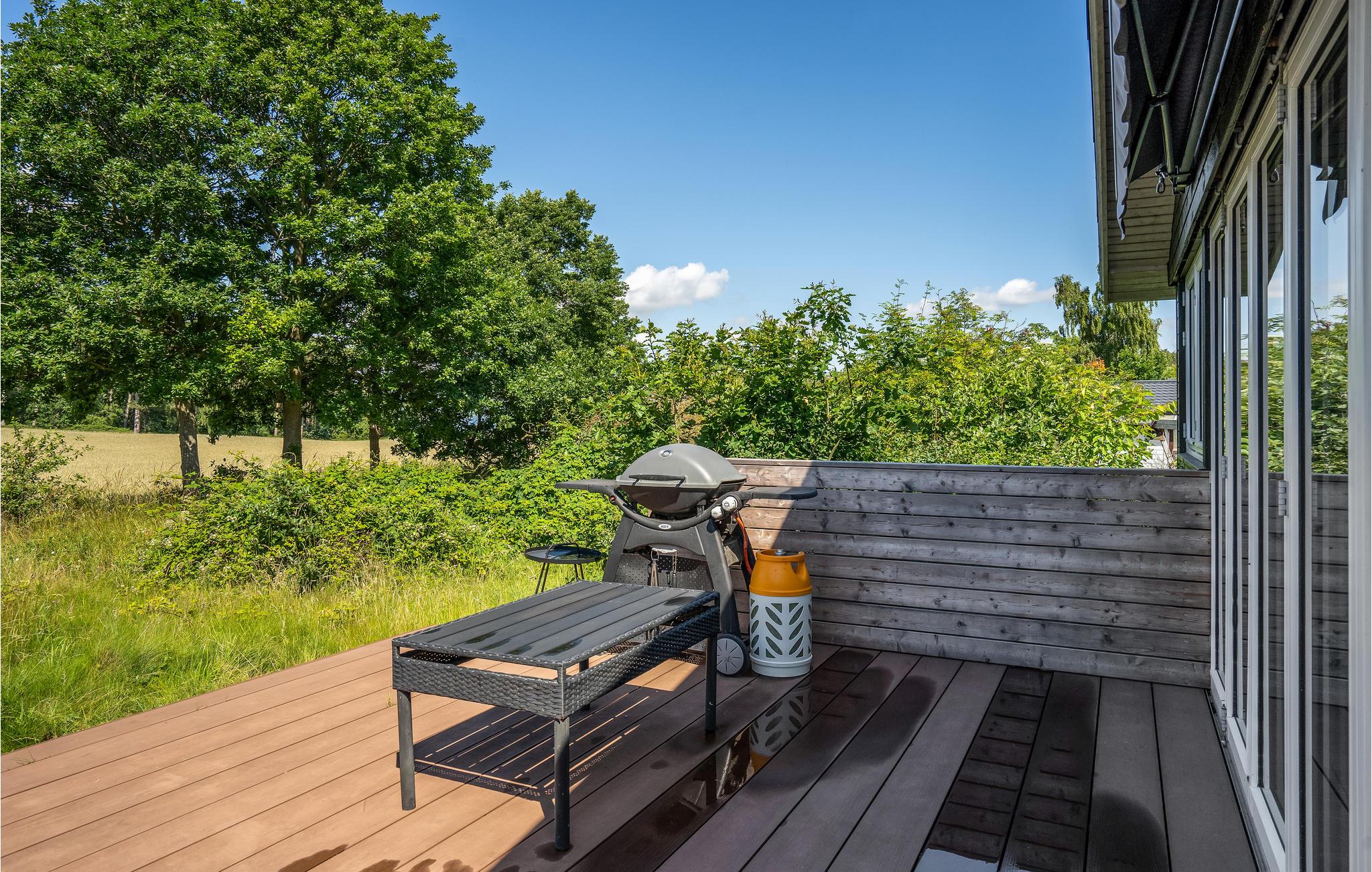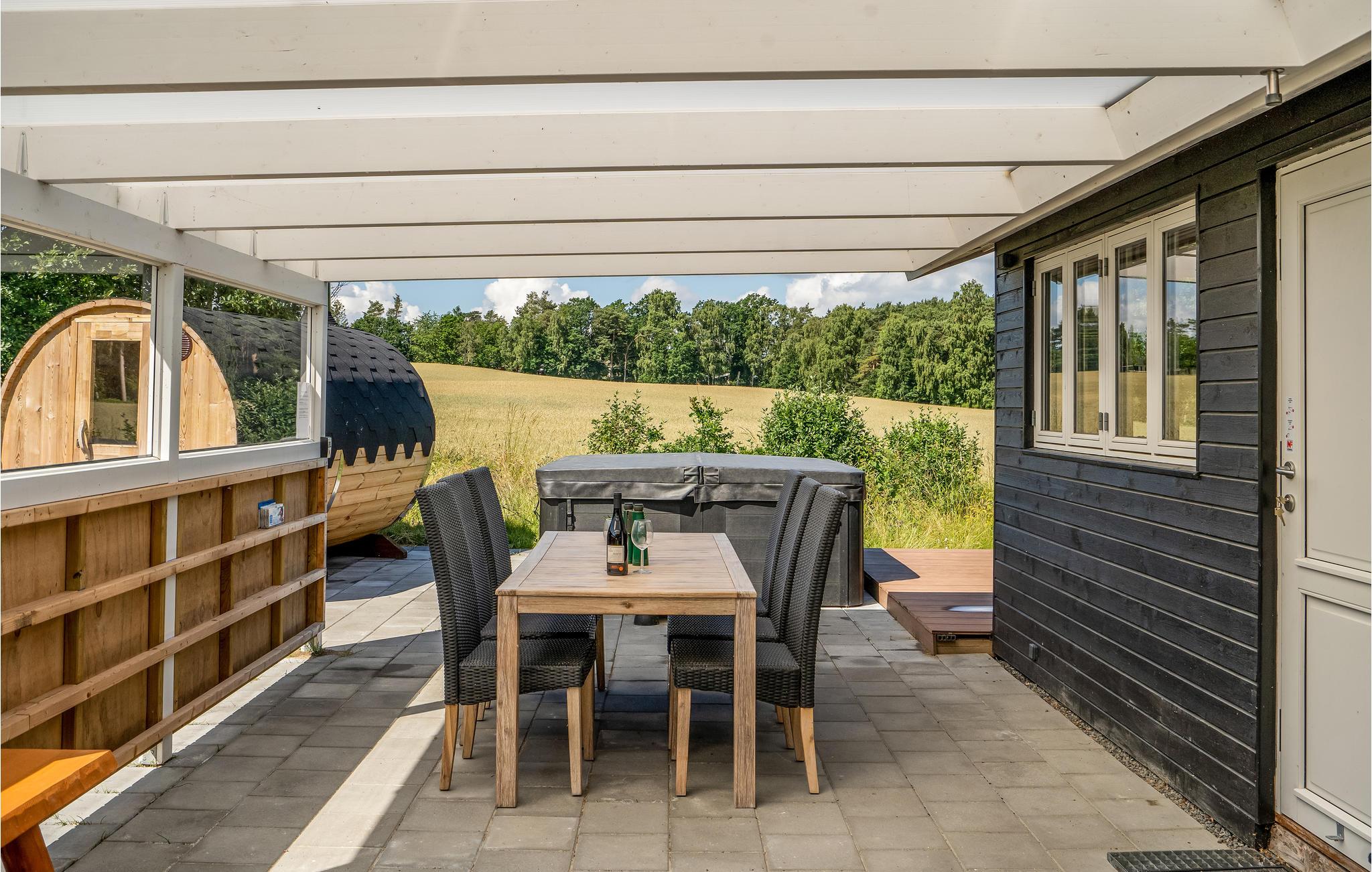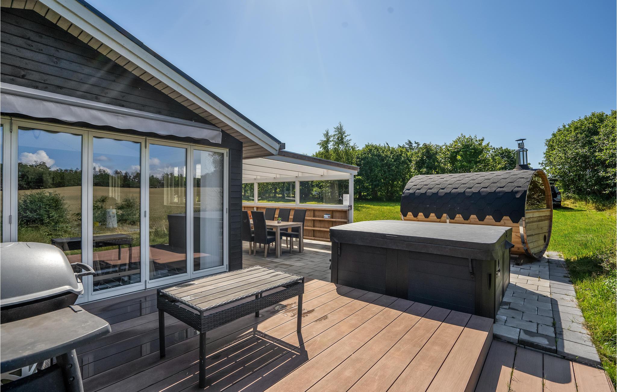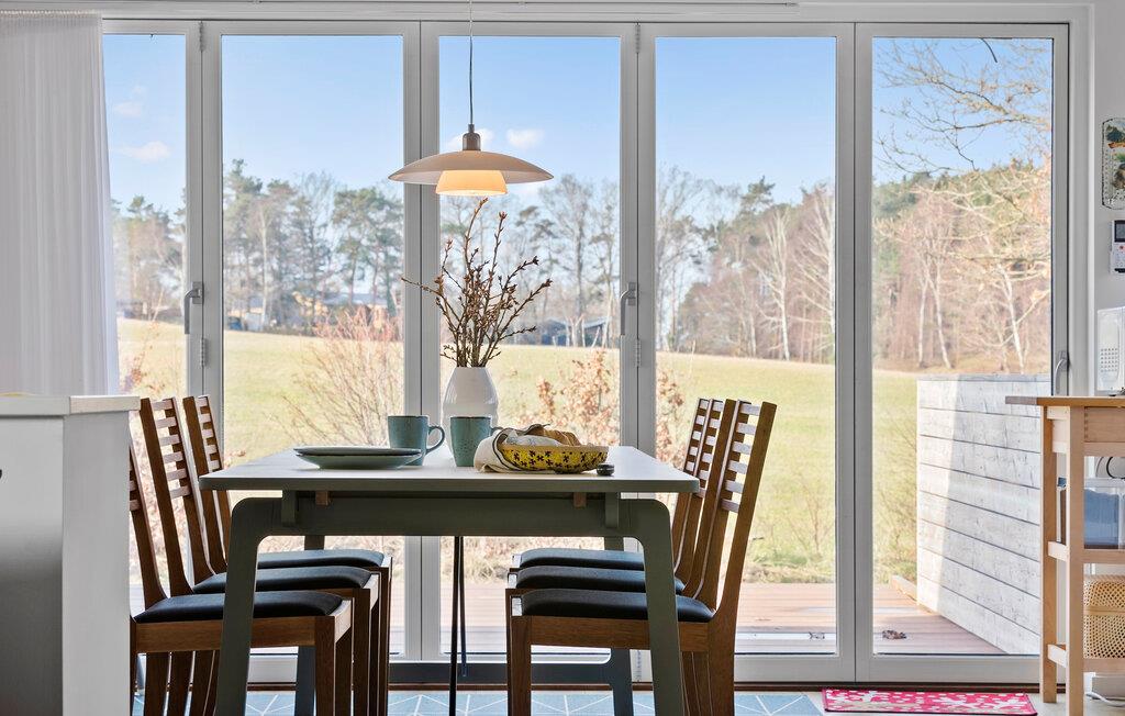 Ein gemütlicher Pfad führt zu einem wunderbaren Kiesstrand, an dem Sie den Sonnenuntergang genießen oder sogar, mit etwas Glück, einen Faustkeil aus der Steinzeit finden können. Das friedliche, private Grundstück bietet Aussicht über offene Felder und das Meer. Zum Haus gehört eine schöne Terrasse aus Holz mit Sonne von früh bis spät sowie ein großer Rasen, der zum Toben und Spielen einlädt. Das Haus mit den offenem Wohnraum ist von gutem Innenklima geprägt und lädt zu abendlicher Gemütlichkeit ein.