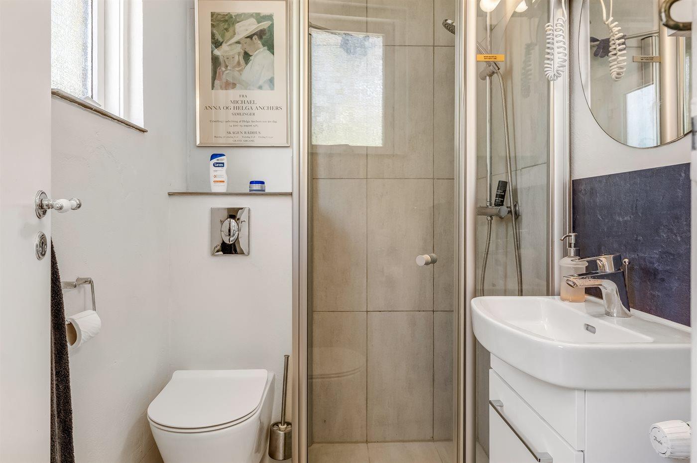 There is 1 bathroom with shower cabinet and 1 toilet.