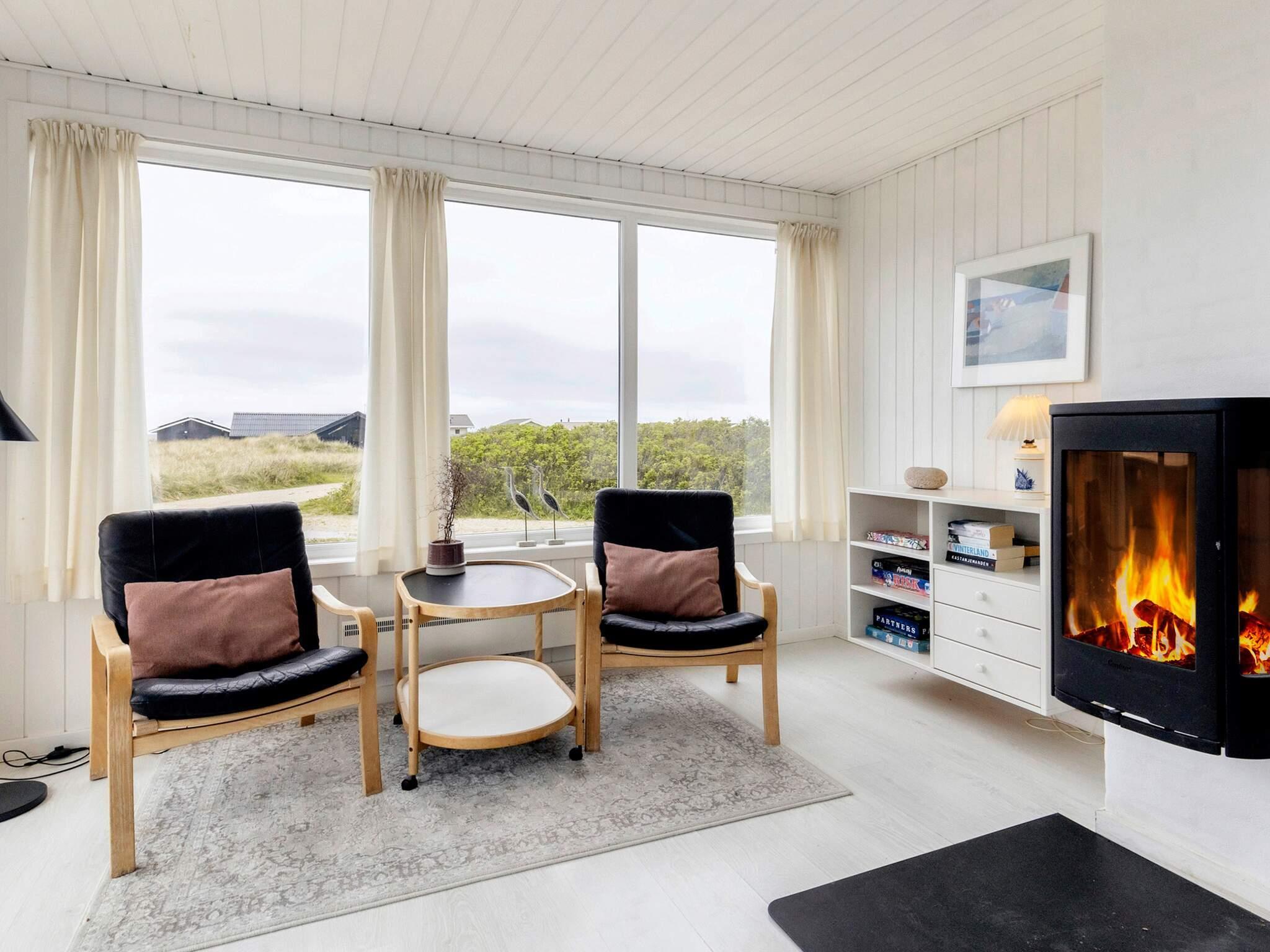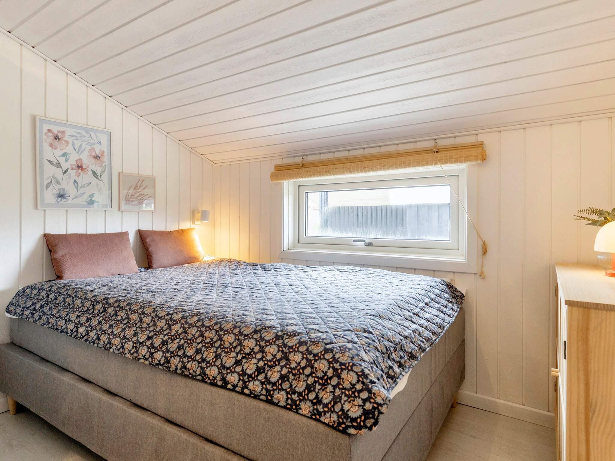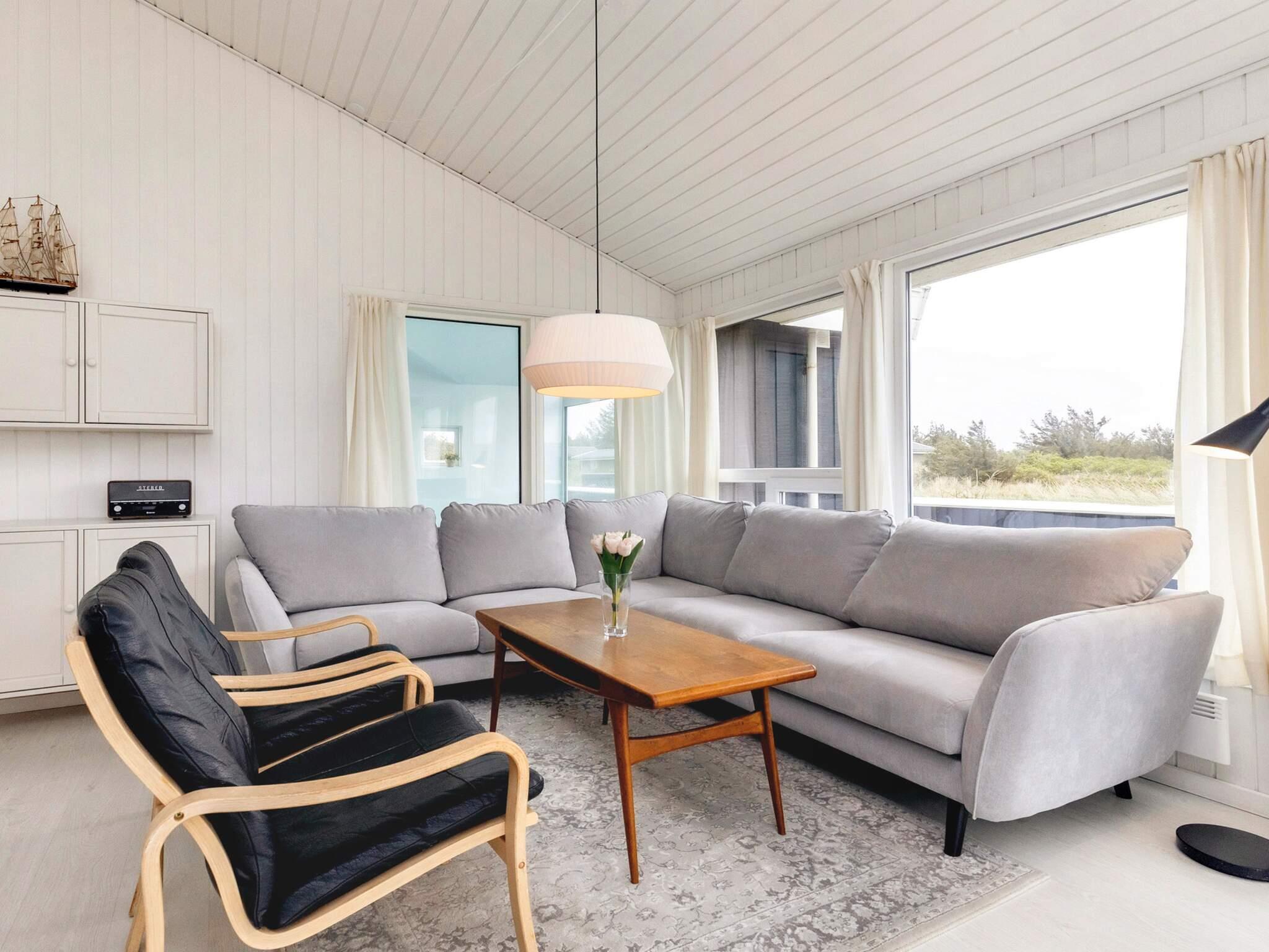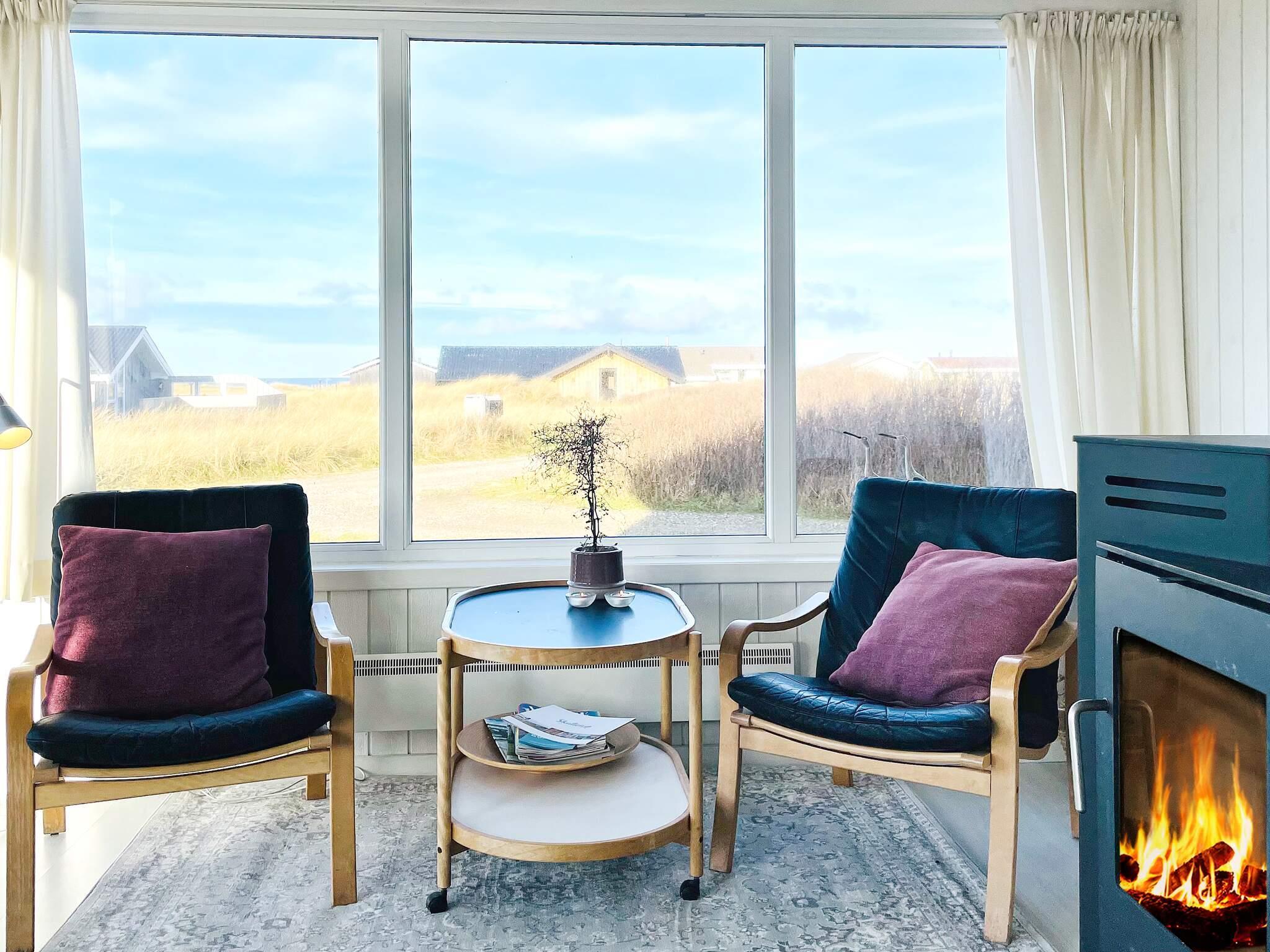 Im Ferienhaus schöne Wohnatmosphäre, hell und luftig, dazu tragen auch die hellen Farbtöne und großen Fenster mit Ausblick zur umliegenden Küstenlandschaft bei. Sogar der Hems des Hauses ist mit einem großen Fenster ausgestattet, ein schöner Aussichtspunkt, der nachts als Schlafgelegenheit für zwei Personen genutzt werden kann. Zudem stehen im Haus drei Schlafzimmer mit jeweils zwei Schlafplätzen in Betten zur Verfügung.